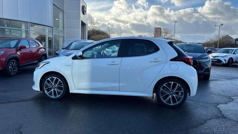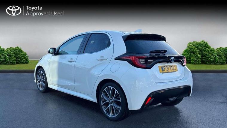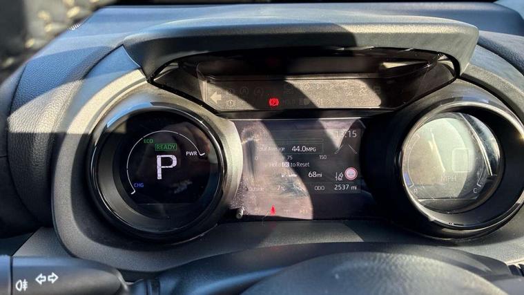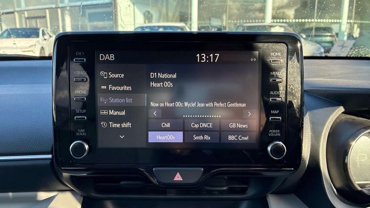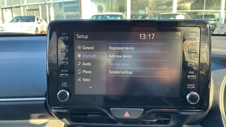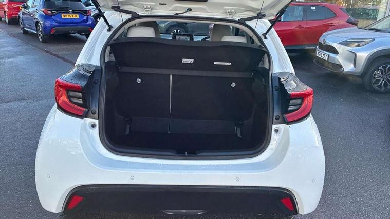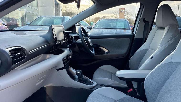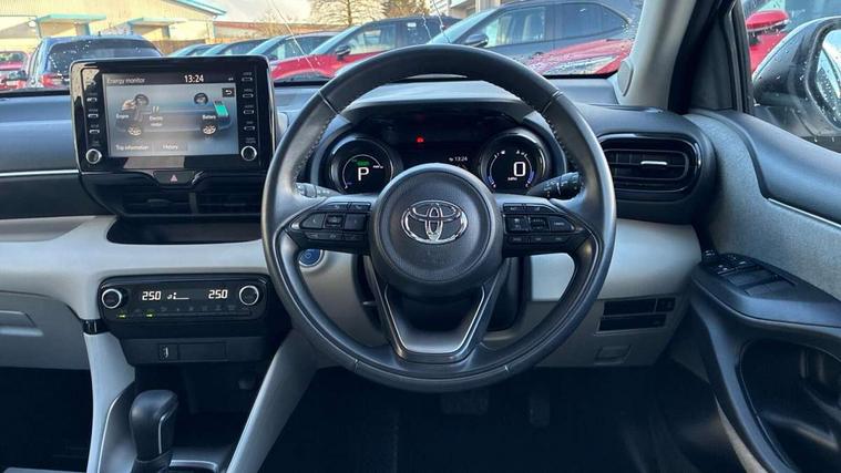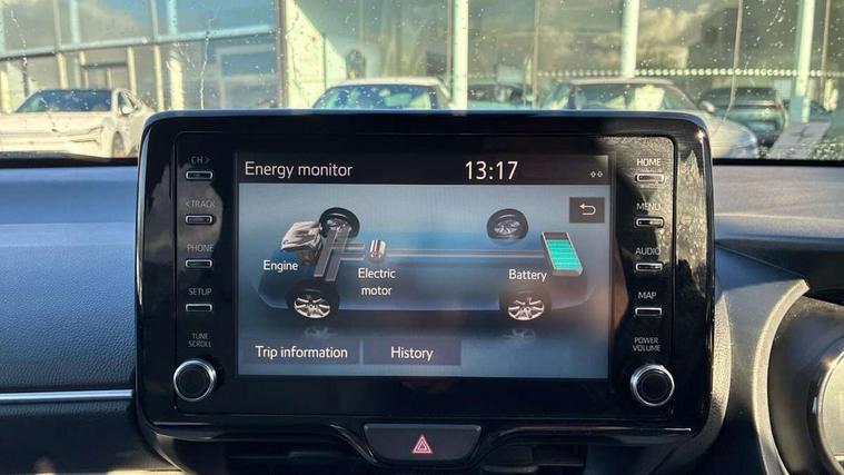 Adaptive cruise control, Adjustable speed limit with speed warning, Blind spot monitoring, Bluetooth connectivity, Colour binocular inspired displays with digital speedometer, E-call, Electric power steering, Front and rear parking sensors with intelligent clearance sonar and automatic braking, Hybrid energy display, Multi information display switches on steering wheel, Reversing camera, Smartphone integration with Apple CarPlay and Android auto, Vehicle Stability Control (VSC), 6 speakers, 8" Multimedia display touch screen, USB connection, Acoustic windscreen glass, Auto windscreen wipers, Automatic headlights, Automatically retractable door mirrors, Body coloured door mirrors, Electric adjustable heated door mirrors, Follow me home headlights, Front auto power windows with anti jam protection, Full LED rear lights, LED daytime running lights, LED front fog lights, LED Headlights, LED High mounted stop lamp, Painted front grille, Rear auto power windows with anti jam protection, Rear privacy glass, Rear spoiler, Satin lower front grille, Shark fin antenna, Turning signal integrated indicators in door mirrors, 3 adjustable rear headrests, 3 spoke leather steering wheel, 60/40 split folding rear seat, Active headrests, Adjustable boot height, Coat hooks in rear grab handles, Cup holders (2 front & door), Data Communication Module (DCM) connected services, Dual zone automatic air conditioning, Fabric seat with partial synthetic leather upholstery, Front armrest, Front sport seats, Glovebox, Height adjustable driver's seat, Height adjustable passenger seat, Isofix seat fixing, Leather gearshift, Map pockets on the backs of the front seats, Pollen filter, Shopping bag hooks, Tilt/telescopic steering column, 3 point seatbelts on all rear seats, ABS+EBD+Brake assist, Electronic parking brake, Emergency brake light system (EBS), Front passenger airbag on/off switch, Front seatbelt reminder, Hill start assist control (HAC), Rear child proof door locks, Rear seat belt reminder, Supplemental Restraint System (SRS) 8 airbags: Driver & passenger's airbags, dual side curtain airbags, side impact airbags, front centre airbag, Toyota Safety Sense 2, Precollison + Night time Pedestrian & Cyclist Detection, Lane Trace Assist, Auto High Beam, Intelligent ACC & Road Sign Assist, Tyre pressure warning system, Alarm/immobiliser, Keyless smart entry with push button start, Remote powered central double locking doors, Satin chrome interior styling, Soft touch instrument panel, Space saver spare wheel,
