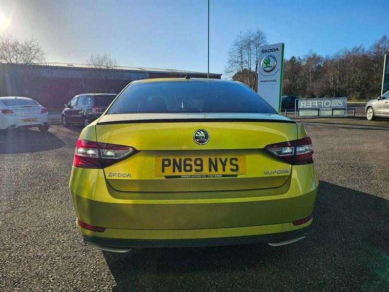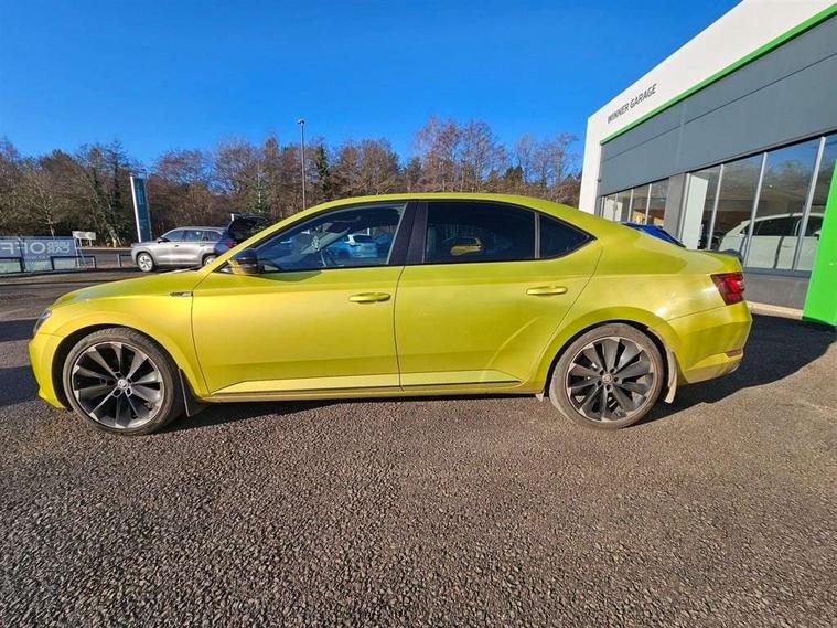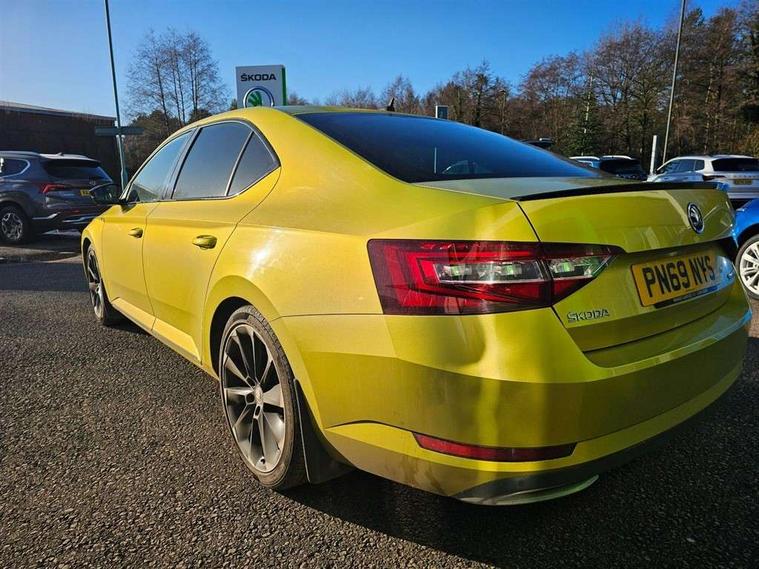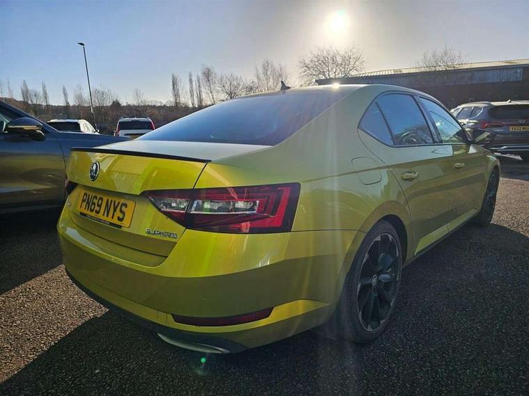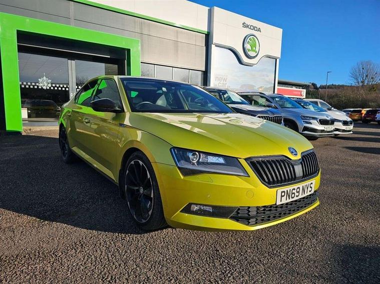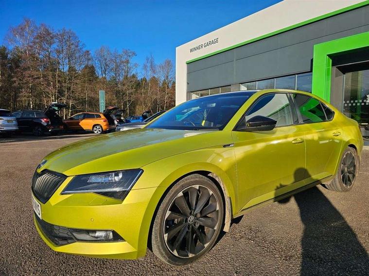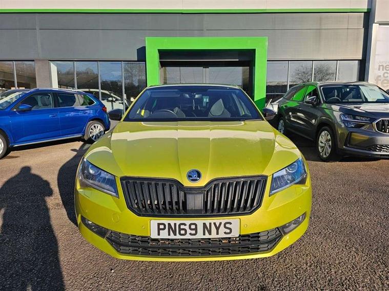 Adaptive cruise control, Bluetooth system, CareConnect and Emergency Call, Columbus colour 9.2" touch screen satellite 3D Map navi system with DAB, SmartLink+, CarPlay, Android Auto, USB, Aux in, SD Card, DVD drive and Wi-Fi, Drive mode selection including HMI sport, Driver fatigue sensor, Electrically operated boot door, Electromechanical power steering, External temperature gauge, Front assist including automatic braking function, Multifunction colour trip computer, Progressive dynamic steering, Remote fuel cap release, Service interval indicator, Speed warning indicator, Stop/start engine system and energy recovery, Voice control system, Wi-Fi with LTE internet, XDS+, In-car voice enhancement, Aero wiper + intermittent function, Auto dimming rear view mirror, Bi-Xenon headlights with AFS + integrated headlight washers + LED daytime running lights, Black gloss door mirror housings, Body colour bumpers, Body colour door handles, Cornering front fog lights, Electrically adjustable/heated/folding door mirrors with puddle lights/Integrated indicators and memory function, Front and rear electric windows, Fuel filler cap, Gloss black exterior door mirrors with sports styling including front grill, side strip and window surrounds, Gloss black spoiler, LED brake lights, Privacy glass, Rain sensor, Rear exhaust diffuser styling elements, Sportline badging, 12v power point in centre console, 12V power point in luggage area, 3 rear height adjustable headrests, Alcantara/leather upholstery sports seats, Auxiliary heater, Black door trim, Black roof headlining, Electrically adjustable driver's seat with memory and lumbar support, Front armrest with storage box, Front passenger seat electric height adjust, Height adjustable front and rear head restraints, Height/reach adjust steering wheel, Illuminated air conditioned glovebox, Illuminated luggage compartment, Interior lights with control switches, Isofix child seat fittings on outer rear seats, Leather gearknob and handbrake lever, Overhead glasses storage compartment, Rear centre armrest with cupholders, Removable LED light in boot, Removable rear parcel shelf, Split folding rear seats, Textile floor mat set, Ticket holder, Umbrella compartments in front doors with umbrellas, LED interior light pack - Superb, LED package plus - Superb, LED rear pack - superb, 3 point height adj front seatbelts + pretensioners, 3 rear 3 point seatbelts + pretensioners, 7 airbags - Front, front side, curtain, driver's knee airbag with front passenger deactivation switch, Door open warning, Driver and passenger seatbelts with warning light, Electronic parking brake, ESC including ABS, EBV, MSR, ASR, EDS, HBA, DSR, RBS, CBC, multi-collision brake (MKB) and Auto hold, Hill start assist, Rear door child safety locks, Tyre pressure monitor, Alarm with interior monitoring tilt sensor and back up horn, Electronic engine immobiliser, Keyless entry and start/stop, Remote central locking with SAFE system, Carbon interior trim,