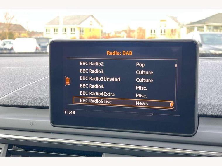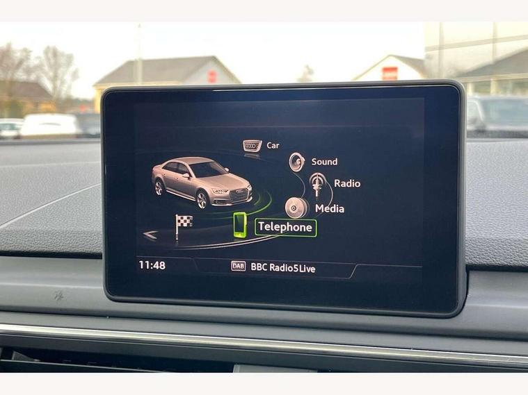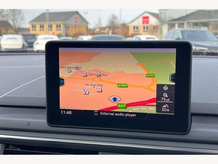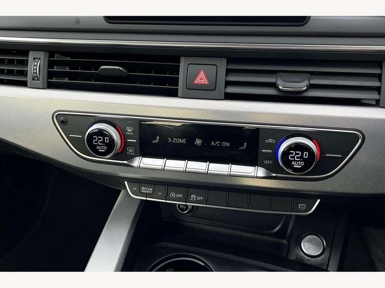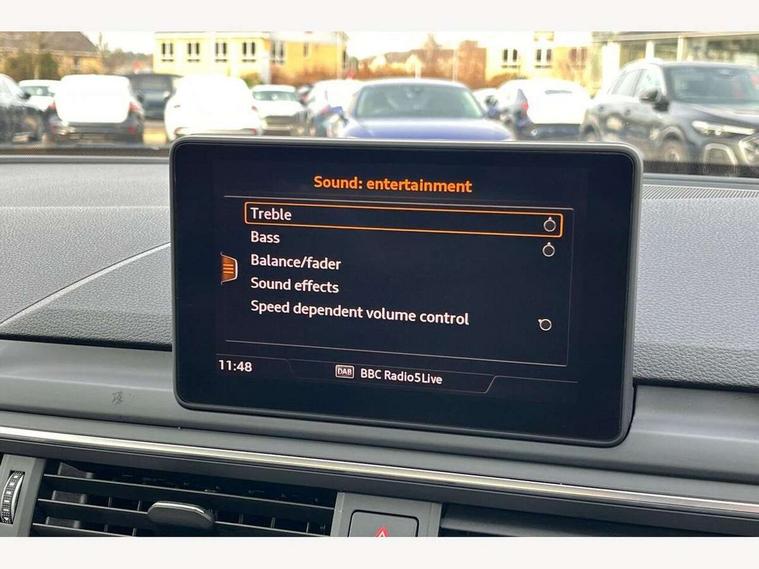 Audi drive select, Audi Pre sense collision avoidance, Auto boot lid opening, Electro-mechanical PAS, Service interval indicator, Stop/start button, Voice control system, 2 USB ports, Aux input, DAB digital radio module, MMI radio plus with CD player, Acoustic windscreen, Auto dimming rear view mirror, Automatic headlights + automatic windscreen wipers, Body colour bumpers, Body colour door mirrors, Chrome rolled exhaust, Electric adjustable heated door mirrors, Electric front windows, Electric rear windows, Headlight range control, LED daytime running lights, Rear diffuser in Twilight grey matt, Twilight grey matt radiator grille with chrome inlay, 3 zone climate control, Aluminium door sill trims, Front centre armrest with 12v socket, Front/rear floor mats, Isofix child seat preparation for front passenger/outer rear seats inc passenger airbag deactivation, Jack and tool kit, Reach + rake adjustable steering column, Rear headrests, Split folding rear seats, Top tether anchor plate for isofix child seat, Exterior aluminium pack - A4, 3 point seatbelts on all rear seats, ABS/EBD, Adaptive driver and front passenger airbags, Electromechanical parking brake, ESP, First aid kit, Front head airbags, Front seatbelt pretensioners + load limiters, Front side airbags, Seatbelt warning, Traction control, Tyre pressure monitoring system, Warning triangle, Locking wheel bolts, Remote central locking, Thatcham category 1 alarm + immobiliser, Space saver spare wheel,