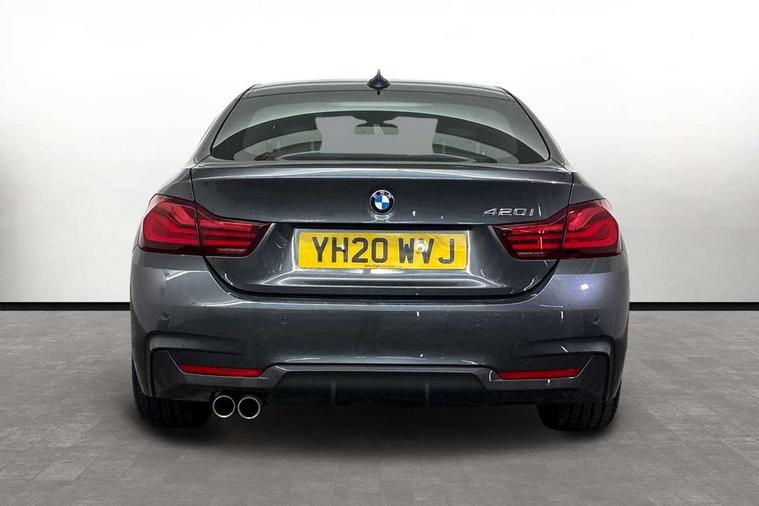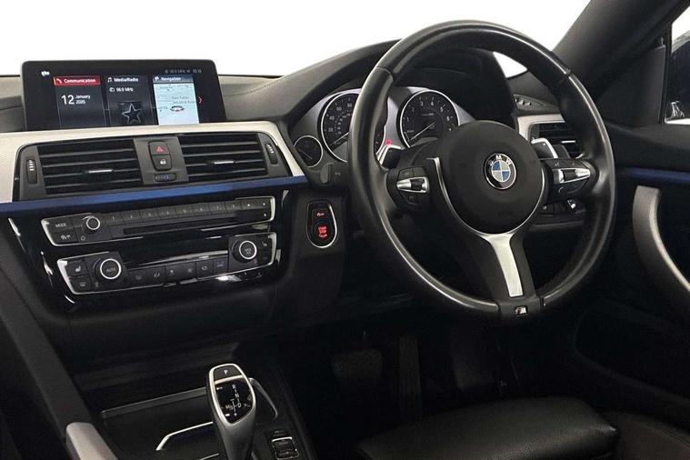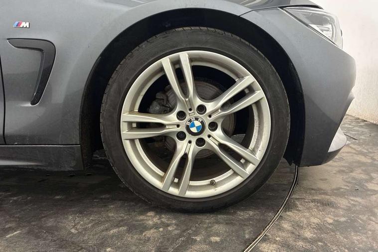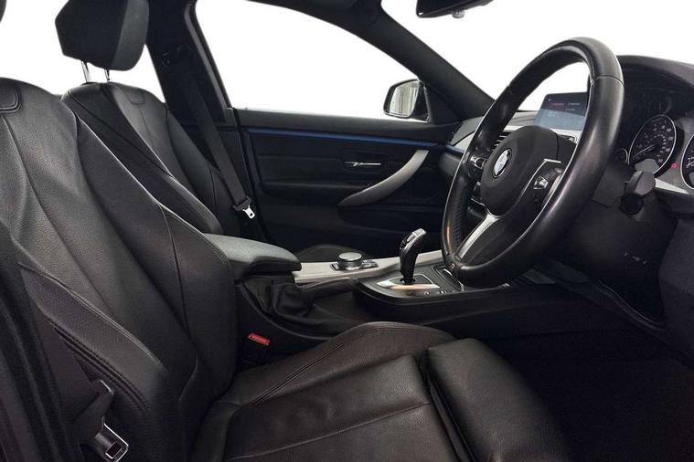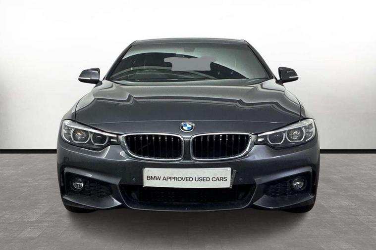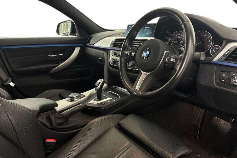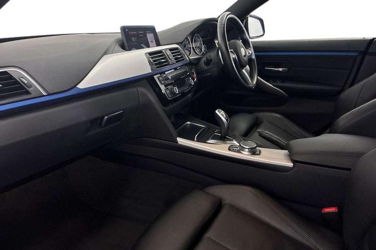 Extended lighting package - 4 Series Gran coupe, Non Smokers pack, Reduced rolling resistance tyres, Run flat tyres, Alarm system (Thatcham 1) with electronic engine immobiliser, Central locking switch for all doors, fuel filler cap and luggage compartment, Remote control integrated key with blue inset, Start/stop button with Comfort Go keyless engine start and auto Start/stop deactivation button, DAB tuner, 3 point seatbelts on all seats, Airbag - Front driver and passenger, front and rear head, front side, curtain head protection, manual deactivation of front passenger airbag possible, Anti lock braking system (ABS) with brake assist, Automatic Stability Control (ASC), Battery safety cut-off, Brake drying, Brake energy regeneration, Brake pretensioning, CBC - (Cornering brake control), Crash sensor activating central locking release, hazard warning lights, Dynamic brake control, Dynamic stability control + (DSC+), Dynamic Traction Control - DTC, Front and rear ventilated brake disc, Front seatbelt force limiters, Hill start assistant, Pyrotechnically pre-tensioned front seatbelts, Seat belt security check for driver, Side impact protection, Twin horns, Tyre pressure monitoring with three level warning strategy, Variable torque distribution, Warning triangle and first aid kit, Auto dimming rear view mirror, Body colour door handles, Body colour front bumper, Body colour mirror caps, Body colour rear bumper, Body colour roof mouldings, Chrome kidney grille with extra wide black, high gloss black vertical slats, Direction indicator, side repeaters, integrated in exterior mirrors, Door sill finishers with M designation, Dual exhaust tailpipes in left with chrome finisher, Dynamic brake lights, Electric front windows with fingertip open/close + anti-trap facility, Follow me home headlights, Front air inlet with high gloss black finish, Front and rear bumper system, Green tinted heat protection glazing, Heated windscreen washer jets, Heated, electrically adjustable exterior mirror aspheric on driver side, convex on passenger side, High gloss black air breather, High gloss black rear bumper insert, High gloss shadow line exterior trim, High level third brake light, LED daytime running lights, LED direction indicator lenses, LED eyebrow light, LED front fog lights, LED tail lights with 3D L-shaped LED light design, Lightweight engineering, M aerodynamic bodystyling, Model designation, Rain sensor including auto headlights activation, Shark fin antenna, Two speed adjustable intervals windscreen wipers, Visible VIN plate, Welcome lighting, Windscreen with grey shadeband, 12V sockets in front centre console and passenger footwell, 2 Rear seat headrests, 3 spoke leather M sport multifunction sports steering wheel, 4 grab handles, Air conditioning and radio control panel in high gloss black, Ambient lighting - switchable BMW classic orange/ cold white LED, Anthracite headlining, Automatic air conditioning with two zone control, Bottle holders integrated into front door trim storage compartments, Chrome centre console panel highlight, Driver and front passenger seat heating, Front and rear side armrests integrated into door trim, Front folding sliding armrest with storage compartment, Front head restraints, Front sports seats, Full black panel display, Glove compartment, Interior lighting, front centre over interior mirror and rear centre automatic interior light activation when door is opened, Leather gearknob and handbrake lever, Load lashing eyes in luggage compartment, Reach + rake manual adjustable steering column, Rear child seat isofix attachment with passenger airbag deactivation, Rear coded belt buckles, Storage compartment in rear centre console, Sunvisors with vanity mirrors and ticket pocket, Toolkit located in luggage compartment, Two front cup holders with a sliding lid, Velour floor mats, Auto start-stop, Automatic tailgate operation, BMW emergency call, BMW Online services, BMW remote services, BMW Teleservices, Brake pad wear indicator in front and rear, Check Control warning system for monitoring of lights and door/luggage compartment open warning, Condition based service, Control display - 6.5" colour display screen, Front/rear park distance control (PDC), iDrive Controller with 8 favourite buttons, Instrument cluster with speedometer with mph readout, tachometer, fuel gauge and oil temperature gauge, Lights on warning by audio warning signal when ignition is switched off, M Sport instrument cluster, Oil sensor for level and grade, warning by check control system, On board computer - average speed, fuel consumption, outside temp display with acoustic warning, clock/date, service interval, odometer/trip meter, Optimum shift indicator, Personal Profile - automatic lock when driving away selectable, Professional multimedia navigation system, Run flat indicator, Aluminium front suspension, Drive performance control with ECO PRO comfort + sport mode, Electronic differential lock, Five link rear suspension, Sport automatic transmission with steering-wheel mounted gearshift paddles and launch control, VALVETRONIC engine management,