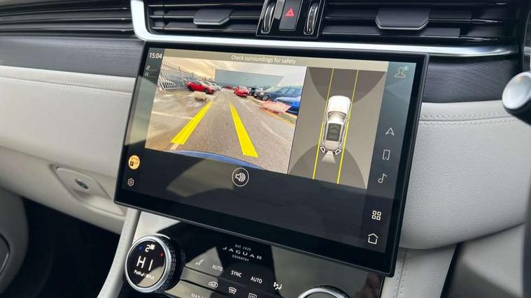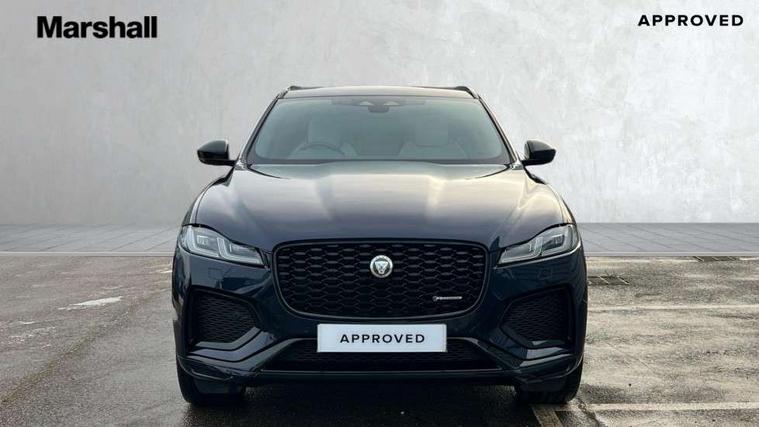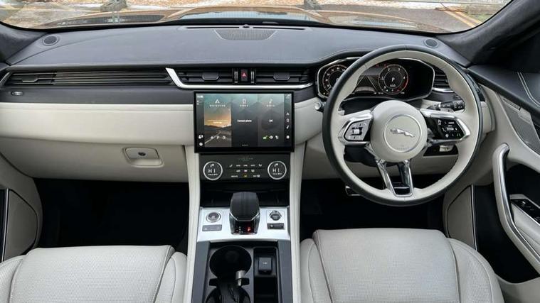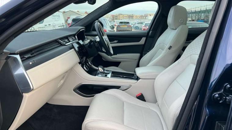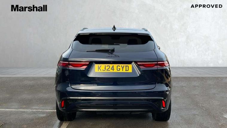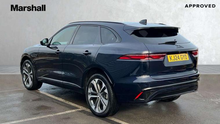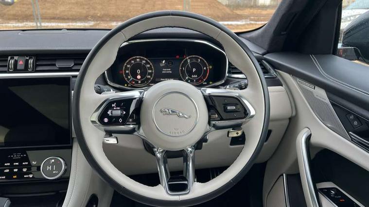 11.4" touchscreen, Adaptive cruise control with steering assist, Android Auto, Apple car play, Blind spot assist, Bluetooth connectivity, Clear exit monitor, Driver alert system, Driver condition monitor, eCall emergency call system, Eco driving style assistant, Electric power assisted steering, InControl remote, Interactive driver display digital with 12" TFT display, Jaguar Toggle shift selector, Lane departure warning system, Lane keep assist, Outside temperature gauge, Personalisation profile management, Pivi pro connected navigation system with app interface and media storage, Pro services and wifi hotspot, Push button starter, Rear collision monitor, Rear traffic monitor, Service interval indicator, Speed proportional steering, Start up sequence with movement in dials and lighting, Traffic sign recognition with adaptive speed limiter, Trip computer, Voice control system, Wireless device charging, 8 speed automatic transmission, Adaptive dynamics, All terrain progress control, All Wheel Drive (AWD), Configurable dynamics, Open differential with torque vectoring by braking, AM/FM radio, Bluetooth streaming, DAB Radio (Digital Audio Broadcasting), Dynamic volume control, InControl apps, InControl protect, iPod integration, 3 flash lane change indicators, AHBA and animated directional indicators, Approach Illumination, Auto dimming rear view mirror, Automatic headlights, Electric heated/power fold memory door mirrors with approach lights and auto dimming driver side, Electric windows with one touch open/close and anti trap, F-Pace and R Dynamic badge, Green tinted glass, Heated front windscreen + heated washer jets, Heated rear window with timer, Illuminated metal tread plates with Jaguar script, Jaguar script and leaper, LED High level third brake light, LED tail lights, Metal load space scuff plates, Non acoustic front windscreen, Privacy glass (rear side windows and rear screen), R Dynamic badge on side door, Rain sensor windscreen wipers, Rear fog lights, Rear metal tread plates, Rear side wing doors, Rear wiper, Trailer stability assist, Variable front intermittent wipers, 12V power point front, 3 rear headrests, 3 seat bench in 2nd row, Additional power sockets - Two additional USB sockets in rear centre console and one 12V socket in trunk, Air distribution speed, Bright metal foot pedals, Centre armrest console, Centre console with side storage, Configurable cabin lighting, Deletion loadspace storage rails, Door sill tread plates, Ebony suede cloth headlining, Electrically adjustable steering column, Fold flat front seats, Front centre armrest with storage compartment, Front door storage space, Glovebox finisher with jaguar script, Heated steering wheel, Hooks in loadspace, Illuminated glovebox, Interior front door handles with separate locking switches, ISOFIX on outer rear seats, Jaguar sense, Leather steering wheel, Luggage tie downs in loadspace, Mist sensing, Multifunction steering wheel, Overhead lighting console, Overhead stowage for sunglasses, Passive front head restraints, Premium carpet mats, Rear air vents, Rear armrest with twin cupholders, Rear centre headrest, Rear door storage space, Reversible boot floor, Satin chrome gearshift paddles, Shopping bag hook, Single front passenger seat, Sunvisors with illuminated vanity mirrors, Twin front cupholders with cover, Online Pack with data plan - F-Pace, 355mm front brakes and 325mm rear brakes, 3x3 point rear seatbelts, ABS, All surface progress control (ASPC), Brake pad warning light, DSC - Dynamic Stability Control, Electric parking brake (EPB), Emergency brake assist, Front airbags with passenger seat occupant detector, Front and rear seatbelt reminder, Front side airbags, Full length side window curtain airbag, Hill launch assist, Power operated child locks, Traction control, Tyre pressure monitoring system, Immobiliser, Keyless entry, Keyless Start, Locking wheel nuts, Perimeter alarm, Remote central locking, Valet mode,