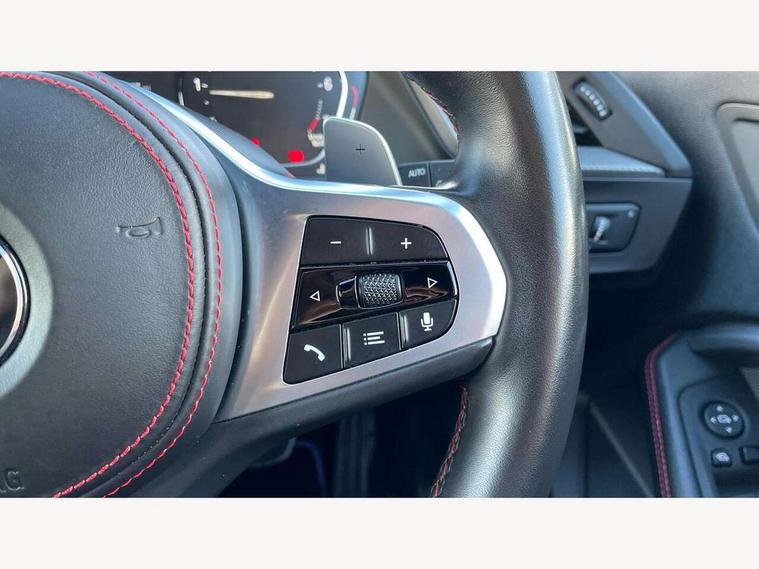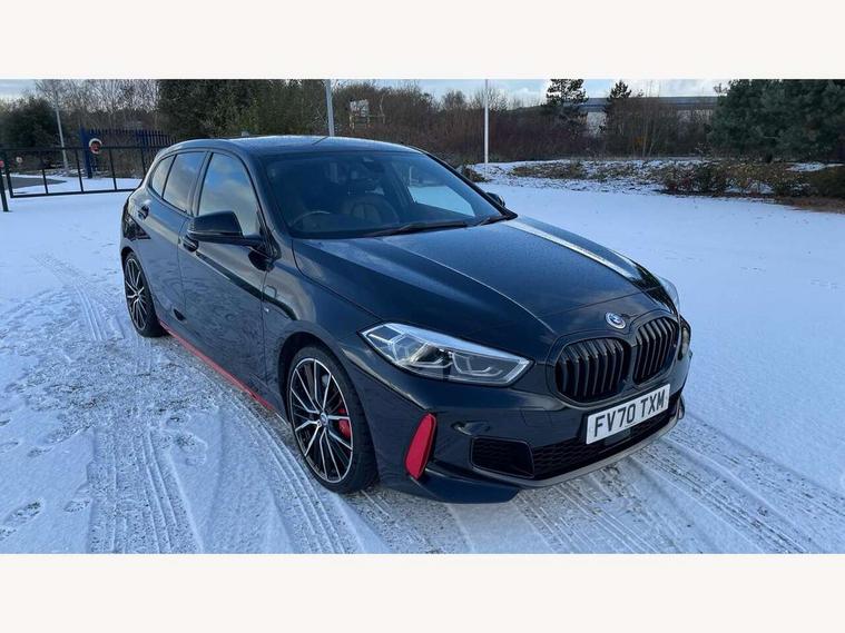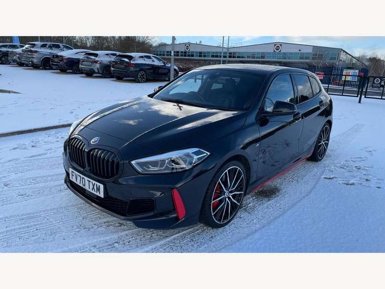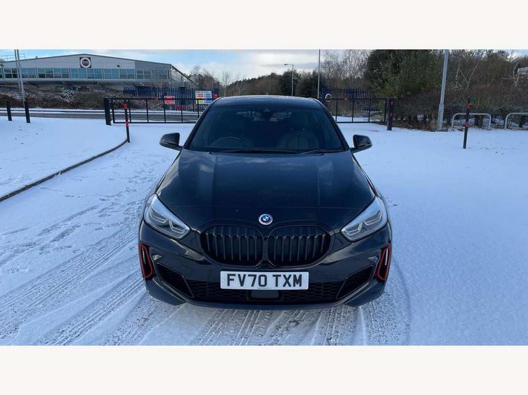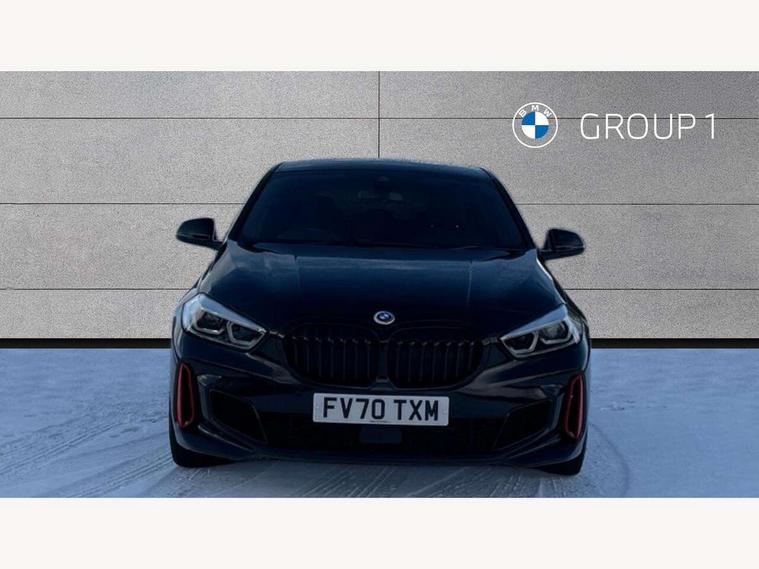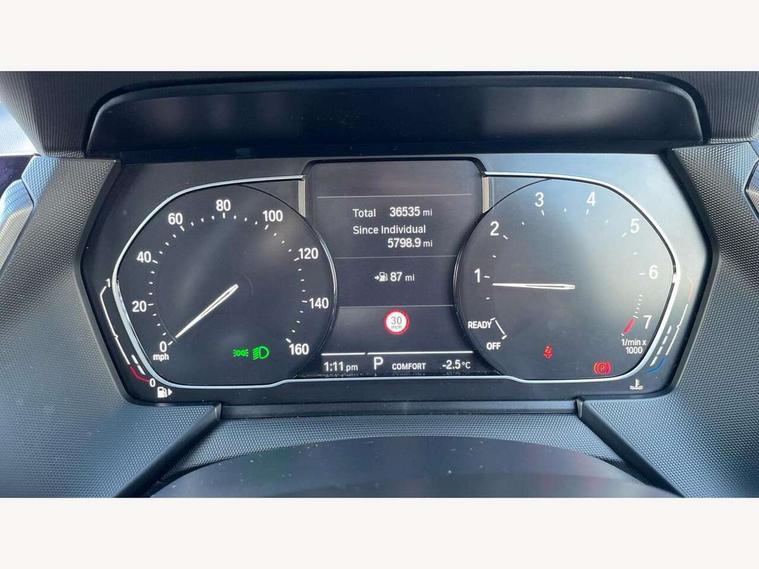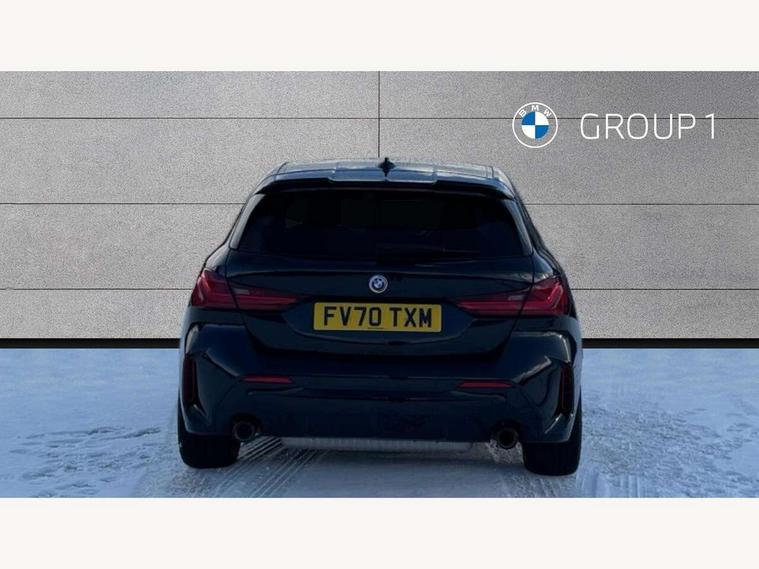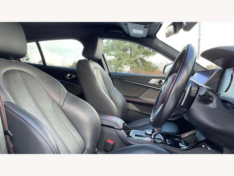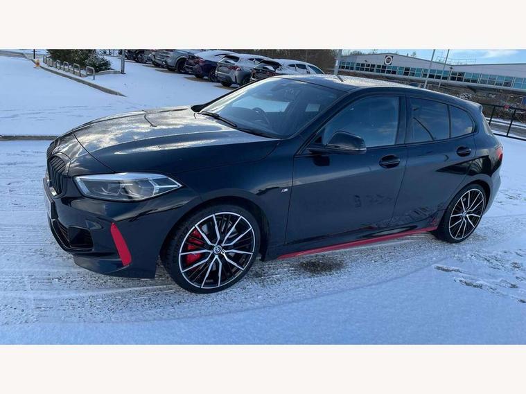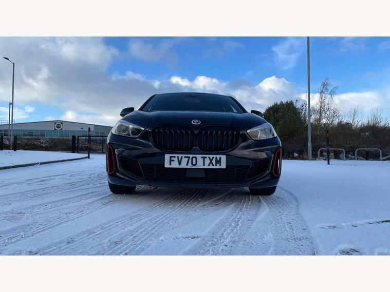 Active guard plus, Attentiveness assist, BMW Online services, BMW Teleservices, Check Control warning system for monitoring of lights and door/luggage compartment open warning, Connected eDrive Services, Eco pro mode, Electric power steering with Servotronic steering optimised at all speed ranges, Integrated owners handbook, Oil sensor for level and grade, On board computer, Optimum shift indicator, Personal Profile, Pull away assistant, Speed limiter, Aluminium lightweight construction, Anti roll bar front and rear, Balancer shaft, Double VANOS, Drive Performance Control, Eight speed sport automatic transmission with electronic selector lever, Electronic differential lock, High precision injection, M sports suspension + self levelling, Petrol Particulate Filter, VALVETRONIC engine management, Bluetooth audio streaming, DAB Digital radio, Air inlets in front left and right with highlight clasp in red, Auto dimming rear view mirror, Automatic headlight beam throw control, Black chrome tailpipe finishers, BMW individual lights shadow line, Body colour door handles, Body colour mirror caps, Chrome 'M' logo side designation, Chrome kidney grille frame with Satin Aluminium struts, Direction indicator side lights in exterior mirrors, Electric folding and anti dazzle exterior mirrors, Fading support, Follow me home headlights, Front and rear electric windows with open and close fingertip control, anti trap facility and comfort closing, Front door sill finishers in black plastic with BMW designation, Green tinted heat protection glazing, Heated, electrically adjustable exterior mirror aspheric on driver side, convex on passenger side, High gloss shadowline window frame, Recess cover mirror frames and B/C pillar embelisher trim, High level third brake light, LED daytime running lights, LED eyebrow turn indicators, Lightweight engineering, Matt black air guide grilles, Model designation on right side of tailgate, Nearside reverse light in rear light cluster, Preparation for high beam assistant, Rain sensor including auto headlights activation, Rear fog lights, Rear window wiper, Shark fin antenna, Visible VIN plate, Welcome lighting, Windscreen wipers with integrated washing jets, 12V power socket in centre console, 3 rear seat head restraints, Anthracite headlining, Centre armrest in black/red highlight including embroidered 'ti' designation in red, Child seat ISOFIX attachment for two outer rear seats and front passenger seat with anchorage points, Conditioned based service, Driver and front passenger seat heating, Floor mats with red binding, Folding rear clothes hook, Folding rear seats, Four grab handles integrated in roof lining, Front and rear door pockets, Front and rear side armrest integrated into door trim, Front armrest foldable with integrated storage compartment, Front sports seats with electric side bolster adjustment, Glove compartment, Height adjustable front head restraints, Instrument panel top section , door armrests and door panels in black/red highlight, Manual adjust steering wheel, Multi-function controls for steering wheel, Rear seat backrest with manual 60:40 split folding with 3 top tether clips integrated on rear of seat panels, Storage compartment in centre console, Sun visors with vanity mirrors and insert tab, Three spoke M sport design multi function leather steering wheel in unique red stitching, Two zone automatic air conditioning, Connected pack professional - 1 Series, Extended Lighting pack - 1 Series, Extended storage pack - 1 Series, Interior lights pack - 1 Series, Luggage compartment pack - 1 Series, M Sport exterior styling aerodynamics pack - 1 Series, 2 tone horn, 3 point seatbelts on all seats, front pyrotechnic belt tensioners, stopper and belt force limiters, rear coded belt buckles, Airbags - Front driver and passenger, front and rear head, front side, curtain head protection, Anti lock braking system (ABS) with brake assist, BMW emergency call, Brake drying, Braking readiness, Crash sensor activating central locking release, hazard warning lights, fuel cut off, interior lighting + activation of safety battery terminal clamp, Driver and front passenger seat belt security check, Dynamic stability control + (DSC+), Dynamic Traction Control - DTC, Electrically operated hand brake, Front and rear disc brakes, Front passenger manual airbag deactivation, M Sport braking system with red calipers, M sport seatbelt, Rear child proof door locks, Seatbelt warning, Side impact protection, Tyre pressure monitoring system, Warning triangle and first aid kit, Automatic drive away locking facility, Central locking switch for all doors, fuel filler cap and luggage compartment, Deadlocking function system to all doors, Locking wheel bolts, Remote control with integrated key with High-gloss Black inlay and M designation and 1 button for open/ close lock, window, open luggage compartment, Start/stop button with comfort go keyless engine start and auto start stop deactivation button, Thatcham Cat.1 alarm and immobiliser, Reduced rolling resistance tyres,