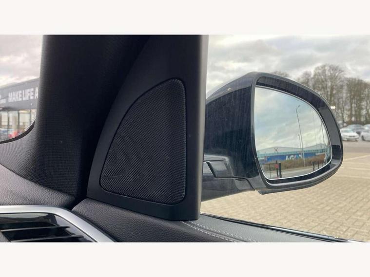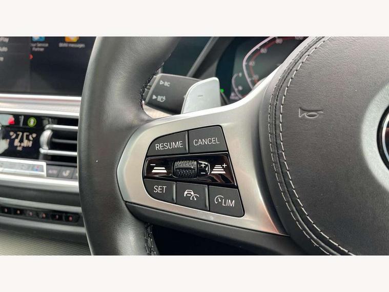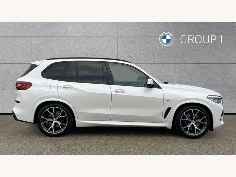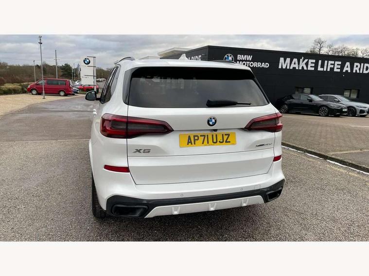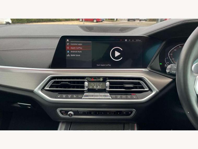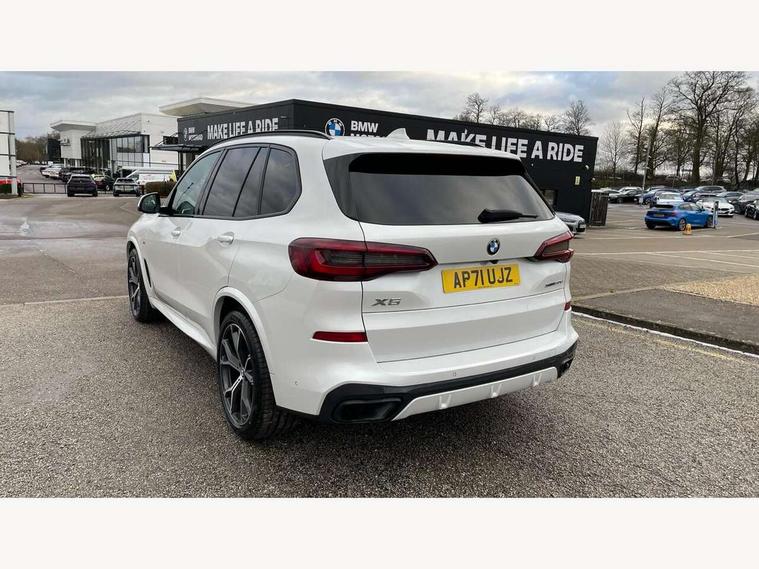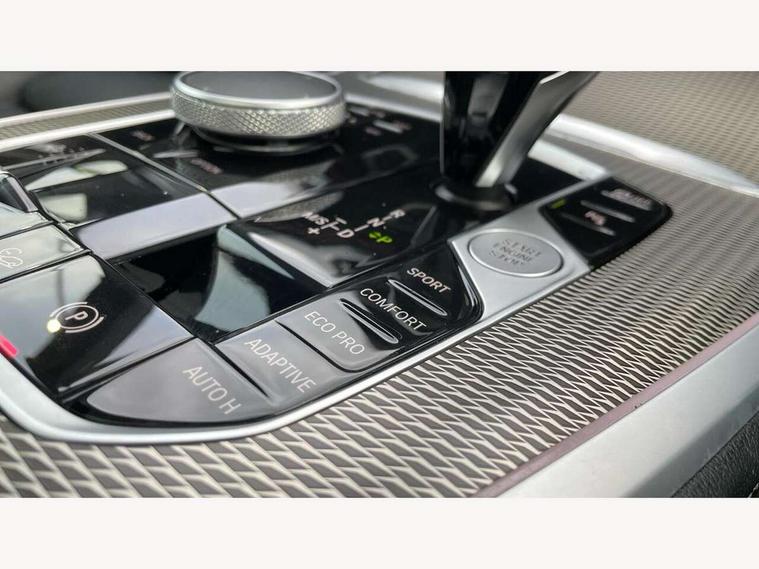 20GB hard disc drive (HDD) memory, Active guard plus, Attentiveness assist, Automatic tailgate with top hinged section open and manual bottom hinged section, BMW ConnectedDrive online services, BMW digital live cockpit professional - 12.3" digital instrument panel and 12.3" CID, with touch/voice command, BMW legal emergency call, BMW Teleservices, Brake force display, Brake pad wear indicator warning light, Cruise control with brake assist, Enhanced bluetooth with wireless charging, Front/rear park distance control, iDrive touch controller with shortcut buttons, Lights on warning, Oil sensor for level and grade, On board computer inc. average speed, fuel consumption, liquid crystal Info display, journey computer, outside temperature display, personal profile, Service interval indicator, Speed limit info display, Speed limiting function, Wi-Fi hotspot, 48V Mild hybrid technology, Adaptive 2-axle air suspension, Common rail technology, Diesel particulate filter, Double wishbone front axle, Drive performance control with ECO PRO comfort + sport mode, Eight speed steptronic sport automatic transmission and gearshift paddles on the steering wheel, Safety battery terminal clamp, Variable vane geometry, DAB Tuner enables digital radio reception, Favourite buttons, Hi-Fi loudspeaker system, USB connection, USB type A 1.5A in cupholder, USB Type C 3A in centre armrest, Active Air Stream kidney grille with high-gloss chrome, Adaptive air flap control bar in high-gloss black, Automatically dimming rear view mirror, BMW Individual high gloss black shadow line roof rails, Body colour bumpers, Body colour door handles, Dynamic brake lights with LED technology, Exhaust tailpipes - single, left and right with Chrome finisher, Follow me home headlight function, Front and rear electric windows with open and close fingertip control, anti trap facility and comfort closing, Heated windscreen washer jets, High beam assistant, High gloss black outer and central air intakes on front bumper with pearlescent chrome finish, High gloss black Side elements, LED daytime running lights, LED rear lights, M aerodynamic body styling, M designation on left and right front side panels, Pearlescent chrome front grille bars, Rain sensor with automatic headlight activation and windscreen wiper control, Rear side wing doors, Satin aluminium side window graphic, Third brake light in rear spoiler, Variable intermittent rear wash/wipe, Welcome light carpet, X5 on left tailgate, xDrive designation on right tailgate, 12V - Power sockets with 2x centre console and 1x luggage compartment, 3 seat bench in 2nd row, 40:20:40 split folding rear seats, Ambient interior lighting with 6 pre-designed selectable lights including dynamic function, Centre and rear interior light, Child seat ISOFIX attachment with rear outer seats includes top tether, Compartment in front of cupholder, Electric front seat adjustment with driver and front passenger memory function, Electrical steering column with adjustable height and length with activation and control on the steering column, Foldable rear centre armrest with 2 cupholders and storage compartment, Front and rear cupholders x 2, Front and rear door pockets, Front and rear door sill inlays with illuminated BMW M designation, Front and rear side armrest integrated into door trim, Front footwell lights, Front reading lights, Light inside glove compartment, Lockable glove compartment, Luggage compartment floor panel with integral storage tray, Luggage compartment lighting, M leather steering wheel, M specific key, M specific steering wheel, M specific velour floor mats, Make-up mirror lights, Multifunction controls for leather steering wheel, Multifunctional hooks, Rear head restraints, Seat back with flap pocket, Securing rings in luggage compartment, Single front passenger seat, Storage bins on all doors, Storage tray and compartment with cover in centre console, Sunvisors with illuminated vanity mirrors, Toolkit located in luggage compartment, Connected Package Professional - X5, Expanded exterior mirror pack - X5/X5 M, Non-smokers pack - X5, Airbags - driver/front passenger, rear and side, first and second row seats head airbags, front passenger seat airbag deactivation + knee airbag, Anti-lock braking system (ABS), Automatic Stability Control (ASC), Brake drying, Brake energy regeneration, Brake fade compensation, Braking pre-tensioning, Cornering brake control (CBC), Crash sensor activating central locking release, hazard warning lights, fuel cut off, interior lighting + activation of safety battery terminal clamp, Deformation zones - front and rear with door reinforcements and bumpers up to 2.5 mph, DSC - Dynamic Stability Control, Dynamic brake control, Dynamic Traction Control - DTC, Electromechanical parking brake with automatic drive away release and auto hold function, Electronic brake force distribution, Front and rear seatbelts with seatbelt stopper, seatbelt tensioner for front and outer rear seats and belt force limiter, Front head restraints with anti-whiplash, Height adjustable front seatbelts, Hill start assistant, Integrated brake system, M Sport braking system in blue high gloss + blue painted brake calipers with M designation, Mechanical child proof lock on rear doors, Passive protection for pedestrians, Seat occupancy detection for driver and passenger side, Side impact protection, Three 3 point inertia reel seatbelts, Two tone horn, Tyre pressure monitoring system, Ventilated front and rear disc brakes, Warning triangle and first aid kit, Closing system with central locking, Driver and front passenger door centre lock switch, Locking wheel bolts, Thatcham 1 alarm system with remote control and engine immobiliser, Start/stop toggle diamond shaped trim finisher in pearl chrome,