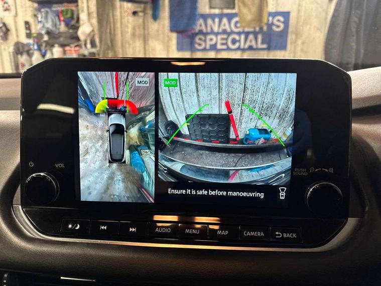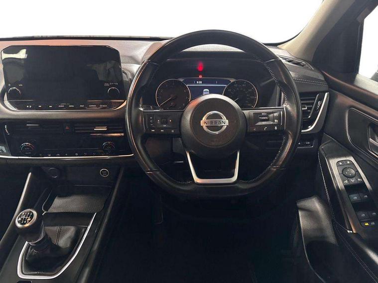 Android auto/Apple CarPlay (Wired), Blind spot warning, Drive modes (sport, normal, eco), Electric speed sensitive power steering, Emergency and breakdown call, Front and rear parking sensors, Full Digital 12.3" TFT Digital Combimeter, Google maps services - search, weather, 3D maps and Google street view, Idle stop/start system, Intelligent around view monitor, Intelligent Cruise control (ICC), Intelligent driver alert system, Intelligent forward collision warning, Intelligent lane intervention, Lane departure prevention, Lane departure warning system, Maximum speed limiter, Moving object detection, Nissan connect 12.3 inch touchscreen infotainment system, Nissan connect navigation, Push button starter, Rear cross traffic alert, Rear view camera, Remote control services - door locks, lights, horn and car locator, Telematics - notifications and connectivity services, TomTom live traffic services, Traffic sign recognition with legal speed adjustment, Trip computer, Virtual personal assistant and firmware over the air capability, Wireless apple carplay, 6 speakers, AM/FM audio system with DAB, Bluetooth audio streaming, Front USB connections (Type-A and Type-C), Rear USB charging only ports (Type-A and Type-C), Auto dimming rear view mirror, Auto rear wiper when reversing, Automatic hazard signal with emergency stop signal, Body colour mirror caps, Body coloured door handles, Bodyside mouldings, Chrome side window finisher, Door handle with button, Dusk sensor, Electric auto folding door mirrors, Electrically adjustable and heated door mirrors with LED turn indicator, Follow me home headlights, High beam assist, Intelligent auto headlights, LED daytime running lights, LED Headlights, LED rear lights, One touch front and rear electric windows with remote opening and closing, Partially body coloured bumpers, Privacy glass, Rear bumper with graphite insert, Rear reversing light (bulb lighting), Rear roof spoiler, Rear side wing doors, Rear styling plate, Shark fin antenna, Splash free rain sensing wipers, Super UV and infrared cut glass, Three blink turn signal, 12v power socket in dashboard and luggage, 2 way electrical driver lumbar adjustment, 2x Rear coat hooks, 3 bench rear seats in 2nd row, 3 rear headrests, 4 folding assist grip, 6 Luggage hooks - 4 on floor, 2 on side, 6-way manually adjustable driver's seat, 60/40 split folding rear seat bench, Ambient lighting around centre console, Centre console storage tray, Chrome interior door handles, Cloth monoform upholstery, Driver and front passenger sunvisors with illuminated vanity mirrors, Driver seat back pocket, Dual zone automatic climate control with pollen filter, Front and rear door storage, Front centre console and armrest, Front cupholders x 2, Front door with bottle holders, Glovebox with light, Hard trunk cover, Height adjustable front headrests, Height adjustable passenger seat, Leather shift knob, Leather steering wheel, Luggage board system, Luggage space lighting, Manually adjustable passenger (slide recline + lifter), Multifunction steering wheel, Passenger seat back pocket, Rear armrest with 2 cupholders, Rear door bottle holders, Single front passenger seat, Soft PVC kneepad, Steering wheel switches, Sunglasses holder, Tilt/telescopic adjustable steering wheel, Two rear isofix child seat anchorage points with top tether, Welcome light and console tray ambient lighting, 3x3 point rear seatbelt pretensioners + load limiters, ABS with EBD and brake assist, Active brake limited slip, Auto hold function, Child locks on rear doors, Curtain and front side, far side airbags, Driver and passenger airbags, Driver, passenger and 2nd row rear seat belt reminder, Electronic parking brake, Front seatbelt pretensioners + load limiters, Height adjustable front seatbelts, Hill start assist, Intelligent blind spot intervention, Intelligent front emergency braking with pedestrian, cyclist recognition and junction assist, Intelligent rear automatic braking, Tyre pressure monitoring system, Vehicle dynamic control, Capless fuel filler, Engine immobiliser, Nissan i-key, Remote central door locking with deadlocking, Thatcham Cat.1 alarm, Interior instrumental panel B finisher, 18" Diamond cut alloy wheels, Tyre puncture repair kit,