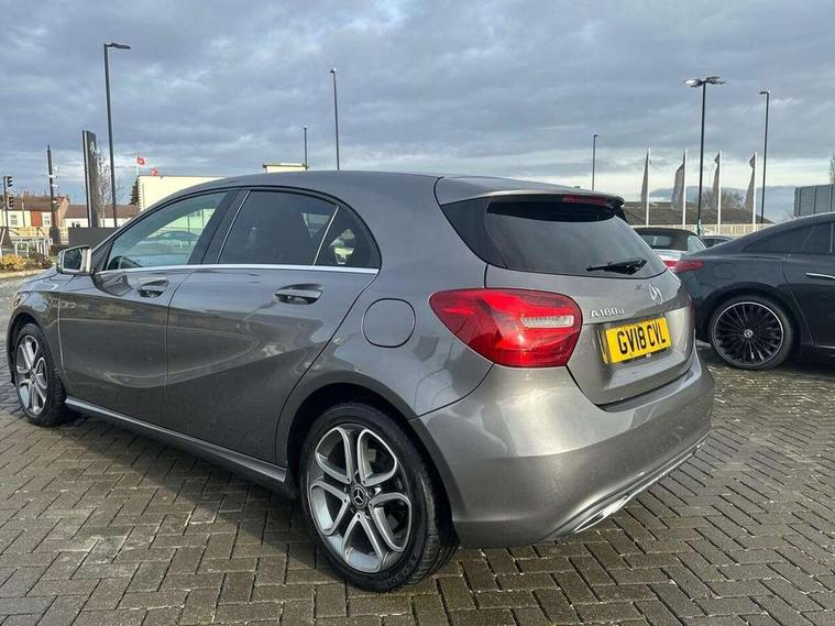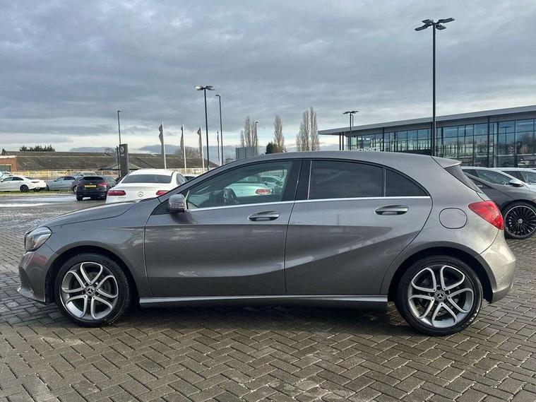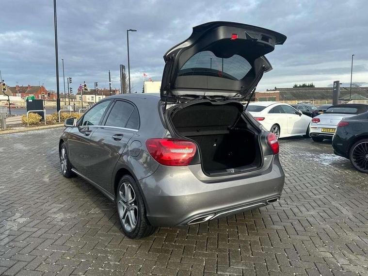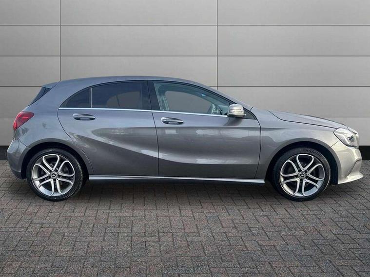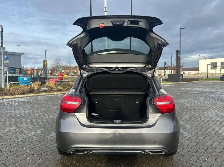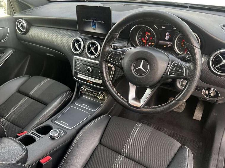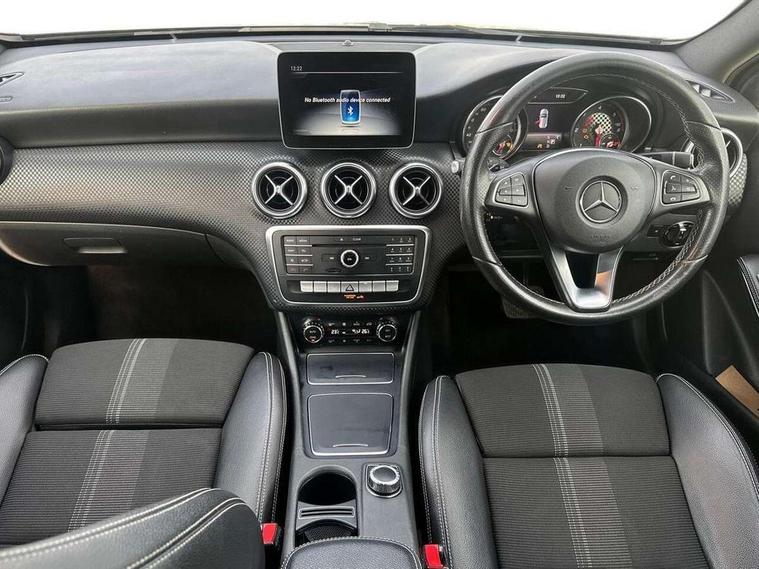 8" colour display screen, Attention assist, Bluetooth interface for hands free telephone, Bulb failure indicator, Collision prevention assist plus, DYNAMIC SELECT with a choice of driving modes (ECO, Comfort, Sport, Sport+ and Individual), External temperature gauge, Garmin Map pilot navigation system with SD Card, Low fluid warning light, Reversing camera, Service indicator (ASSYST PLUS), Smartphone integration with Apple CarPlay, Speed sensitive parameter assisted steering, Speedtronic cruise control, Trip computer, Comfort suspension, Media interface, Mercedes Audio 20 radio/single CD + telephone keypad, SD card slot, USB port, Adaptive brake lights, Body colour bumpers, Body colour door handles, Body colour side skirt, Body coloured door mirrors, Chrome beltline trim, Diamond radiator grille with black pins with one louvre in silver + chrome insert, Electric adjustable heated door mirrors, Electric front windows, Electric rear windows, Headlamp assist, Heated rear window with timer, LED daytime running lights, LED Headlights, LED tail lights, Privacy glass, Rain sensor windscreen wipers, Rear wiper, Twin Trapezoidal tailpipes, 1/3 to 2/3 split folding rear seats, 12V socket, 3 spoke perforated leather multifunction sports steering wheel, ARTICO man-made leather/Maringa cloth upholstery, Auto Mercedes-Benz child seat recognition sensor, Black headlining, Dual zone automatic climate control, Footwell lights, Front and rear reading lights, Front centre armrest with storage compartment, Front head restraints, Front sport seats, Gearshift paddles on steering wheel, Height adjustable front seats, Height/reach adjustable steering column, Illuminated door sills, Illuminated glovebox, Illuminated storage compartment, Isofix rear child seat preparation, Load securing rings in luggage compartment, Luggage compartment cover, Rear head restraints, Storage compartment under load area floor, Sunvisors with illuminated vanity mirrors, Twin front cupholders, Seat comfort pack - A Class, 3 rear 3 point seatbelts, ABS with Brake Assist, Active bonnet, Adaptive brake system, Black seat belts, Child proof door locks, Crash responsive emergency lighting, Drivers knee airbag, Dual stage driver/passenger airbags, Electronic parking brake, ESP with ASR, Front and rear seatbelt reminder, Front head airbags, Front passenger seat occupancy sensor, Front side airbags, Hill start assist, Tyre pressure monitoring system, Warning triangle and first aid kit, Window airbags, Alarm system/interior protection/immobiliser, Keyless ignition, Remote central locking, Checked pattern trim, Chrome air vent surrounds, 17" 5 twin spoke alloy wheels painted in black with high sheen finish, Tirefit sealant with electric air pump,