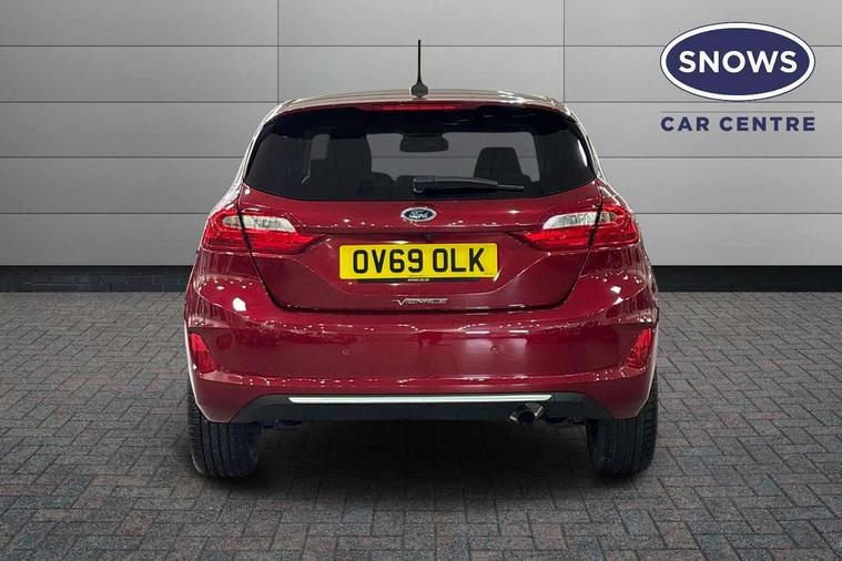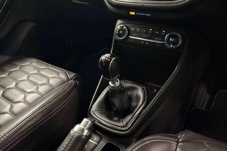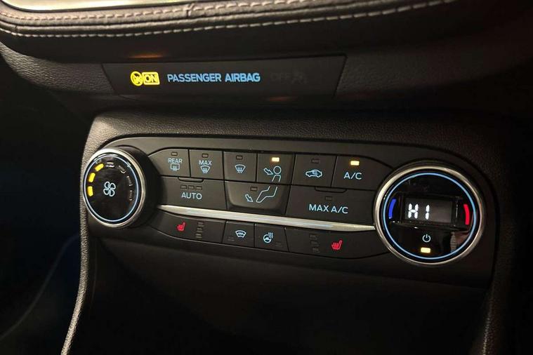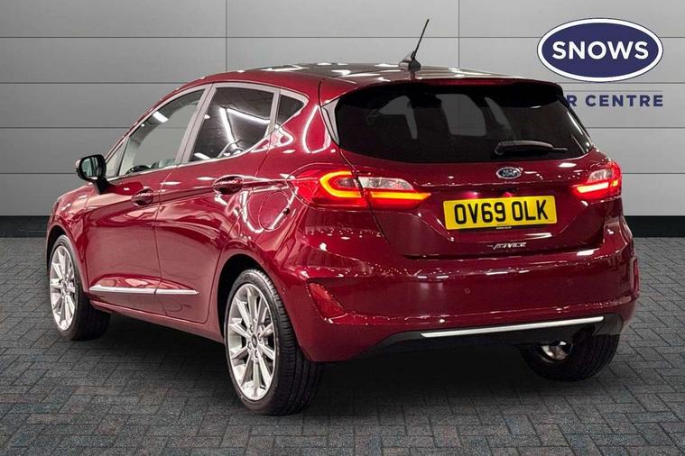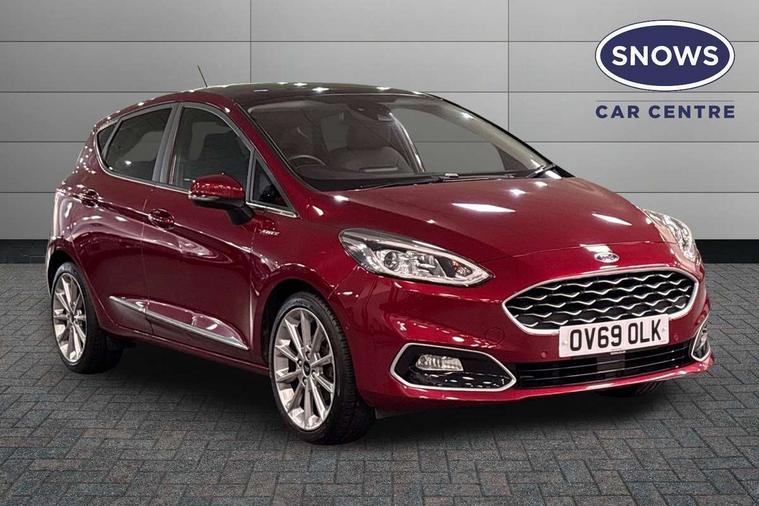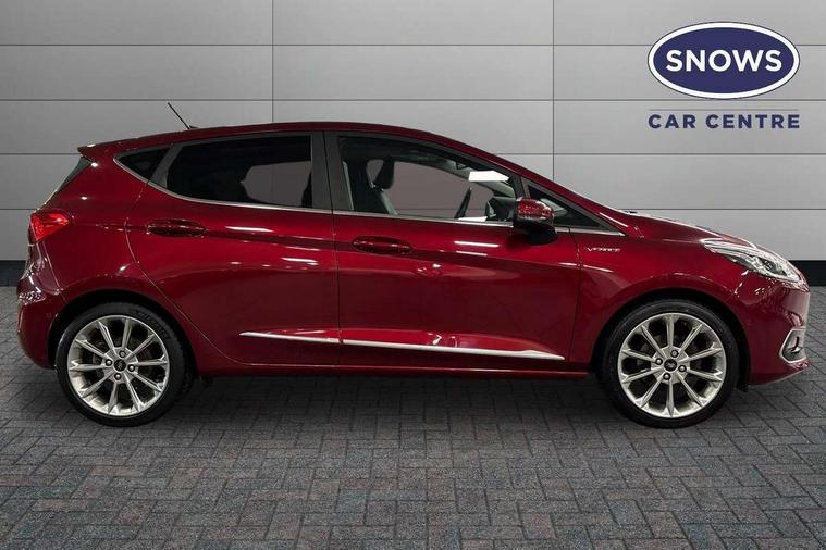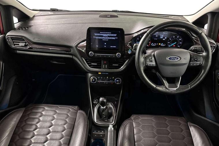 Bluetooth system, Electric power steering, Ford easy fuel, Trip computer, 2 USB ports, Auxiliary input socket, B&O Premium audio system with 8" touchscreen, 10 speakers, 360 degree sound system, Ford SYNC 3 navigation system and Ford pass connect, DAB Digital radio, Steering wheel mounted controls, Auto dimming rear view mirror, Body colour bumpers, Body colour door handles, Body colour electric adjustable heated door mirrors with integral indicators, Body colour rear spoiler, Chrome beltline trim, Chrome door handles, Chrome lower window surround, Cornering front fog lights, Electric front windows/one touch facility, Electric rear windows, LED Night signature to rear lights, LED rear lights, Openable panorama roof, Power foldable door mirrors with puddle lights, Privacy glass, Quickclear heated windscreen, Rain sensing wipers and auto dimming rear view mirror, Rear privacy glass, Rear wiper, Tinted glass, Unique Vignale front grille & bodystyling, Vignale front door threshold plates, Vignale rear & wing badges, 12V Accessory socket in centre console, 3 spoke leather trimmed steering wheel with audio control, 60/40 split folding rear seat, Adjustable head restraints, Air conditioning + Electric Auto Temperature Control (EATC), Ambient lighting, Boot carpet, Centre console with armrest and illuminated cupholders, Chrome inner door handles, Drivers and Passenger lumbar support, Footwell illumination, Front map reading lights, Front seat and rear pockets, Front/rear floor mats, Illuminated glovebox, Leather gear knob, Leather trimmed handbrake handle, Leather upholstery, Load area light, Luxury woven headliner, Overhead console with sunglasses holder, Pollen filter, Rake/reach adjustable steering wheel, Rear centre head restraint, Comfort Pack - Fiesta, NCAP Pack - Fiesta, Rear view camera pack - Fiesta, 3 point seatbelts on all rear seats, ABS+EBA, Curtain airbags, Driver and passenger airbags, Drivers knee airbag, Electronic stability control with hill start assist, Front passenger airbag deactivation, Front side airbags, Seatbelt warning, Tyre pressure monitoring system, Ford keyfree system with Keyless entry and keyless start with two remote keys, MyKey system, Remote central locking & engine immobiliser, Thatcham Cat.1 alarm, Tyre repair kit,