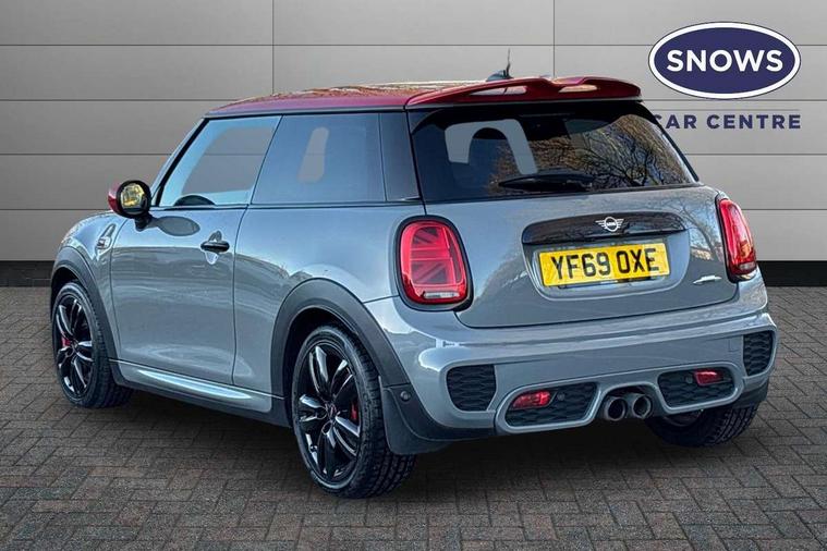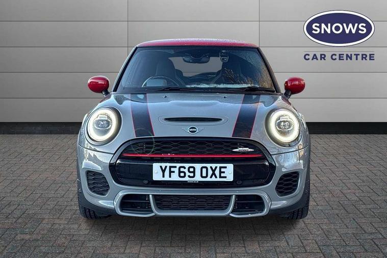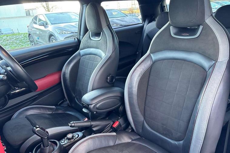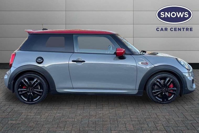 Automatic start/stop function with brake energy recuperation, Compatible mobile phone bluetooth with audio streaming, Electro-mechanical speed dependant steering assistance, Instrument cluster, MINI Driving Modes - centre toggle switch to control driving setting (sport, mid and green), Mini E-call, MINI TeleServices, On board computer, Service interval indicator, Double Vanos system, Eight speed steptronic sport transmission, with gearshift paddles, Fully variable valve control, High precision injection, Performance Control, 6.5" touchscreen with LED ring, FM tuner and DAB digital radio, Automatic headlight activation switch, Bonnet scoop, Chrome door handles, Chrome plated fuel cap, Dynamic brake lights, Electric front+rear windows, Heated rear window, Heated windscreen washer jets, John Cooper Works - aerodynamic kit (front and rear apron, spoiler), front and rear sport bumpers and part-painted side sills with door sill finishers, John Cooper Works rear spoiler, LED headlight with closed ring and daytime driving lights, Metal look door sill finishers, Piano black border radiator grille with honeycomb structure in black matt and John Cooper Works logo with upper individual grille strut in chilli red, Piano black exterior, Rain sensor window wipers, Rear fog lights, Rear LED lights with union jack design, Rear window wiper, Side scuttle with MINI John Cooper Works logo in black high-gloss with red border, Sun/heat protection glass, Two central exhaust tailpipes with chrome finisher, White indicator lenses, 12V Accessory socket in centre console, 4 lashing eyes in luggage compartment, 60/40 split folding rear seat, Chrome interior highlights, Cupholders, Front and rear head restraints, Front and rear isofix with front passenger airbag deactivation, Glove compartment, Height and length steering column adjustment, Interior lighting with 12 basic colours selectable via toggle switch in roof, Internal chrome door handles, John Cooper Works Logo in seat, John Cooper Works sport leather steering wheel, Leather gearshift lever and handbrake gaiters, LED reading lights, vanity mirror lights, front foot well light and spotlight on front seats, Manual air conditioning, Mechanical seat adjustment, driver seat height adjust, forward/back and front seats backrest, Mini logo projection on floor from drivers exterior mirror, Multifunction steering wheel, Stainless steel pedals with rubber inserts, Storage compartments in doors, Sunvisors with vanity mirrors, Tool kit, 17" front sport brake with 4 piston fixed calliper, 3 point seatbelts on all four seats, 6 Airbags - front, side, head and seat belt tensioners, Anti-lock braking system (ABS), DSC - Dynamic Stability Control, Front and rear disc brakes, Hill start assist, Red brake callipers with John Cooper Works logo, Two tone horn, Tyre pressure monitoring system, Alarm system with tilt sensor, monitoring doors, bonnet interior and tailgate, Electronic vehicle immobiliser, Start/stop toggle with keyless go, Piano black interior trim,