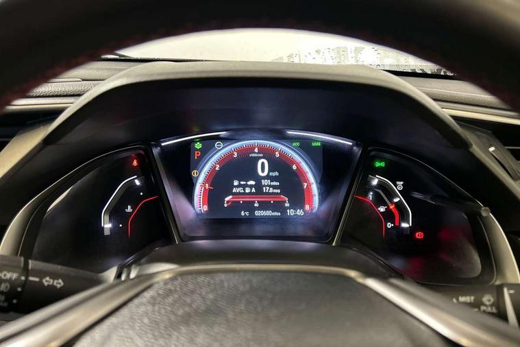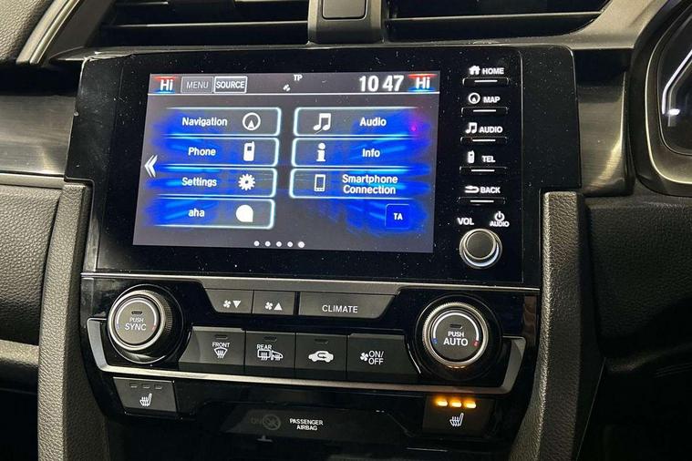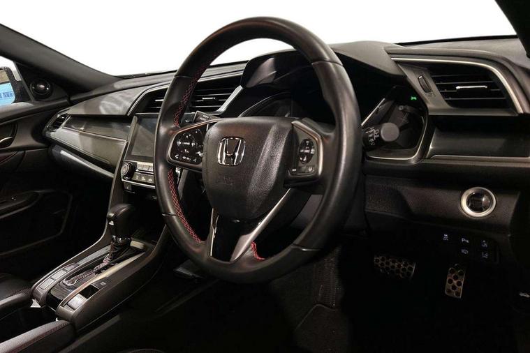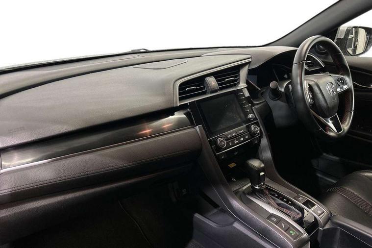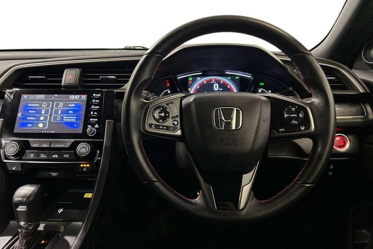 Adaptive cruise control, Adaptive motion for electric power steering, BLIS (Blind Spot Information System) with dual power heated blind spot mirrors, Bluetooth hands free telephone connection, Easy fuel capless refuelling system, Economy mode, Electric power steering wheel with variable gear ratio steering, Emergency stop signalling system, Forward collision warning, Front and rear parking sensors, Honda CONNECT with GARMN Navigation + 7" touchscreen, AM/FM, internet radio, aha app integration and internet browsing, Idle stop, Intelligent speed limiter, Lane departure warning system, Lane keep assist, Low speed following, Multi-information display, Rear parking camera, Road departure mitigation, Smartphone wireless charging plate, Traffic sign recognition, Adaptive damping system, Vehicle stability assist, 'Shark fin' mobile antenna, 11 speakers, 2x USB and HDMI, 465w Power audio system, Auxiliary socket for external MP3 player, Digital Audio Broadcast (DAB) Tuner, Premium audio system, Steering wheel mounted audio controls, Subwoofer, Auto dimming rear view mirror, Automatic coming/leaving home lighting function, Automatic headlights with dusk sensor, Automatic rain sensing wipers, Black grille, Body colour door handles, Body colour door mirrors, Chrome window surround, Electric adjustable heated door mirrors, Electric front/rear windows/one touch operation, Electrically folding door mirrors, Headlight washers, High beam assist, LED daytime running lights, LED front fog lights, LED Headlights, LED rear lights, Panorama glass roof, Privacy glass, Rear spoiler, Single exhaust tailpipe, 4 Cargo net hook, 60/40 split folding rear seat, Alloy pedals, Ambient light in roof, Blue meter illumination, Centre console storage and sliding armrest, Driver and front passenger seat electric lumbar adjustment, Driver's seat height adjustment, Driver/passenger front seatback pockets, Dual climate control air conditioning system, Front accessory power socket, Front map lights, Front/rear courtesy lights, Gear shift indicator, Glovebox light, Heated front seats, Isofix system on outer rear seats, Leather steering wheel, Leather upholstery, Luggage floor box, Paddle shift controls, Rear air vents, Rear armrest with cupholder, Sunvisors with illuminated vanity mirrors, Sunvisors with vanity mirrors, Three height adjustable rear head restraints, Tilt/telescopic adjustable steering wheel, Tonneau cover, Trunk light, 5 three point seatbelts, ABS+EBD+Brake assist, Airbags - driver and front passenger, Anti-whiplash front headrests, Collision mitigation braking system, Deflation detection system, Driver SRS airbag (single stage inflation), Electronic parking brake with auto hold, Front and rear curtain airbags, Front and rear seat belt with emergency locking retractor, Front and rear seat belts with emergency locking retractor (ELR), Front seatbelt pretensioners, Front side airbags, Hill start assist, Passenger airbag deactivate switch, Tyre pressure warning, Immobiliser, Mirrors and windows key fob, Remote central locking with 2 jack knife keys, Security alarm, Selectable door unlock, Smart entry + Smart start, 17" Black alloy wheels, Tyre repair kit,