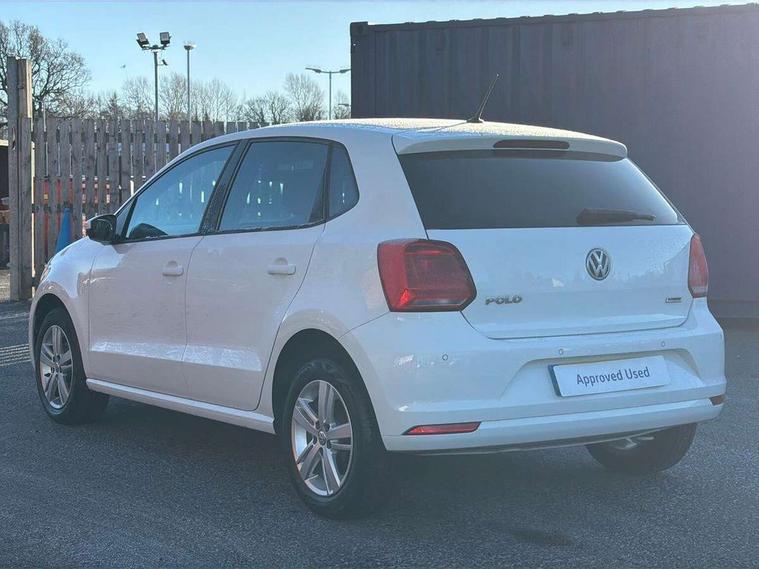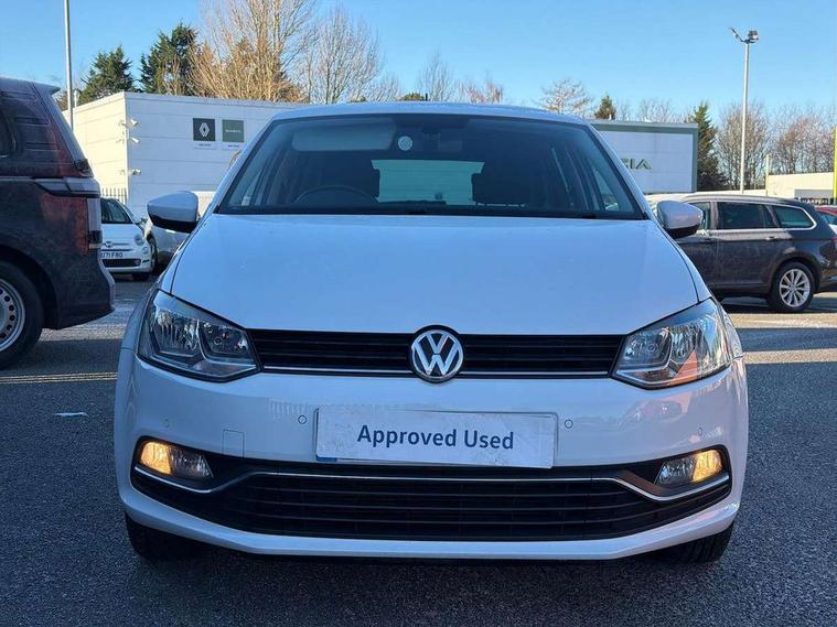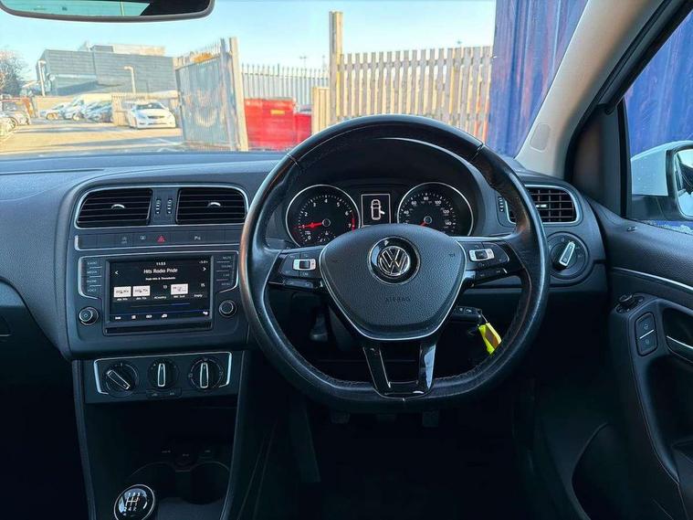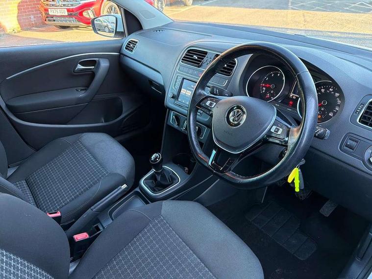 App-Connect, Bluetooth Telephone preparation, Cruise control + speed limiter, Driver alert system, Multi function display, Multifunction computer, PAS - speed related, Service interval indicator, Ultrasonic front and rear optical and audible parking sensors, Warning buzzer and light for front seatbelts unfastened, 6 speakers, Composition media system with radio, glovebox mounted CD, colour touch screen, SD card, aux-in, USB, multimedia interface, DAB Digital radio, Black grille with chrome surround, Body colour bumpers, Body colour door handles, Body colour door mirrors, Body coloured side sills, Chrome trimmed front air intake surrounds, Electric folding door mirrors, Electric front windows, Electric operated/heated door mirrors, Front fog lights with static cornering function, Front wash/wipe with interval delay, Heat insulated tinted glass 65% light absorbing from B pillar back, Heated rear window with auto timer, Rear electric windows, Rear windscreen washer and wiper with interval delay, 12V power socket in centre console, 2 bag hooks in luggage compartment, 2 cupholders, 3 rear head restraints, 3 spoke steering wheel, 4 grab handles, 60/40 split folding rear seat, Centre console storage, Chrome interior door handles, Driver and passenger sunvisors, Driver seat height adjust, Dust/pollen filter, Front door pockets, Front passenger seat height adjust, Front seat backrest storage nets, Front/rear reading lights, Glovebox, Height/reach adjustable steering column, Illuminated vanity mirror, Interior light with delay, Isofix Preparation 2 Rear child seats, Luggage compartment cover, removable, Luggage compartment lighting, Matt chrome gear lever gaiter surround, Multifunction leather steering wheel with leather gear knob/handbrake grip, Storage compartment in front doors, Storage compartment in rear doors, Sunglasses holder, Variable boot floor, Light and sight pack - Polo, 3 point height adj front seatbelts + pretensioners, 3x3 point rear seatbelts, ABS, Automatic post collision braking, Driver/front passenger airbag, Driver/Passenger whiplash optimised head restraints, ESC - Electronic Stability Control + traction control, ESP with EDL + ASR, Hill hold control, Hydraulic Brake Assist (HBA), Tyre pressure monitoring system, Alarm with remote central locking and interior protection, Electronic engine immobiliser, Air vents in Matt chrome, Matt chrome interior trim, 15" steel spare wheel,