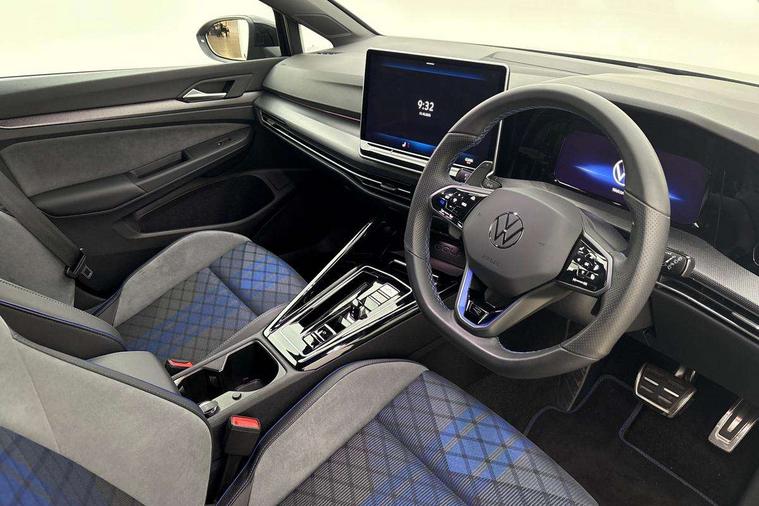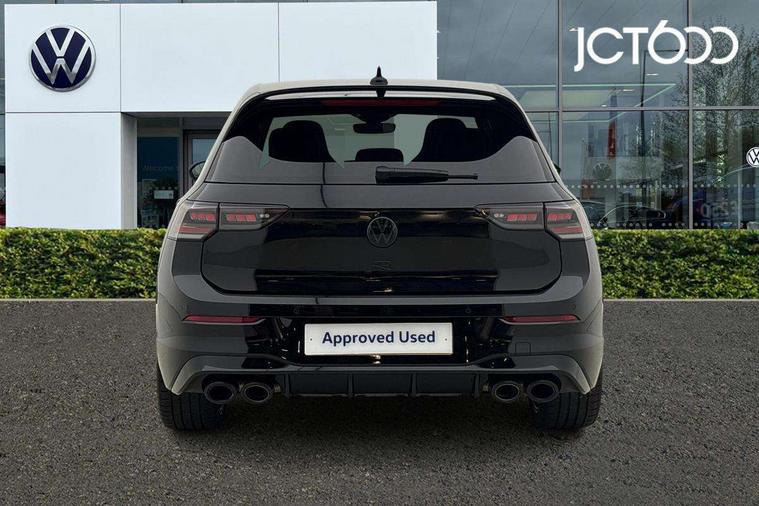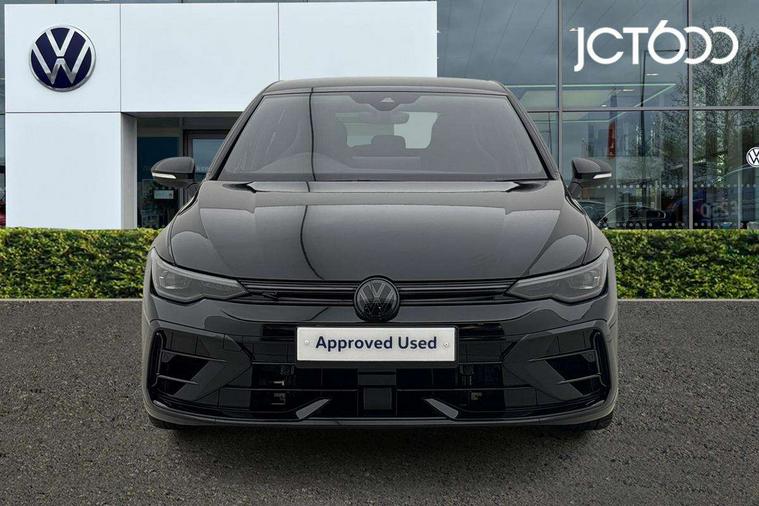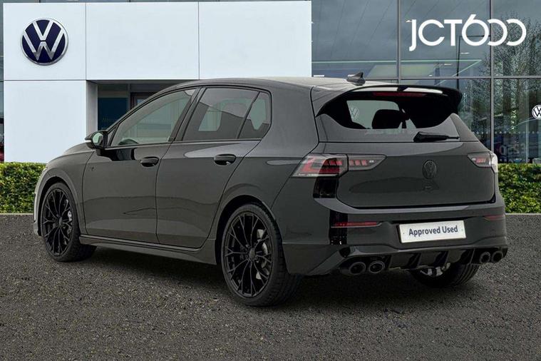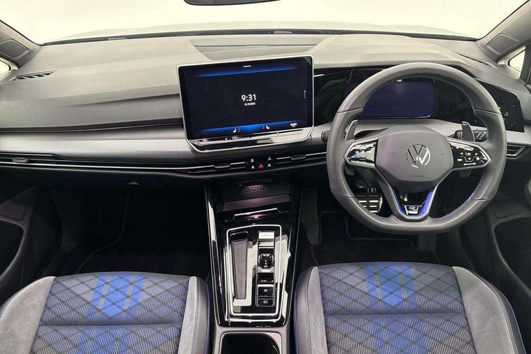 Activated carbon canister, Adaptive cruise control (ACC), Advanced driver attention and drowsiness monitor, Dynamic road sign display, E-Sim card for online connectivity, eCall emergency call system, Electronic maximum speed limit increased to 270 km/h, includes driving Modes 'drift' and 'special', larger roof spolier and GPS laptimer + G-Meter, Multi-color Digital cockpit pro, selection of different info profile possible, Multifunction front facing camera for distance control, Navigation system, Oncoming vehicle braking when turning including swerve support, Preparation for light assist system, Progressive steering, Side assist blind spot lane change system, rear traffic alert and exit warning system, Speed limiter, Speedo, rev counter, electronic odometer, trip, service interval display, exterior temperature and fuel gauge, Traffic jam assist, Voice enhancer and voice control, Warning signal and warning light for front and rear seatbelts not fastened, We connect plus preparation, We connect preparation, Wireless app connect, All wheel drive - 4Motion, Petrol Particulate Filter, Sports suspension, Start-stop system with battery regeneration (recuperation - energy recovery during braking), XDS electronic differential lock for improved traction and handling, 2 USB C ports in front, 2 USB charging sockets on the centre console in the rear charging capacity upto 45W, Comfort telephony + wireless charging, without wireless aerial connection, Digital radio reception (DAB), Diversity antenna for FM reception, Gaming platform via car app, Infotainment system with 12.9" display, Mobile phone interface with inductive charging feature, 3rd brake light, Auto dimming rear view mirror, Auto headlights, Automatic headlamp activation with Coming home and Leaving home feature, Black badge on B-pillar, Black mirror caps, Black strips on radiator grille and headlights, Body colour door handles, Darkened headlights, Darkened R Logos and VW logos in front, rear and on fender, Exhaust system with black tailpipe, Exterior ambient lighting with illuminated lighting animation and wake up/goodbye scenario, Exterior mirrors convex on the left and aspherical on the right, Front and rear electric windows, Front fog lamps and cornering light, Heat insulating windshield made of laminated glass, LED daytime running lights, LED matrix headlights with ambient light V2, advanced high beam, dynamic range contol with cornering, LED rear lamp with indicator, poor weather, R name plate, Rain sensor, Rear fog light on one side and reversing lights on both sides, Rear side wing doors, Rear tinted glass 65% light absorbing from B pillar backwards, Rear windscreen washer and wiper with interval delay, Remote electrically foldable door mirrors, puddle lights and reverse activated passenger's door mirror, Welcome light with surround lighting, 12V socket in front centre console, 12V socket in luggage compartment, 3 rear head restraints, 3 seat bench in 2nd row, 30 colour ambient lighting, illuminated center console storage compartment in front, Air care climatronic 3 Zone automatic climate control with rear air conditioning control panel, Aluminium gearshift handle, Brushed stainless steel pedals, Carpet mats, front and rear, Front centre armrest, Integrated front head restraints, ISOFIX anchors for child seats on outer rear bench seats and on front passanger seat compatible for i-Size, Luggage compartment lighting, Rear cupholder and loadthough, Single front passenger seat, Soul black instrument panel, Split folding backrest with centre armrest and unsplit rear seat bench, Storm grey roof lining, Sun visors with illuminated vanity mirrors, Driver assistance pack - Golf DSG Estate/Hatchback, R styling pack - Golf, Technology park and comfort pro package - Golf Hatchback, 3 point height adj front seatbelts + pretensioners, 3 rear three point seatbelts, ABS, Autonomous emergency braking front assist with pedestrian and cyclist monitoring, Child locks on rear doors, Disc brakes in rear incl. brake calipers in black with darkened R-logo, Driver and front passenger airbag with front passenger airbag deactivation, Electronic parking brake with auto hold, ESC (Electronic Stability Control), Extended pedestrian protection measures, Hill start assist, Two tone horn, Tyre pressure loss indicator, Volkswagen roadside assistance, Anti theft wheel bolts, Preparation for alcohol interlock, Wheel hub cover with darkened R-logo,