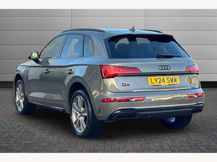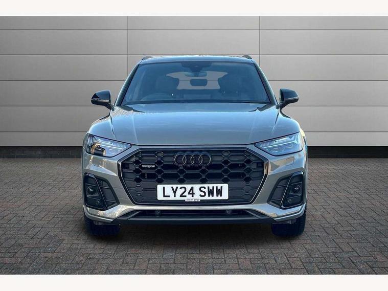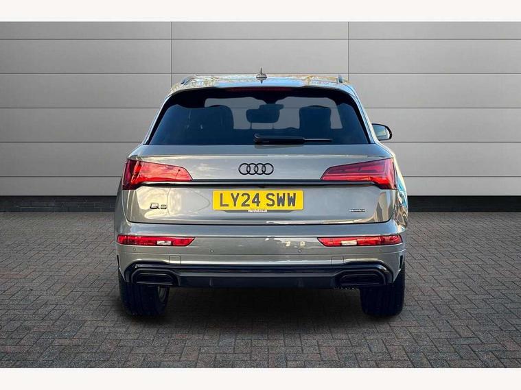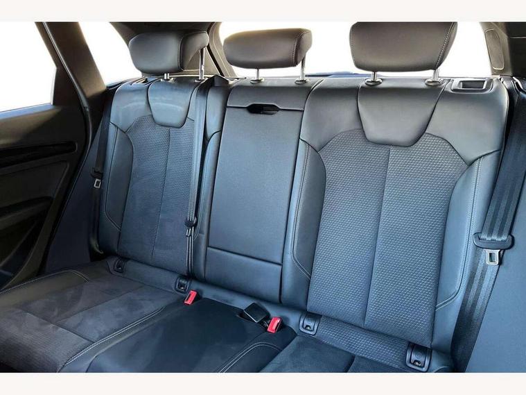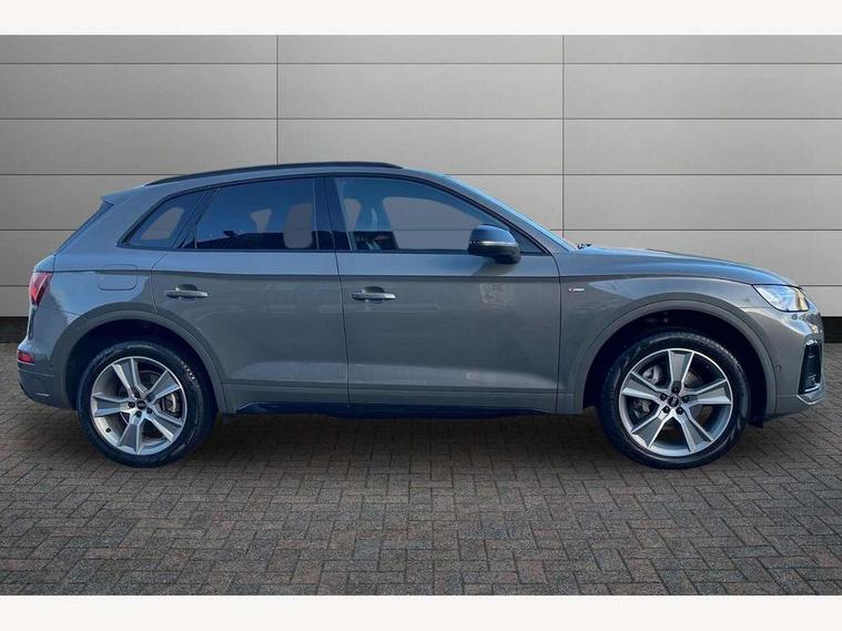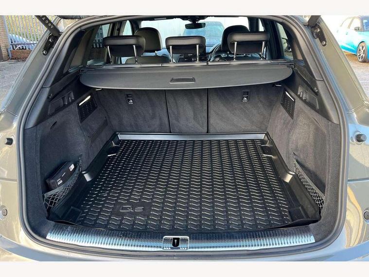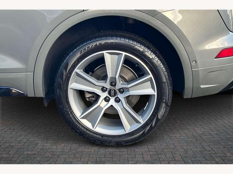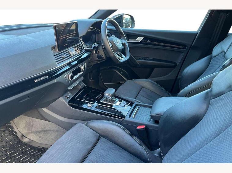Acoustic front and rear parking sensor, Audi connect safety and service (e-call), Audi drive select, Audi virtual cockpit plus with 12.3" screen and three different layout designs, Audi wireless smartphone interface, Automatic start-stop system with coasting functionality and efficiency programme, Bluetooth interface, Camera based traffic sign recognition, Electro - mechanical power assisted steering, Lane departure warning, MMI navigation plus with 10.1" touch screen, Power tailgate, Reversing camera, Service interval indicator, Voice control system with Audi hotword activation "Hey Audi", Diesel particulate filter, Quattro on demand, S line sports suspension, 2 x USB charging port with aux input socket, 8 loudspeakers, DAB Digital radio, Acoustic windscreen, Auto dimming door mirrors, Auto dimming frameless rear view mirror, Automatic headlight adjustment, Automatic headlights and windscreen wipers, Black roof rails, Black styling with black rings, Body colour bumpers, Body colour rear diffuser with matt aluminium silver surrounds, Body colour underbody protection, Chrome plated exhaust trims, Daytime running lights, Door sills in Selenite silver, Electric adjustable/heated/folding door mirrors, Front air inlet surrounds in aluminium, Front and rear electric windows, Front radiator grille in honeycomb design, LED 3rd brake light, LED headlights and LED tail lights, Loading edge protection in stainless steel, Lower bumpers painted in contrast Manhattan grey, Rear chrome trim strip below lights, Rear privacy glass and rear side windows, Rear side wing doors, Rear wiper, Roof bars, S Line badges on the front wing panels, S Line front and rear bumpers, S Line rear spoiler, S Line side skirts, 3 rear headrests, Black cloth headlining, Comfort front centre armrest, Contrast stitching on seats, steering wheel and gear lever gaiter, Deluxe 3 zone electronic climate control, Front head restraints, Front sport seats with S embossed logo, Front/rear floor mats, Gear lever in black leather, Heated front seats, Height/reach adjustable steering column, Illuminated door sill trims with S logo, Luggage compartment cover, Manual seat adjustment with 4-way electric lumbar support, Single front passenger seat, Stainless steel pedals, Sunvisors with vanity mirrors, Top surface of the rear centre armrest in artificial leather, High gloss pack - Q5, LED interior light pack - Q5, 3 point seatbelts on all seats, 6 airbags - Driver, front passenger, curtain and side airbags, Attention and drowsiness assist, Electrically operated child locks on rear doors, Electromechanical parking brake, Electronic stabilisation control including ABS, ASR and EDL, First aid kit with warning triangle and vests, Front passenger airbag deactivation, Hill descent control, Hill hold assist, ISOFIX child seat mounting for front passenger seat and ISOFIX child seat mounting with Top Tether for outer rear seats, Multi collision brake assist, Pop-up bonnet for pedestrian protection, Pre sense city, Seatbelt monitoring, Tyre pressure warning, Anti theft alarm, Anti-theft wheel bolts, Remote central locking, Remote control key with SAFELOCK and keyless go, Air vents inserts and centre console in gloss black, Tool kit, Tyre repair kit,