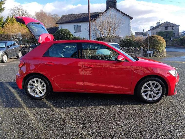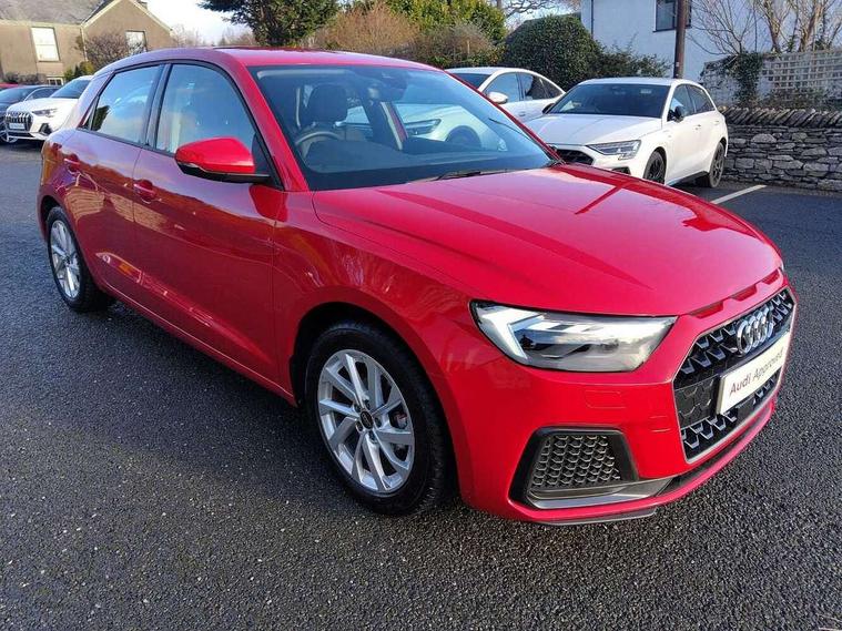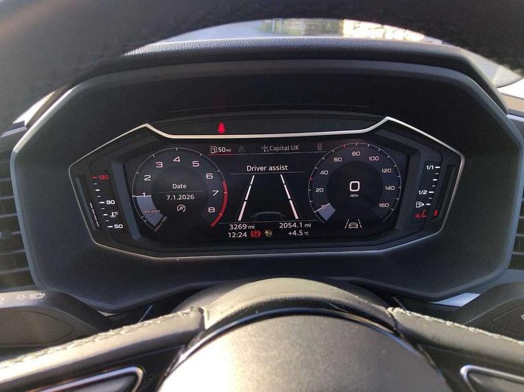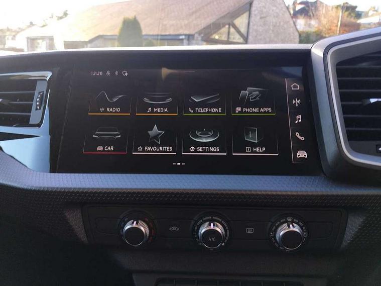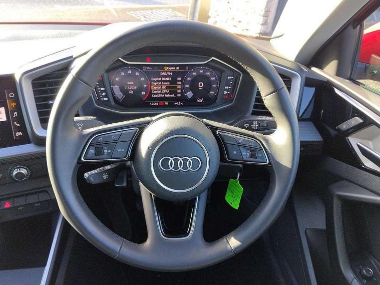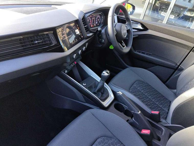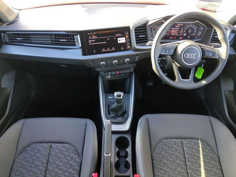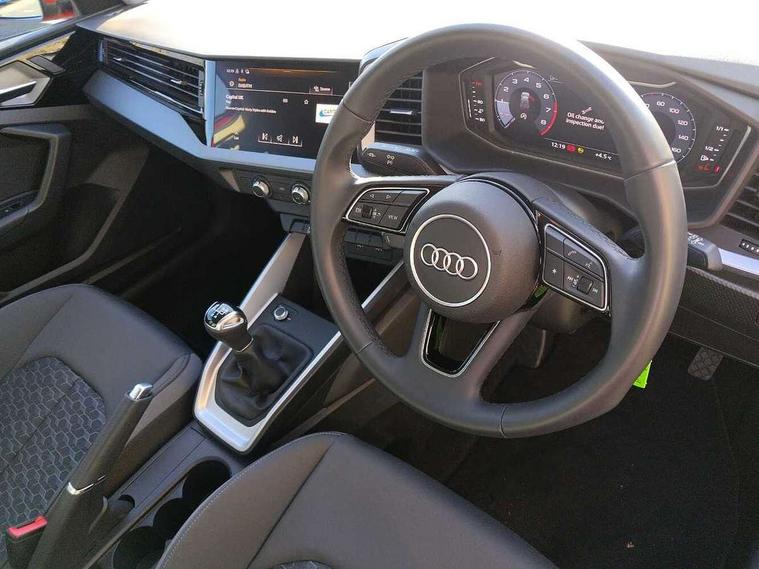 10.25" Digital instrument cluster display classis style instrument dials + speed, odometer, time, outside temperature, telephone menu + fuel level warning, Audi smartphone interface with connect compatible smartphone via USB directly MMI display + Nav, music, third party apps controlled via MMI controller, Automatic start/stop system, Bluetooth interface, Cruise control, Driver's information system, Electromechanical power steering, Emergency e-call, Lane departure warning system, Rear parking sensor, Service interval indicator, Speed limiter, Voice control system, Washer fluid level indicator, Dynamic suspension, 2 x USB type C connection points, 6 passive loudspeakers, DAB Digital radio, MMI radio plus with 10.1" colour MMI display screen and MMI touch, Auto dimming rear view mirror, Body coloured bumpers, Body coloured door mirrors, Electric front and rear windows, Electrically adjustable, heated, folding door mirrors with integrated LED side indicator, Front side air inlets in grained matt black and C frame in anthracite black, Heat insulating glass windscreen and side windows, Heated rear windscreen, High level LED brake light, LED headlights with LED rear lights + dynamic rear indicators + headlight adjustment and high beam, turning light + LED daytime running lights, Radiator grille and rear diffuser in matt anthracite black, Radiator protective grille frame in matt aluminium silver, Rain and light sensors, Rear fog lights, Rear side wing doors, Rear wiper, Side front spoiler lips in grained matt black, 12V socket in centre console with two cup holders, 3 rear seats with headrests, 3 seat bench in 2nd row, 3 spoke leather multifunction plus steering wheel, 40:60 Split folding rear seat or folded fully, Black front and rear floor mats, Door sill trims with aluminium inlay, Driver and passenger seat with manual height adjust with forward and backwards adjustment, Front head restraints, Front passenger seat, Grey cloth headlining, Height and reach adjustable steering wheel, ISOFIX child seat mounting for front passenger and outer rear seats including top tether attachment point of outer rear seats, Leather gear knob with aluminium trim, Leather handbrake grip, Luggage compartment light with front and rear reading lights, Manual air conditioning, Manually adjustable lumbar support in front seats, Novum cloth upholstery with front sport seats, Luggage compartment pack - A1, 3x3 point rear seatbelts, Audi pre-sense front with pedestrain and cyclist recognition, Brake assist function, Driver and front passenger airbag with front side and head airbags, Electronic Stability Control including ABS, EBD, ASR and EDL, Front passenger airbag deactivation switch, Hill hold assist, Manual rear child locks, Seatbelt height adjustment for front seats, Seatbelt monitoring, Tyre pressure warning light, Warning triangle and first aid kit, Anti theft alarm, Anti theft wheel bolts and loose wheel warning, Immobiliser, Remote central locking with 2 foldaway keys, Aluminium trim for control switches, air vents and digital instrument cluster, Black dashboard, Silver grey accent areas including air vents, door handle recesses and centre console in diamond paint finish, Slate grey inlays polygon structure in fine paint finish,