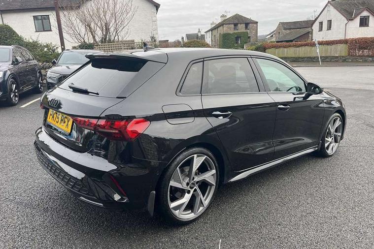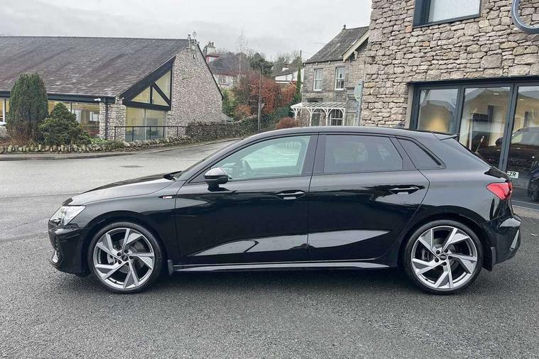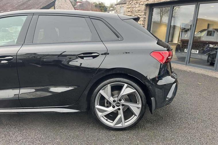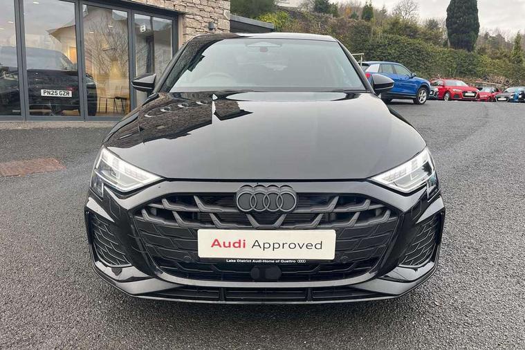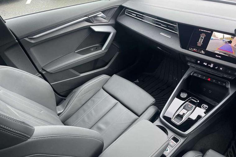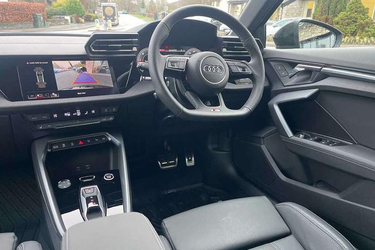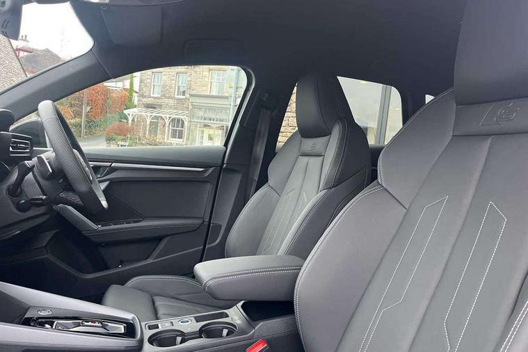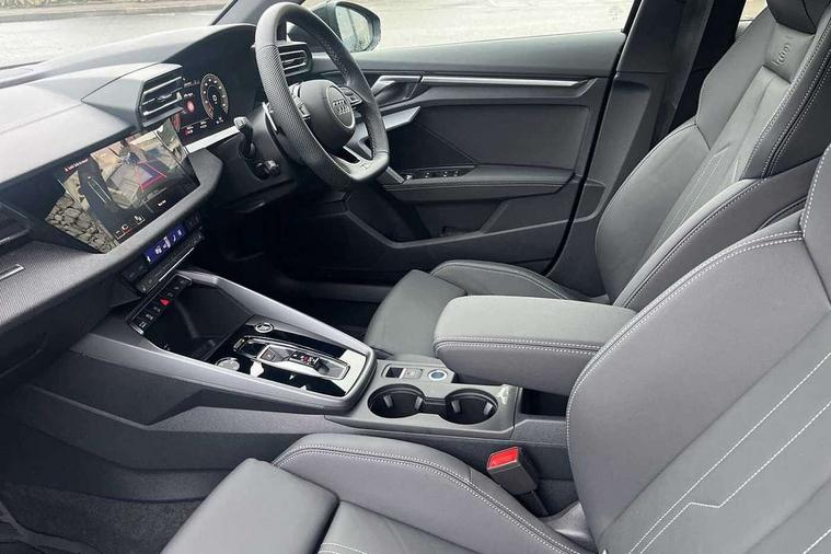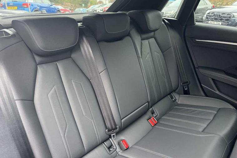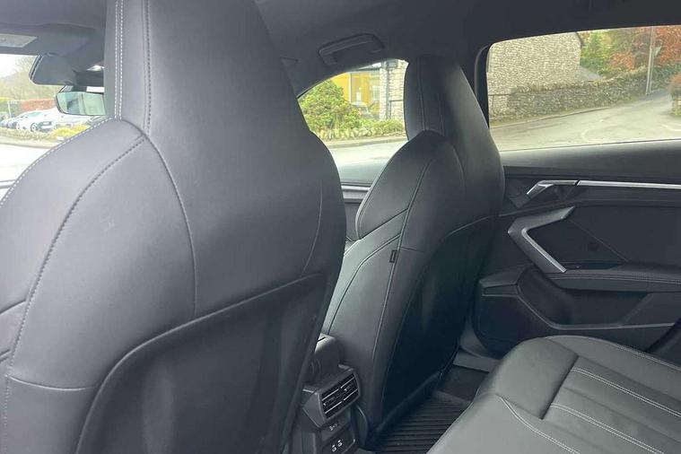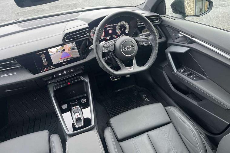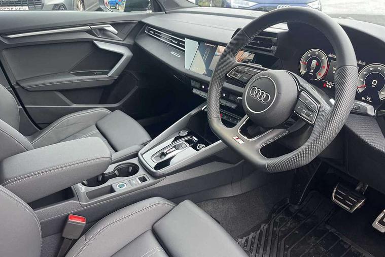 Adaptive cruise control (ACC), Adjustable speed limiter, Audi drive select (Auto, Comfort, Dynamic, Efficiency and Individual), Audi virtual cockpit plus - 12.3" full HD resolution dynamic digital instrument cluster, Automatic start/stop system with recuperation, Bluetooth interface, Camera based traffic sign recognition, Collision avoidance assistant, Driver attention and fatigue detection, e-Call (emergency call), Electromechanical power speed sensitive steering, Emergency assist, Intersection assist, Lane departure warning system, MMI Navigation Plus with high resolution 10.1" colour touch screen display, Park Assist with parking system Plus, Reversing camera, Service indicator, Smartphone interface with app store includes wireless Apple carplay, Android auto and Amazon alexa integration, Trip computer, Voice control system with natural language interaction, Diesel particulate filter, Sports suspension, Audi Phonebox light with wireless charging, Audi sound system - 10 loudspeakers including centre loudspeaker and subwoofer, DAB Digital radio, USB ports with charging function in the rear, Acoustic glass windscreen, All weather light, Anthracite grey Audi rings (front and rear), Audi beam uses LEDs to project the Audi logo onto the ground as you exit your A3, Auto dimming frameless rear view mirror, Automatic dynamic range control, Black accents front and rear bumpers, Black accents in the area of the Audi single frame grille, Black accents window trims strips, Dipped beam, main beam, position light and turning light, Electrically adjustable/heated/folding/auto dimming door mirrors with integrated LED indications + kerb view function for passenger side, Exterior model badging, Front and rear side air inlets in grained matt black with dark liquid chrome frame, Front electric windows, Front radiator grill in high gloss dark chrome, Heat insulating glass windscreen, Illuminated door sills with aluminium inserts at the front with S logo, Intersection light, LED 3rd brake light, LED brake lights, LED daytime running x3, LED headlights with LED rear lights and dynamic rear indicators, LED rear number plate lights, LED reverse light, LED tail lights, Light and rain sensors, Manoeuvring light, Motorway light, Privacy glass - dark tinted rear window, rear door and side windows, Rear diffuser and grill in grained matt black with inlay in dark liquid chrome, Rear electric windows, Rear side wing doors, Rear wiper, S roof spoiler, Side sill trim in dark liquid chrome, Static cornering light, 12V socket and storage compartment in front centre console, 3 seat bench in 2nd row, 3 spoke flat bottomed leather multifunction sport steering wheel with gear shift paddles, 3-zone deluxe automatic air conditioning, 4 way electrically adjustable lumbar support for driver and front passenger, 40/20/40 split folding rear seat bench, Black cloth headlining, Black front and rear floor mats, Front and rear centre armrest in artificial leather with contrasting stitching on armrests and instrument panel, Front and rear headrests, Heated front seats, Height and reach adjustable steering wheel, i-Size child seat mounting on the front passenger side and outer rear seats, i-Size and top tether on the outer rear seats, Manual boot compartment lid, Manually adjustable front seats, Rear centre armrest with cupholder, S badging on the steering wheel, Seat side bolsters, Single front passenger seat, Stainless steel pedals and front footrest in black, Twin leather upholstery with front sports seats S embossed logo, Aluminium interior elements pack - A3, 3x3 point rear seat belts, Driver and front passenger airbag with passenger airbag deactivation, Electronic Stabilisation Control (ESC) including ABS, ASR and EDL, First aid kit with warning triangle and 2 safety vests, Front side airbags with head airbags and interaction airbag, Hill hold assist, Pre-sense front with pedestrian and cyclist detection, Seatbelt monitoring, Tyre pressure loss indicator, Anti theft alarm, Anti-theft wheel bolts, Electronically operated child locks, Immobiliser, Black dashboard,