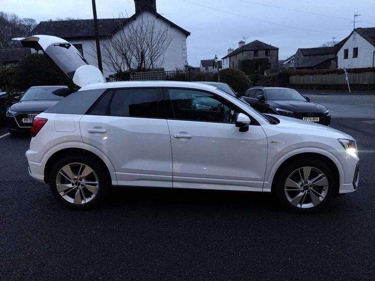 3D map display, Audi connect navigation and infotainment includes innovative services, Audi connect remote and control connects your vehicle to your smartphone, Audi drive select: S tronic - power steering assistance + engine + gearshift (modes: comfort, auto, dynamic, efficiency, individual), Audi smartphone interface - Apple carplay/Android Auto, USB connect, 2xSDXC card readers, voice control for navi, telephone, music and 3rd party apps, Audi virtual cockpit, Automatic start/stop system with recuperation, Bluetooth interface includes bluetooth audio streaming, Camera based traffic sign recognition, Cruise control, Distraction and Fatigue warning, E-call, Jukebox hard drive memory for music (10GB), Lane departure warning, MMI navigation plus with 8.8" touchscreen, Natural voice recognition, Power operated tailgate, Progressive steering, Rear parking sensors, Sport suspension, 6 passive loudspeakers, DAB Digital radio, USB type C port, Auto dimming rear view mirror, Black window trims, Body colour door mirrors, Electrically adjustable, folding, auto dimming and heated door mirrors with integrated LED side indicators, Front windscreen with grey tinted sunband, LED daytime running lights, LED headlights with dipped beam, high beam, position lights, indicators, LED rear lights, LED third brake light, Privacy glass - dark tinted rear and rear side windows from B-pillar backwards, Rear side wing doors, Rear wiper, S Line badges on the front wings, S Line body styling - front and rear bumpers, side skirts, radiator grille, rear diffuser insert and front air intakes, Variable front intermittent wipers, Wheel arch trims in manhattan grey, 12V socket in front, 3 seat bench in 2nd row, 3 spoke multi-function leather steering wheel with S badging, 4-way electric lumbar support for front seats including manual seat height adjustment for both front seats, 60/40 split folding rear seat bench, Black carpets, Black cloth headlining, Front and rear head restraints, Front centre armrest, Front sport seats, Front/rear floor mats, Height/reach adjust steering wheel, Illuminated door sill trims with S logo, ISOFIX child seat mounting in front passenger and rear outer seats, Manual air conditioning, Single front passenger seat, Stainless steel pedals, 3x3 point rear seatbelts, 6 airbags - Front, curtain and front side airbags, Electromechanical parking brake, Electronic stabilisation control including ABS, ASR and EDL, Front passenger airbag deactivation, Hill hold assist, Pre-sense front with pedestrian recognition, Seatbelt monitoring, Tyre pressure warning light with visual and acoustic warning, Warning triangle and first aid kit, Anti theft wheel bolts, Electronically operated child locks, Remote central door locking, Thatcham category 1 alarm, Aluminium interior element, Black dashboard, Gloss black centre console, Matt brushed aluminium trim inlays, Tool kit,