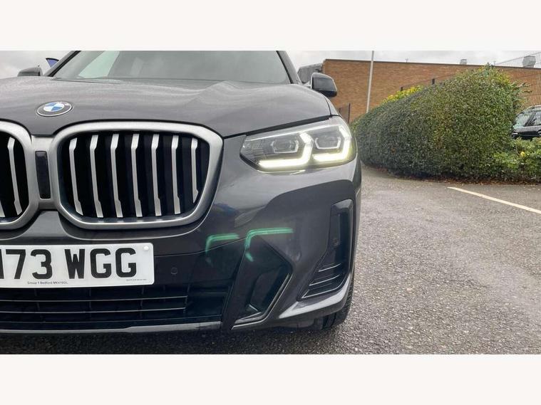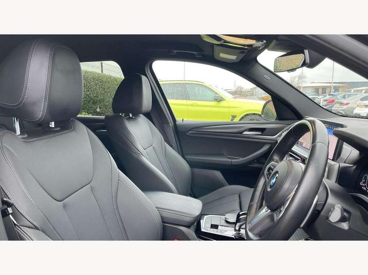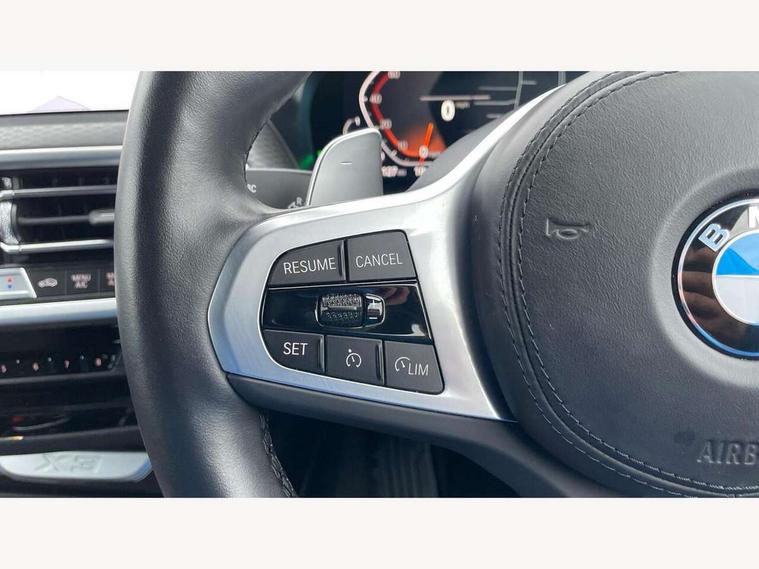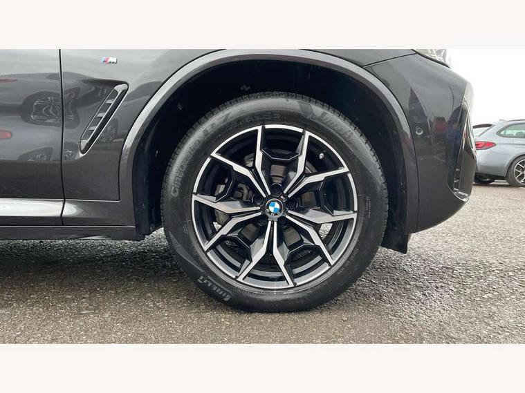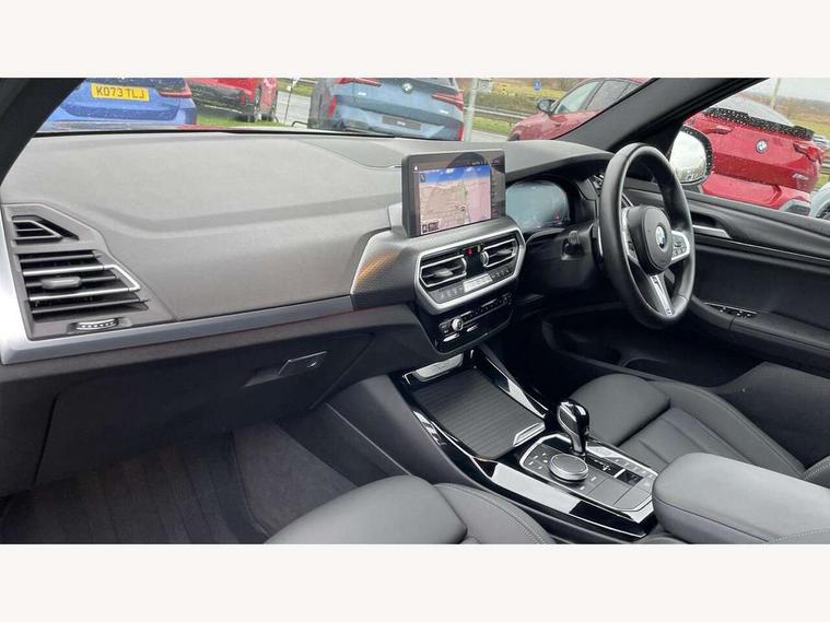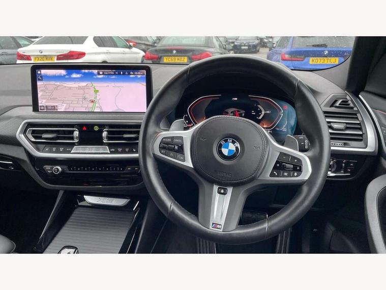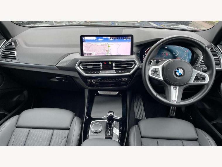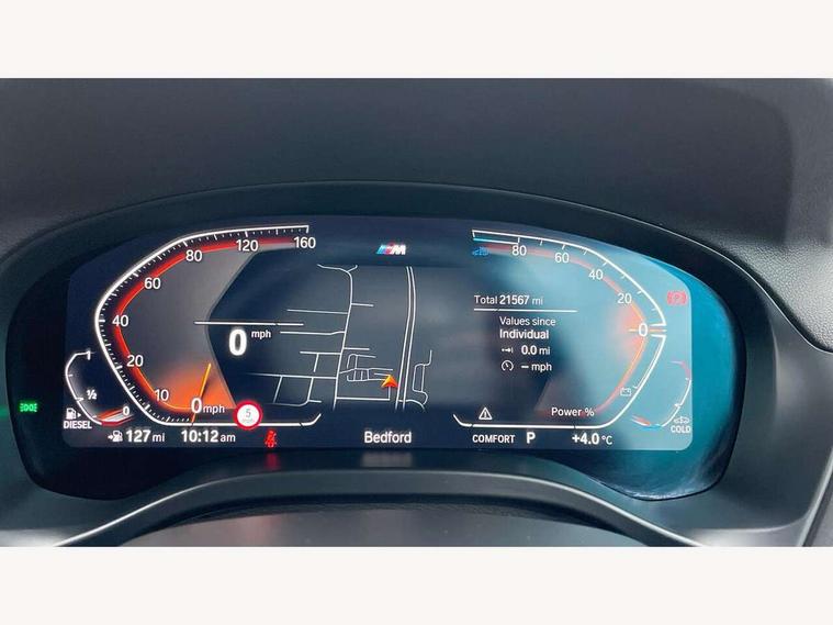Active Guard, Attentiveness assist, BMW Live Cockpit Professional nav system including 12.3" instrument display + 12.3 high resolution control display, BMW Online services, BMW Teleservices, Brake pad wear indicator in front and rear, Check Control warning system for monitoring of lights and door/luggage compartment open warning, Condition based service - BMW service history, electronic service booklet, integrated owner's handbook, Connected drive services, Electric boot lid, Front/rear Parking distance control, iDrive touch controller with 8 favourite buttons, Instrument cluster with speedometer with mph readout, tachometer, fuel gauge and oil temperature gauge, Lights on warning by audio warning signal when ignition is switched off, Oil sensor for level and grade, warning by check control system, On board computer - average speed+fuel consumption, service interval, clock/date, odometer/trip meter, outside temperature display and ice warning, Optimum shift indicator, Personal Profile - automatic lock when driving away selectable, Run flat indicator, Stop/start system, Variable sports power steering with drive performance control Sport+ mode, Automatic transmission with gearshift paddles, Diesel particulate filter, Incorrect fuelling protection, Larger capacity fuel tank, M sport suspension, Multi-link rear suspension, BMW professional radio/CD/MP3, DAB tuner, Acoustic glazing, Automatic windscreen wipers and automatic headlight, Black finish on B pillars, Body colour door handles, Body colour electric adjust heated aspherical door mirrors, Body colour roof mouldings, Body coloured bumpers, Direction indicator, side repeaters, integrated in exterior mirrors, Dynamic brake lights, Exhaust tailpipes - dual, round, split left and right with chrome finisher, Fingertip control / anti-trap function on electric window, Folding wing mirrors with auto dimming, Follow me home headlights, Front and rear bumper system with replaceable deformation elements, Front and rear electric windows, Gloss chrome tailpipes finishers, Green tinted heat insulating glass, Heated windscreen washer jets, High beam assistant, High gloss black shadow line roof rails, High gloss shadowline exterior trim in decorative moulding side frame/recess cover/guide rail/B, C pillars/mirror frame and triangle with mirror base, High level 3rd brake light incorporating LED Technology, Interior rear view electrochromatic mirror with automatic anti dazzle function, LED tail lights, Lightweight engineering, M aerodynamic bodystyling, M Sport entry door sill strips, Model designation, Rain sensor, Rear side wing doors, Rear wing door, Rear wiper, Shark fin antenna, Side exterior M designation badges, Visible VIN plate, Welcome lighting, Windscreen wipers with adjustable interval, 12V power point in luggage area, 12V power socket in front centre console, 2 x USB Type C ports for charging and data transmission (front centre console) and 2 x USB Type C ports for charging (rear centre console), 3 rear headrests, 3 seat bench in 2nd row, 3 zone automatic air conditioning, 4 lashing points to secure luggage, 40:20:40 split folding rear seat with loading system, Ambient lighting, Anthracite headlining, Automatic interior light when door is opened/ignition switched off or via remote key, Floor mats in velour, Foldable storage floor with compartment, Four grab handles integrated in roof lining, Front and rear bottle holders integrated into door trim storage compartments, Front and rear side armrests integrated into door trim, Front centre armrest with storage compartment, Front footwell lights, Front head restraints, Front passenger seat, Front sports seats, Front/rear courtesy lights with soft on/off dimming, Front/rear reading lights, Heated front seats, Isofix rear child seat preparation, Leather gear knob, Lockable glove compartment, Luggage area underfloor compartment, Luggage compartment lighting, M sport leather steering wheel, Multifunction steering wheel, Parcel shelf removeable and storable under boot floor, Reach and rake adjustable steering column, Rear centre armrest with 2 cupholders, Removable / retractable luggage cover, Slope adjustable rear seats, Storage compartment in rear centre console and front/rear door trims, Sun visors with vanity mirrors and ticket pocket, Toolkit located in luggage compartment, Two front cupholders with removable oddments tray/lid, Connected pro pack - X3, ADB - Automatic Differential Brake, Anti-lock braking system (ABS) with brake assist, Automatic Stability Control (ASC), Battery safety cut-off, BMW emergency call, Brake drying, Brake energy regeneration, Braking pre-tensioning, Child locks on rear doors, Cornering brake control (CBC), Crash Sensor - activation of central locking release, hazard warning light and interior lighting, Deactivation of fuel pump in the event of a crash, Driver and front passenger front and side airbags with passenger deactivation and ITS front and rear head airbags, Driver and front passenger knee airbag, DSC+, Dynamic brake control, Dynamic Traction Control - DTC, Electromechanical parking brake, Hill descent control, Hill start assist, Seatbelt security check for front seats, Side impact protection, Three point seatbelts to all seats with front and outer rear pyrotechnic belt tensioners and seat belt force limiters, Two tone horn, Tyre pressure sensor, Ventilated front and rear disc brakes, Warning triangle and first aid kit, Central locking switch for all doors, fuel filler cap and luggage compartment, Electronic engine immobiliser, Locking wheel nuts, Remote control including two integrated key - one button for open/close all lockable content, windows and separate button for open luggage compartment, Remote control Thatcham category 1 alarm, Start/stop button with Comfort Go keyless engine start and auto Start/stop deactivation button, Low rolling resistance tyres,