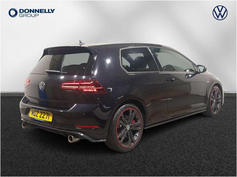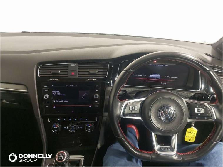 'Lights On' Reminder warning buzzer, ACC - Adaptive cruise control with front assist, forward collision warning, distance monitoring, city emergency brake and speed limiter, Active information display - 12.3" high resolution TFT display, Bluetooth telephone and audio connection for compatible devices, Brake pad wear indicator warning light, Car information display, Driver alert system, Driver profile selection, Driving Mode Selection with four preset modes - Eco, normal, sport or individual modes, Front assist, radar sensor controlled distance monitor, city emergency braking + predictive pedestrian protection, Front assistant collision mitigation, Instrument cluster in white, Multifunction computer with visual gear change recommendation for fuel consumption, Power assisted speed sensitive electro-mechanical steering, Rear view camera, Speedo, rev counter, electronic odometer, trip, service interval display, exterior temperature and fuel gauge, Stop/start system, Ultrasonic front and rear optical and audible parking sensors, Warning buzzer and light for front seatbelts unfastened, Battery regeneration during braking, Limited slip differential, Lowered sports suspension, Composition media system, DAB Digital radio receiver, MDI multi device interface, MP3/WMA compatability, Multi device interface (MDI) with USB connection, Premium USB cable in choice of either Apple or Android smartphone compatibility, SD card slot, SMS Functionality, Title and cover art display, 4 X 20W output, USB connection and socket, USB and SD card connectivity, Volkswagen media control, 3D-LED tinted rear light clusters with indicator sweep function, Automatic dimming rear view mirror/rain sensor, Black rear diffuser, Body colour door handles, Body colour door mirrors with integrated indicators, Body colour rear roof spoiler, Body colour sports bumpers, Chrome trimmed front air intake surrounds, Darkened rear light clusters, Electric front windows, Electrically adjustable and heated door mirrors, Extended sill strips flared, Glavanised body, Heated rear windscreen, High level 3rd brake light incorporating LED Technology, Honeycomb radiator grille - black, LED front fog lights, LED headlights with dynamic curve lighting, Range adjustable headlights via infotainment system with LED daytime running lights, Rear fog lamp, Rear number plate lights incorporating LED technology, Rear window aerial, Rear window wash/wipe with intermittent wipe, Reflectors in all doors, Remote electrically foldable door mirrors, door mirror puddle lights and reverse activated kerb-view adjustment on passengers door mirror, Twin exhaust tailpipe, Windscreen wipers/ intermittent wipe + 4 position delay, 12V socket in luggage compartment, 3 rear headrests, 4 load lashing points in luggage compartment, 60/40 split folding rear seat backrest, Bag hook in luggage compartment x 2, Black roof lining, Climate control - 2 zone electronic air conditioning with automatic air recirculation and allergy filter, Cooled glovebox, Driver/front passenger seat height adjustment, Dust/pollen filter, Easy entry slide seats (access to rear seats), Front + rear carpet mats, Front centre armrest with storage compartment and two rear air vents, Front footwell lights, Front reading lights, Front seat back storage pockets, Grab handles front x 2, rear x 2 with integrated coat hooks, Height and reach adjustable steering wheel, Illuminated door sills, Illuminated vanity mirrors, Instrument lighting white adjustable panel illumination, Interior light delay, Isofix preparation for 2 rear child seats, Leather gear knob and handbrake grip, LED front and rear reading lights, Load through provision with rear centre armrest and cupholders x2, Luggage compartment light, Multi-function leather steering wheel with red stitching, Multifunction leather steering wheel with leather trimmed gear knob, Overhead storage box, Stainless steel pedals, Storage box in luggage compartment, Storage compartment in roof console with cover, Storage compartments in front doors, Storage compartments in rear doors, Stowable luggage compartment cover, Sun visors, Three spoke multi-function leather trimmed steering wheel and gearknob, Variable boot floor, height adjustable and removable, Ambient lighting pack - Golf, Convenience Pack - Golf, Light and Sight pack - Golf, Mirror pack - Golf, 3 rear three point seatbelts, Airbags - Driver's and front passenger's, curtain airbag, Driver's knee, front side impact and passenger's airbag deactivation switch, Anti-lock Braking System (ABS) with Hydraulic Brake Assist (HBA), Automatic post collision braking system, Child locks on rear doors, Driver/Passenger optimised head restraints, Electronic parking brake with auto hold, Electronic stability control (ESC) including Electronic differential lock (EDL) and ASR (Traction control) with deactivation via infotainment system, Pre crash preventive occupant protection, Red brake calipers, Three point height adjustable front seatbelts with tensioners, Tyre pressure loss indicator, Uprated front disc brakes + calipers, Alarm with interior protection and deactivation via infotainment system, Electronic engine immobiliser, Remote central locking with 2 remote folding keys, Chrome plated air vent surround, Chrome plated electric mirror adjustment light switch surround, Honeycomb black decorative inserts, Piano black centre console, Space saver spare wheel,