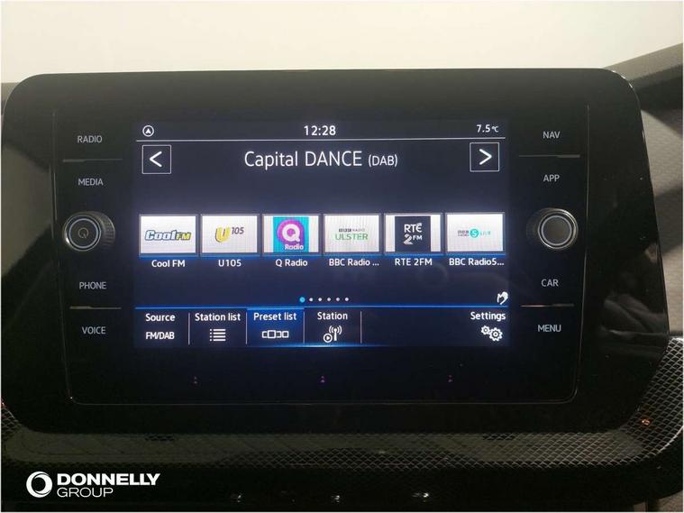 'Lights On' Reminder warning buzzer, 8" Digital cockpit, Advanced driver attention and drowsiness monitor, Bluetooth telephone and audio connection for compatible devices, Car information display, Dynamic road sign display, E-Sim card for online connectivity, eCall emergency call system, Front and rear parking sensors, Front assist, forward collision warning, autonomous emergency braking and speed limiter, Low washer fluid warning light, Multifunction computer with visual gear change recommendation for fuel consumption, Multifunction front facing camera for distance control, Operating permit alteration, Power assisted steering, Predictive adaptive cruise control, Preparation for navigation system with media and internet package, Preparation for We connect and We connect plus, Rear view camera, Semi-automated driving assistance, travel assist including lane keeping system Lane Assist and emergency assisst, Side assist, Speedo, rev counter, electronic odometer, trip, service interval display, exterior temperature and fuel gauge, Warning sound and light for doors and tailgate open, Warning sound and light for front seatbelts unfastened, Wireless Car net app connect with Apple CarPlay, combined functionality of Apple CarPlay/Android Auto and MirrorLink, Wireless charging, Misfuel prevention device, Start-stop system with battery regeneration (recuperation - energy recovery during braking), 2 USB C ports in front, 2 USB charging sockets on the centre console in the rear charging capacity upto 45W, DAB Digital radio receiver, Diversity antenna for FM reception, Multi device interface (MDI) with USB connection, Music playback - MP3, WMA and AAC files, Radio, Automatic dimming interior rear view mirror, Automatic hazard lights activation under emergency braking, Automatic headlight control with LED separate daytime running light and coming home and leaving home feature, Body colour door handles, Body colour door mirrors, Body coloured bumpers, Dynamic headlight range control with self adjusting whilst driving, Electric folding door mirror, adjustable, heated with front passenger exterior mirror lowering function, Exterior mirrors convex on the left and aspherical on the right, Front and rear electric windows, Galvanised body, Heat insulating and laminated safety glass windshield, Heat insulating darkened glass in side and rear windows, High Beam Assist, automatic sensing for switching between dipped and main beam, LED rear combination lights, LED third brake light, Lower door sills and door pillars in black, Rain sensor, Rear fog light on one side, reversing light on both sides, Rear side wing doors, Rear window aerial, Rear window wiper with intermittent control, Reflectors in all doors, Scuff plates, Tailgate with integrated roof spoiler, 12V Accessory socket in centre console, 3 rear head restraints, 3 seat bench in 2nd row, 60/40 split folding rear seat backrest, Ambient lighting and logo projection, Ceramique roof lining, Cloth upholstery, Door and side trim panel, Driver and front passenger sunvisor with vanity mirror, Dust and pollen filter, Front and rear reading lights X 2, Front centre armrest with storage compartment, Front seat back storage pockets, Glove compartment door with light, Heating and fresh air system with 4 stage blower, Height/reach adjust steering wheel, Instrument lighting white adjustable panel illumination, Interior light with switch off delay and dimmer, Isofix anchors for child seats on outer rear seats and front passenger seats, Leather gearshift handle, Leather wrapped multifunction steering wheel, Luggage compartment floor, Luggage compartment lighting, Manual front seats with height adjustment, Padded dashboard, Removable luggage compartment cover, Single front passenger seat, Storage compartment in drivers and front passengers door, Unsplit sliding rear seat bench, Without drawers under front seats, 3 point outer rear seat belts with ECE label, 3 Point seatbelt for centre rear seat, Anti-lock Braking System (ABS) with Hydraulic Brake Assist (HBA), Automatic post collision braking system, Disc brakes in front, Driver and front passenger safety-optimised head restraints, Drivers and Front Passengers airbags with front passengers airbag deactivation switch, Drum brakes in rear, ESC with EDL and ASR (traction control), Extended and predictive pedestrian/cyclist protection, Front and rear passenger curtain airbag system including front side airbags, Height adjustable front 3 point seatbelts + pretensioners, Hill start assist, Pre crash preventive occupant protection, Proactive passenger protection system in combination with front assist, Rear door child safety locks, Rigid safety cell with front and rear crumple zones, Single tone horn, Tyre pressure loss indicator, Volkswagen roadside assistance, Alarm with interior protection, Anti theft alarm system, Electronic engine immobiliser, Remote keyless entry using key fob including Start/Stop button on centre console with SAFELOCK, Remote tailgate unlocking using key fob, Low rolling resistance tyres,
