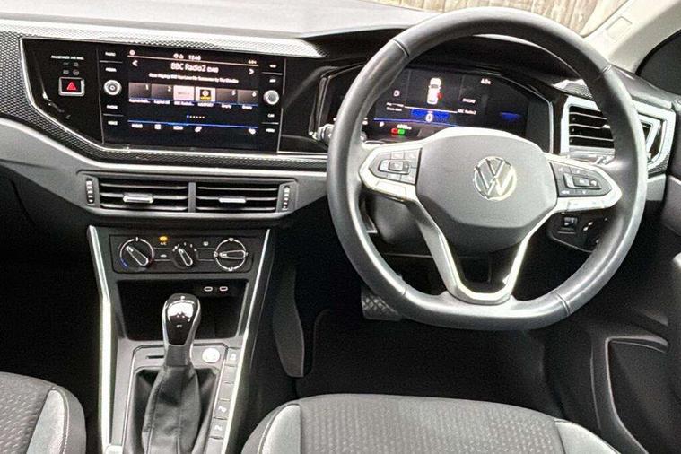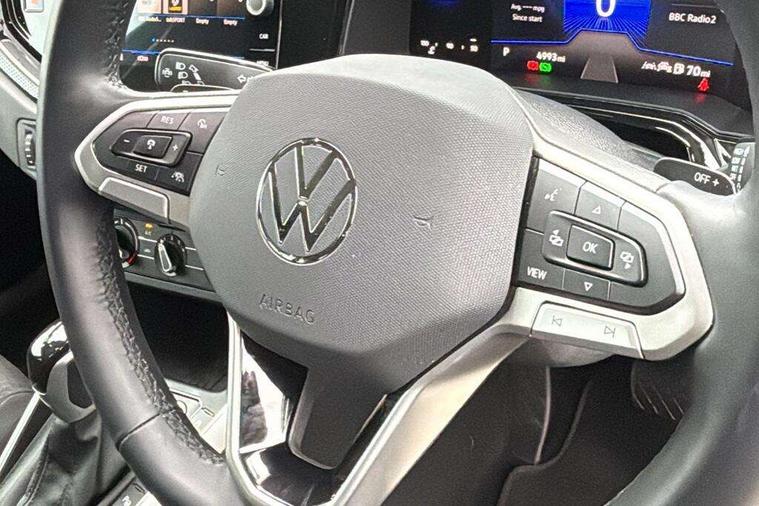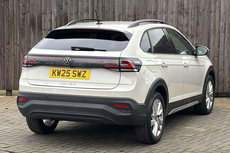 8" Digital cockpit basic display, Adaptive cruise control, Advanced driver attention and drowsiness monitor, Dynamic road sign display, e-Call (emergency call), Power Steering, Rear view camera, Travel assist including emergency assist, Washer fluid level indicator, Wireless Charging including Bluetooth, Start-stop system with battery regeneration (recuperation - energy recovery during braking), Digital radio reception (DAB+), WeConnect plus, Ambient lighting with logo projection, Aspherical driver's exterior mirror, Body coloured bumpers, Body coloured exterior mirror housings and door handles, Electric windows, External USB type C socket and charging sockets, Heat insulating glass windscreen, LED rear combination lamp, LED third brake light, Left convex exterior mirror, Power folding adjustable/heated exterior mirrors and front passenger exterior mirror lowering function, Rear fog light on one side, reversing light on both sides, Rear side wing doors, Rear wash/wipe with intermittent wipe setting, Side windows in heat-insulating glass, from B-pillar and rear window dark tinted, 'Slash/ Austin' Cloth upholstery, 12V socket in centre console, 2 front reading lights, 3 rear head restraints, 3 seat bench in 2nd row, Black carpets, Ceramique headliner, Child seat anchor for child seat system i-Size, 2x top tether and child seat anchor in front on front passenger side, Door and side trim panels in titan black, Driver and front passenger seat height adjustment, Front centre armrest, Handbrake lever handle in leather, Height and reach adjustable steering wheel, Leather trimmed gear knob, Leather wrapped multifunction steering wheel with paddle shift, Luggage compartment floor, Luggage compartment light, Lumbar support for driver's and front passengers seat, Seat covers in titanium black, Single front passenger seat, Split folding backrest with centre armrest and unsplit rear seat bench, Storage compartment under front seats, Sun visors with illuminated vanity mirrors, Titanium black instrument panel, Chrome Package - Taigo, Drivers assistance package - Taigo, Light and sight pack - Taigo, 2 x 3-point seatbelts/outer rear seats with ECE label, 3-point seat belts in front with pretensioner and height adjustment, 3-point seatbelt for centre rear seat, Driver and front passenger airbag with front passenger airbag deactivation, Driver and front passenger safety-optimised head restraints, Electronic stability control, Extended and predictive pedestrian/ cyclist protection, Front and rear disc brakes, Front curtain and side airbags with center airbag, Hill start assist, Manual rear child locks, Single tone horn, Tyre pressure loss indicator, Anti-theft alarm system with interior monitoring, backup horn, and towing protection, Keyless locking and starting system keyless access with safelock, Black (slush) Dashboard, Lava stone black gloss/matt decorative inserts in dash and front door panels, Low rolling resistance tyres,