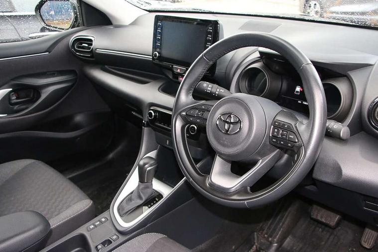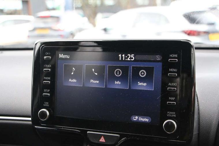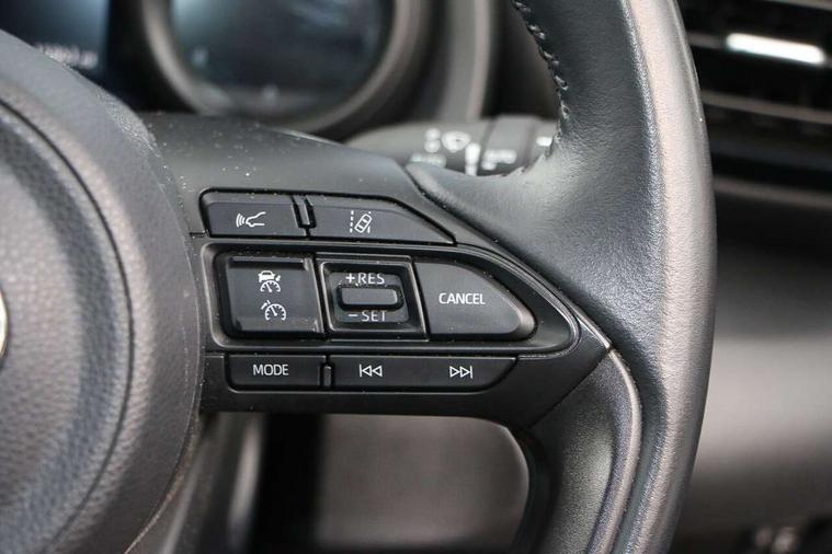 Adaptive cruise control, Adjustable speed limit with speed warning, Bluetooth connectivity, Colour binocular inspired displays with digital speedometer, E-call, Electric power steering, Hybrid energy display, Multi information display switches on steering wheel, Reversing camera, Smartphone integration with Apple CarPlay and Android auto, Tailgate, Voice recognition, Vehicle Stability Control (VSC), 4 speakers, 8" Multimedia display touch screen, USB connection, Acoustic windscreen glass, Auto windscreen wipers, Automatic headlights, Body coloured door mirrors, Electric adjustable heated door mirrors, Follow me home headlights, Front auto power windows with anti jam protection, Full LED rear lights, LED daytime running lights, LED front fog lights, LED front light guide, LED Headlights, LED High mounted stop lamp, LED Indicators, LED rear light guide, Manual headlight levelling, Painted chequered front grille, Rain sensor, Rear auto power windows with anti jam protection, Rear privacy glass, Rear side wing doors, Rear spoiler, Rear wiper, Shark fin antenna, Turning signal integrated indicators in door mirrors, Variable front intermittent wipers, 3 adjustable rear headrests, 3 spoke leather steering wheel, 60/40 split folding rear seat, Active headrests, Adjustable boot height, Auto air conditioning, Coat hooks in rear grab handles, Cup holders (2 front & door), Data Communication Module (DCM) connected services, Fabric upholstery, Front armrest, Glovebox, Grey roof lining, Height adjustable driver's seat, Isofix seat fixing, Leather gearshift, Pollen filter, Shopping bag hooks, Single front passenger seat, Tilt/telescopic steering column, 3 point seatbelts on all rear seats, ABS+EBD+Brake assist, Electronic parking brake, Emergency brake light system (EBS), Front passenger airbag on/off switch, Front seatbelt reminder, Hill start assist control (HAC), Rear child proof door locks, Rear seat belt reminder, Supplemental Restraint System (SRS) 8 airbags: Driver & passenger's airbags, dual side curtain airbags, side impact airbags, front centre airbag, Toyota Safety Sense 2, Precollison + Night time Pedestrian & Cyclist Detection, Lane Trace Assist, Auto High Beam, Intelligent ACC & Road Sign Assist, Tyre pressure warning system, 2x Master key, Alarm/immobiliser, Remote powered central double locking doors, Soft touch instrument panel, Space saver spare wheel,