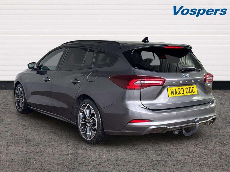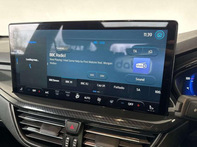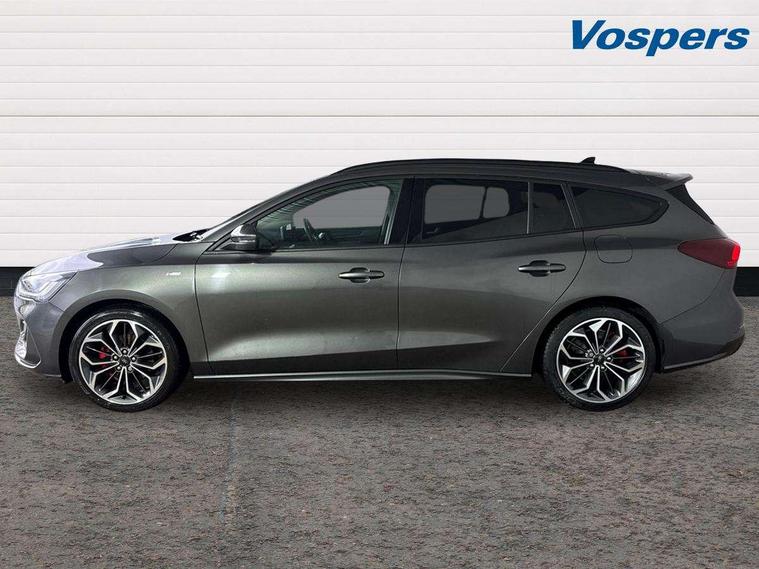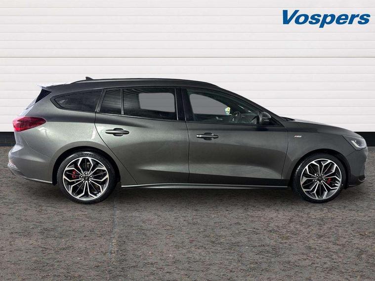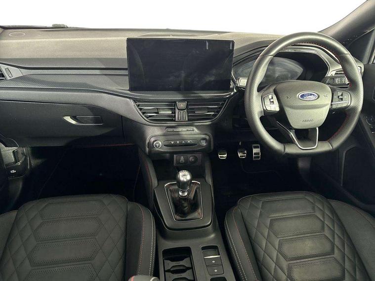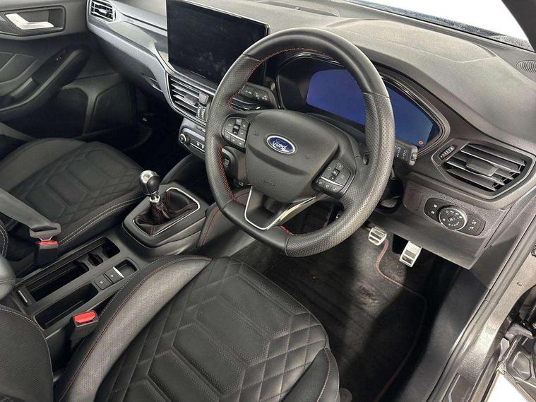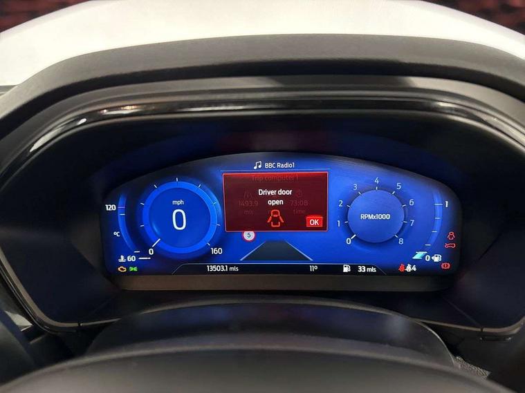 12.3" Digital instrument cluster, Bluetooth system, Digital clock, E-call, Easy fuel capless refuelling system, Eco mode, Ford SYNC 3 navigation with 8" TFT touchscreen, DAB radio and app link Android auto/Apple carplay, Intelligent speed assist, Lane keeping system - lane keeping alert and lane keeping aid, PAS, Selectable drive mode, Trip computer, Sports tuned suspension, 2 USB ports, Aux input, Auto dimming rear view mirror, Auto headlamps (on/off), Automatic rain sensing wipers, Body colour large rear spoiler, Body coloured bumpers, Body coloured door handles, Body coloured electrically operated and heated door mirrors with side indicators, Electrically operated front and rear windows with one touch opening and closing, Front variable intermittent wipers with electric wash, Heated rear window, LED daytime running lamp, Polished twin tailpipe, Power folding door mirrors with puddle lights, Quickclear heated windscreen, Rear privacy glass, Rear side wing doors, Roof rails, ST-Line upper and lower grille with full body styling kit and wing badges, Tailgate wash/wipe, Third brake light, Unique door and instrument panel inserts, 2nd Load floor, 3 seat bench in 2nd row, 3 spoke flat bottomed Sensico steering wheel with red stitching, 6 way power adjustable driver seat, Aluminium gear knob, Auto fold rear seats, Dark headliner, Driver's lumbar support, Dual zone electronic air temperature control, Front and rear floor mats with red stitching, Heated driver and front passenger seats, Heating for Sensico steering wheel, Height adjustable front headrests, Isofix child seat preparation, Reach + rake adjustable steering column, Rear centre headrest, Sensico premium upholstery, Single front passenger seat, Soft console knee pads with red stitching, 3x3 point rear seatbelts, ABS+Electronic Brake force Distribution, Auto hold function, Driver airbag, Electronic parking brake, Electronic stability control, Front and rear seatbelt reminder, Front inertia reel height adjustable seatbelts with pre-tensioners, Front passenger airbag, Front side airbags, Hill start assist, Passenger airbag deactivate switch, Post collision braking, Pre collision assist with autonomous emergency braking and pedestrian/cyclist detection, Remote/power child rear door locks, Side curtain airbags, Three rear inertia reel lap/diagonal seatbelts, Tyre pressure monitoring system, Ford keyfree system with Keyless entry and keyless start/sleep mode key fob, MyKey system, Remote central locking & engine immobiliser, Thatcham category 1 alarm, 18" 5x2 spoke gloss black machined finish alloy wheels, Mini steel spare wheel,