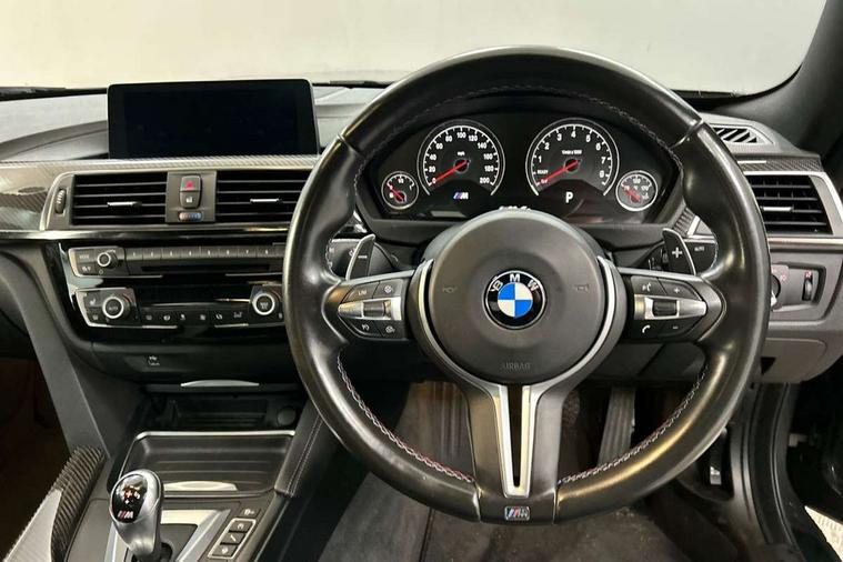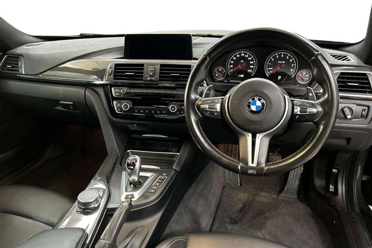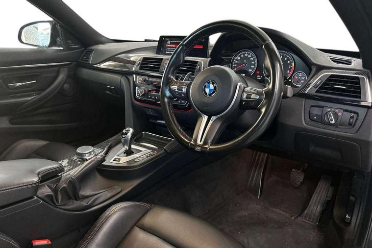 Brake pad wear indicator warning light, Cruise control with brake assist, Door/boot open warning, Electric Power Steering (EPS) with Servotronic, Enhanced bluetooth with wireless charging, Lights on warning, Oil temperature gauge, On board computer, Outside temperature display, Service interval indicator, Stop/start button, Adaptive M Sport suspension, Drive Performance Control, M differential lock, Sport exhaust system, Auxiliary point for auxiliary devices, Bluetooth audio streaming, BMW professional radio/CD/MP3, DAB Digital radio, Wi-Fi hot spot, 2 speed adjustable intermittent wipers with wash/wipe function, Auto dimming rear view mirror, Body colour door handles, Daytime running lights, Door sill finishers, Dynamic brake lights, Electric adjustable heated door mirrors, Electric front windows/one touch facility, Exhaust tailpipes in high gloss black, Exterior mirrors - electrically folding with anti-dazzle, Follow me home headlights, Heat insulating tinted glass, Heated windscreen washer jets, High gloss black kidney grille, High gloss black M side strakes, Individual high gloss shadow line, LED tail lights, M aerodynamic bodystyling, Rain sensor including auto headlights activation, 12V sockets in front centre console and passenger footwell, 3 spoke leather M sport multifunction sports steering wheel, 4 grab handles, Anthracite headlining, Anthracite Velour floor mats, Driver + passenger electric lumbar support, Driver/passenger sunvisors with illuminated vanity mirrors + covers, Dual zone climate control, Electrically adjustable front seats - driver seat with memory, Folding front centre armrest + storage, Front centre armrest with storage compartment, Front cupholders x 2, Front head restraints, Front sliding armrest, Full black panel display, Glovebox with lid, Heated front seats, Integrated rear head restraints, ISOFIX child seat preparation+airbag deactivation, Lashing eyelets in boot, Leather gearknob, Leather handbrake grip, M Sports seats, Reach + rake adjustable steering column, Storage compartment in rear centre console, Toolkit located in luggage compartment, Extended lights package - M Series, Media pack - Professional - M4, 3 point seatbelts on all seats, ABS/EBD, Automatic Stability Control (ASC), Cornering brake control (CBC), Crash Sensor - activates hazard/interior lighting + unlocks doors, Driver seatbelt warning indicator, Driver/Front Passenger airbags, DSC+, Dynamic brake control, Dynamic Traction Control - DTC, Front seatbelt force limiters, Front seatbelt pretensioner, Front side airbags, Hill start assist, ITS head airbags for front/rear, M sport seatbelt, Tyre pressure monitor, Warning triangle and first aid kit, Drive away door locking, Electronic immobiliser, Keyless start, Remote central locking, Remote control Thatcham category 1 alarm, M mobility system (flat-tyre repair system),
