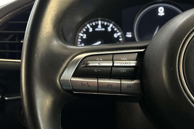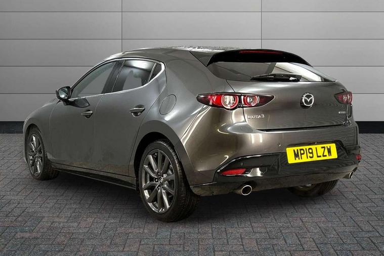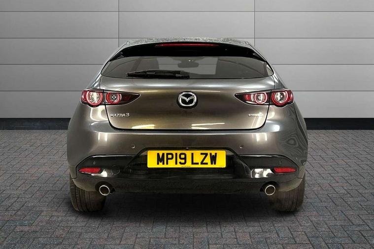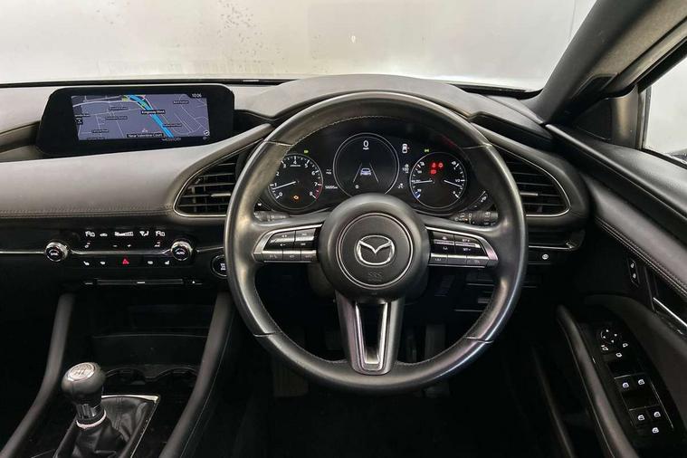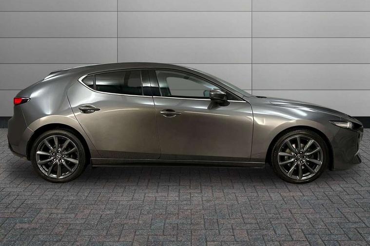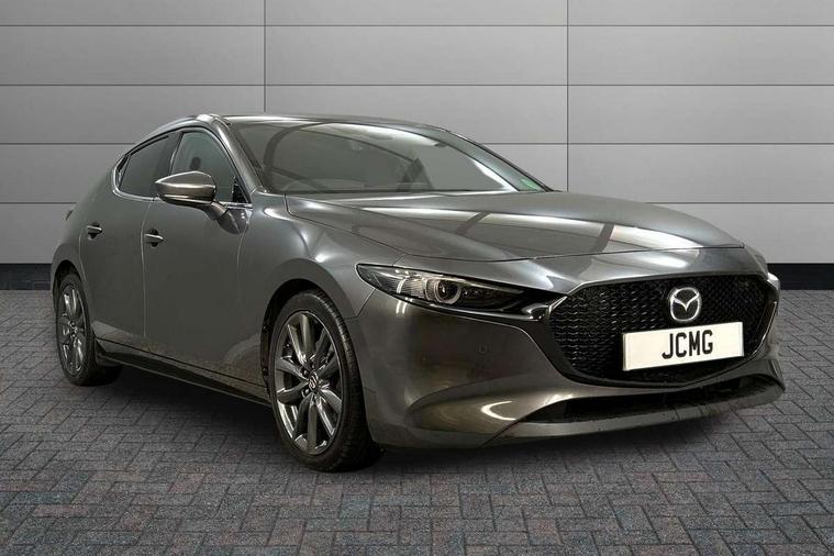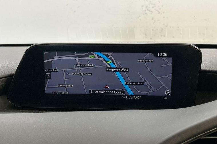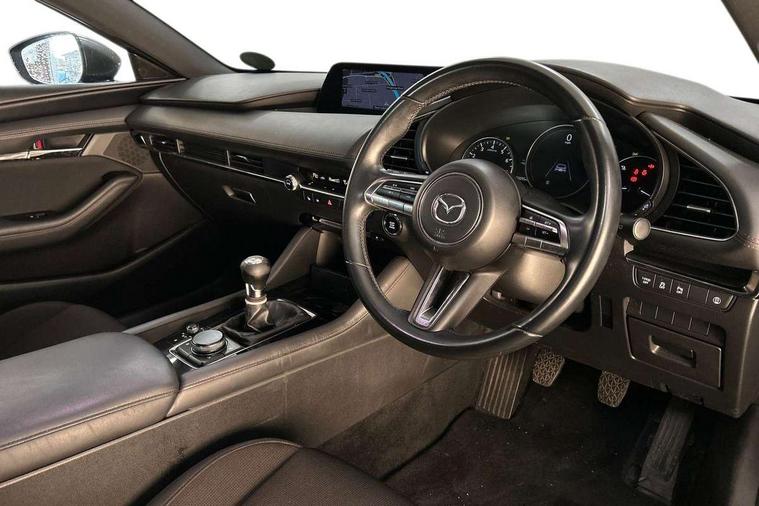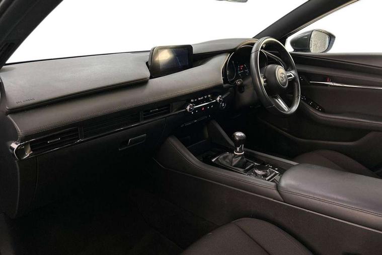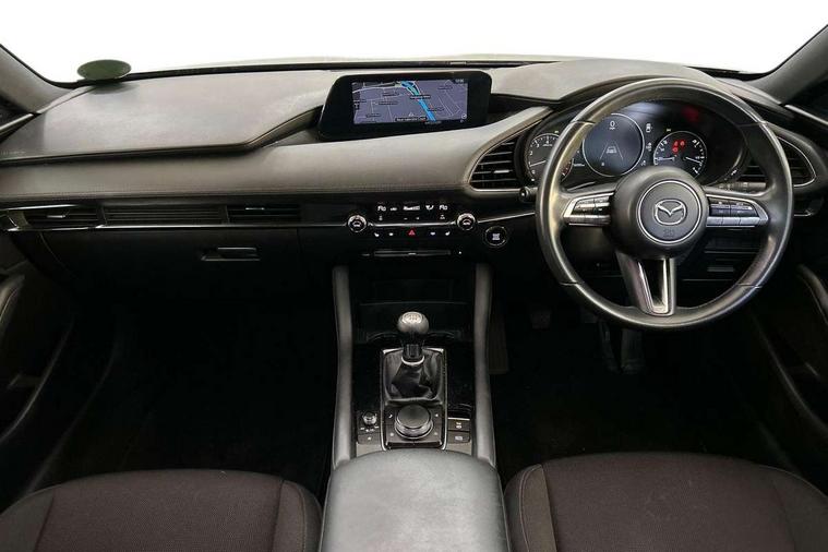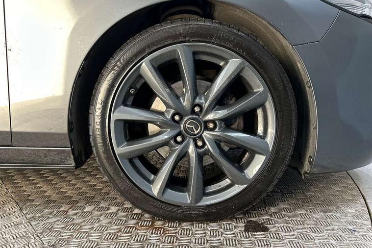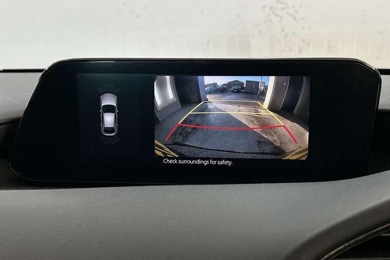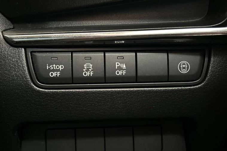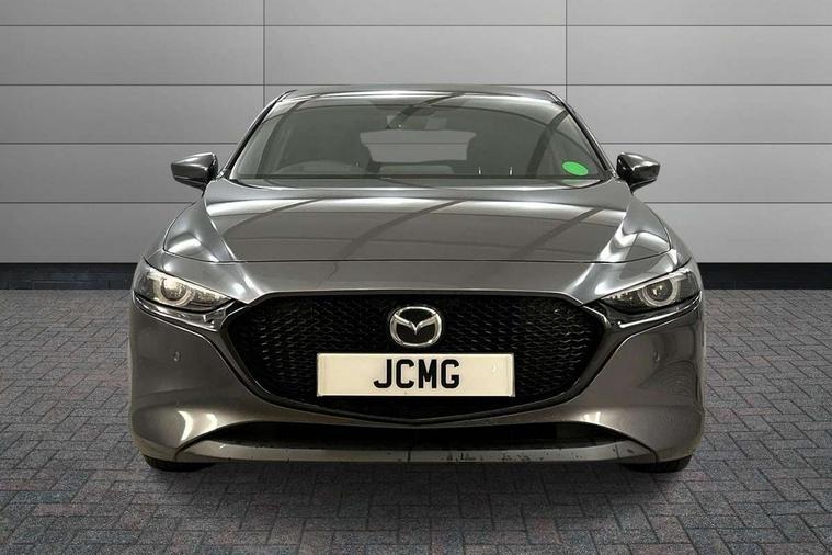 7" colour TFT display, Apple car play/Android Auto, Audio transfer from bluetooth devices, Blind spot monitoring with rear cross traffic alert, Colour active driving display inc Windscreen projected, Traffic Sign Recognition, turn-by- turn navigation and Mazda Radar Cruise Control information, Digital instrument cluster, Driver attention alert system, E-call, Emergency stop signalling system, Engine start/stop button, Front and rear parking sensors, Integrated bluetooth with steering wheel mounted controls, Intelligent speed assist, Lane departure warning with lane change assist, Mazda Navigation System with european mapping, Mazda Radar Cruise Control, Mobile App interface, Multimedia Commander, PAS, Reverse parking aid, Reversing camera, Service indicator, Trip computer, Cylinder Deactivation, i-stop, Auxiliary input socket, Mazda Multimedia System with AM / FM / DAB radio, single CD / MP3 with 8 speakers, Steering wheel mounted audio controls, Adaptive front lighting system, Auto dimming door mirrors, Coming/leaving home lighting function, Dark metallic finish signature wing, Daytime running lights, Dusk sensitive headlamps, Electric front/rear windows with one touch/auto up/down, Electrically adjustable/heated/auto power folding door mirrors with integrated indicators, Frameless auto dimming interior rear view mirror, Front body coloured bumper with black lower bezel, Gloss black grille with gloss black surround, Gloss black rear roof spoiler, High beam assist, LED headlamps with auto levelling, LED indicator lights, LED third brake light, Piano black window garnish, Privacy glass with dark tinting on rear side windows and rear window, Rain sensing front wipers, Rear fog lights, Rear gloss black lower moulding, Signature LED lights, Signature LED rear combination lights with LED rear turn lights, Speed adjustable rear wash wiper with intermittent wipe, 60/40 split folding rear seat, Chrome start button, Chrome-plated glovebox handle, Cloth upholstery, Driver, Front passenger and two rear grab handles with coathooks, Driver/passenger sunvisors + vanity mirrors (drivers side with ticket holder), Drivers seat manual slide recline and height adjustment, Dual climate control air conditioning system, Electrical power outlet, Folding rear centre armrest with 2 cupholders, Front and rear courtesy lights with delay, Front armrest, Front centre console with storage box with tray, lid + 2 cupholders, Front door pockets, Front head restraints, Front passengers seat manual slide, recline and height adjustment, Gear shift indicator, Illuminated glovebox, Isofix child seat mounting points on outer rear seats, Leather wrapped gear shift knob, Leather wrapped steering wheel, LED interior light, Luggage compartment lighting, Reach adjustable steering wheel, Roof mounted sunglasses holder, Steering wheel chrome centre bezel, Three height adjustable rear head restraints, Tilt/height adjustable steering wheel, USB charging point, 3 point ELR front seatbelts with pretensioners, 3 rear 3 point seatbelts with ELR, Anti-lock braking system (ABS), Collision mitigation braking system, Drivers knee airbag, DSC - Dynamic Stability Control, Dual front airbags, EBD - Electronic brakeforce distribution, Electronic parking brake with auto disengage function and auto hold function, ESP, Front and rear curtain airbags, Front passenger airbag cut-off switch, Front side airbags, Front smart city brake support, G-Vectoring control plus, Hill launch assist, Intelligent Traction Control system, Mild Hybrid system with regenerative braking, Seatbelt reminder front and rear, Tyre pressure monitoring system (TPMS), Auto door lock when driving, Remote central locking + deadlocks, Smart Keyless entry and start, Thatcham accredited alarm and immobiliser, 18" Grey metallic alloy wheels, Emergency tyre repair kit,
