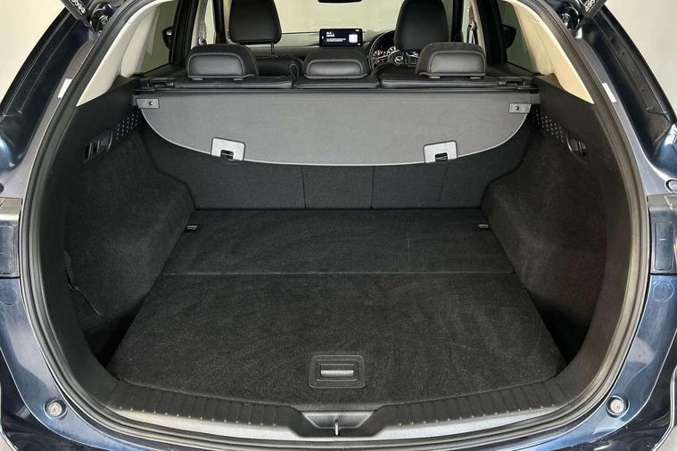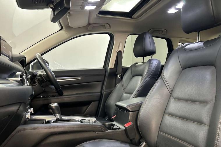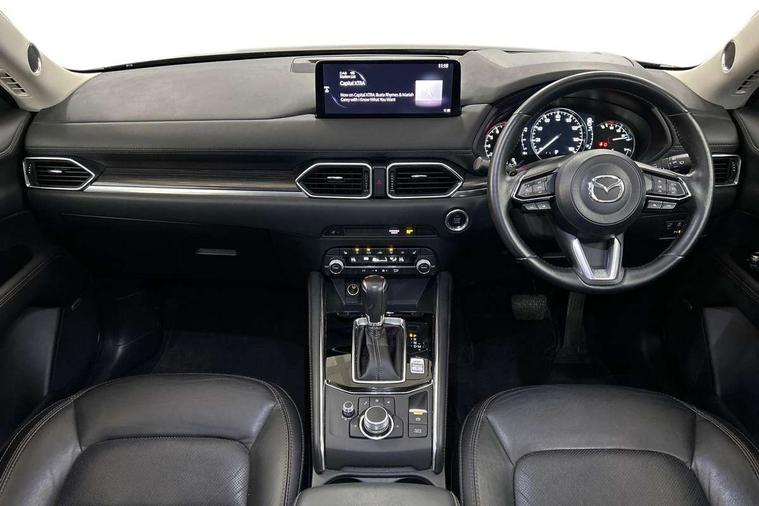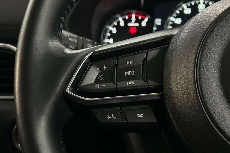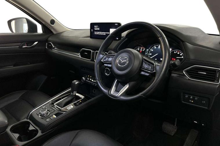 10.25" display with Mazda Connect infotainment, 7" colour TFT display, Apple car play/Android Auto, Blind spot monitoring with rear cross traffic alert, Bluetooth connectivity with voice control, Collision prevention assist, Connected services, Cruising Traffic Support, Drive mode selector, Electric power steering, Emergency stop signalling system, Engine start/stop button, Forward collision warning, Front and rear parking sensors, Integrated navigation system, Intelligent speed assist, Lane departure warning system, Lane keep assist, Power liftgate, Qi wireless phone charging, Radar cruise control with Stop and Go, Reversing camera, Service indicator, Trip computer, Windscreen projected colour active driving display (HUD) with memory, i-stop, 2 USB sockets in rear, 2x USB sockets in front, AM/FM radio, Bluetooth audio streaming, Bose premium sound system with 10 speakers, DAB Digital radio, Multimedia Commander including separate volume dial, Steering wheel mounted audio controls, Adaptive front lighting system, Auto dimming rear view mirror, Automatic headlights, Black inlay dashboard panel, Body colour door mirrors, Body colour roof spoiler, Body coloured front and rear black lower bumper mouldings, Bright finish signature wing, Coming/leaving home lighting function, Door mirror integrated indicators, Dual chrome tailpipes, Dusk sensitive headlamps, Electric front/rear windows with one touch auto up/down, Front grille in gloss black finish, Gloss black B and C pillars garnish, High beam assist, Intermittent rear wash/wipe, LED auto levelling, LED daytime running lights, LED front fog lights, LED Headlights, LED third brake light, Power folding and heated door mirrors, Power tilt/slide sunroof, Privacy glass (rear side windows only), Rain sensing front wipers, Rear side wing doors, Satin black side mouldings, Scuff plates, Shark fin antenna, Signature LED rear combination lights, Vinyl with wood grain metal inlay door trim panel, Windscreen wiper de-icer, 12v electrical power outlet, 3 seat bench in 2nd row, 3 stage heated front seats, 40:20:40 Karakuri fold-flat seat system, 6 way electric adjustable passenger seat, 8 way electric driver seat with lumbar support + memory, Cargo room flat floor board with waterproof undertray, Driver seat power slide, recline and height adjustment, Driver, Front passenger and two rear grab handles with coat hooks, Driver/passenger front seatback pockets, Driver/passenger sunvisors + illuminated vanity mirrors (drivers with ticket holder), Dual zone climate control, Folding centre armrest with 2 cup holders, Front and rear door pockets, Front centre storage with two cupholders, Front passenger seat power slide, recline and height adjustment, Heated steering wheel, Humidity sensor, Illuminated glovebox, Interior dome light with integral spotlight, ISOFIX child seat anchorage points attached on outer rear seats, Karakuri tonneau cover, Leather upholstery, Leather wrapped steering wheel and gear knob, Light roof lining, Luggage compartment LED lighting, Luggage compartment power outlet, Paddle shifts, Rear air vents, Rear headrests, Rear seat recline, Roof mounted sunglasses holder, Single front passenger seat, Three height adjustable head restraints, Tilt/height adjustable steering wheel, White interior LED illumination lighting, 3 point front seatbelts with pre-tensioners, 3 rear 3 point seatbelts, ABS, Advanced Smart City Brake Support - SCBS, Child locks on rear doors, Driver and front passenger side airbags, DSTC-Dynamic Stability and Traction Control, Dual front airbags, Electronic brake force distribution, Electronic parking brake with auto hold, ESP, Front and rear curtain airbags, Front passenger airbag deactivation, G-Vectoring control, Hill hold assist, Seatbelt reminder front and rear, Single stage passenger airbags, Smart brake support with forward obstruction warning, Tyre pressure monitoring system, Automatic door locking when moving off, Deadlock, Immobiliser, Power door locks, Remote central locking, Smart keyless entry, Thatcham Cat.1 alarm, 19" diamond cut black alloy wheels, Tyre repair kit,
