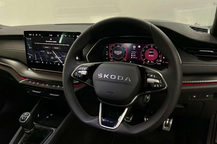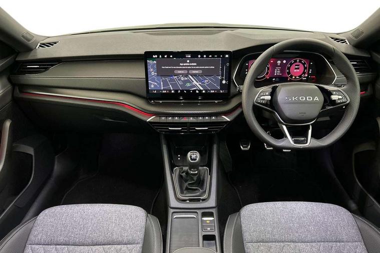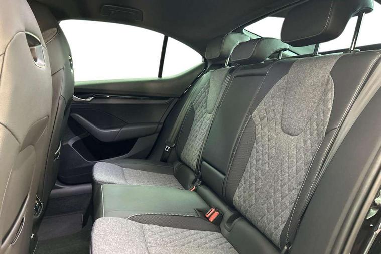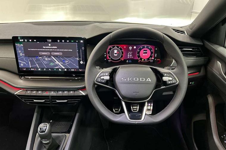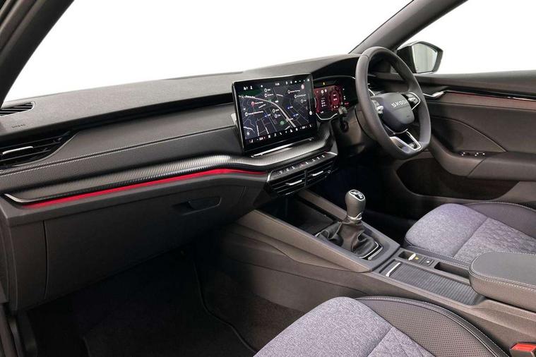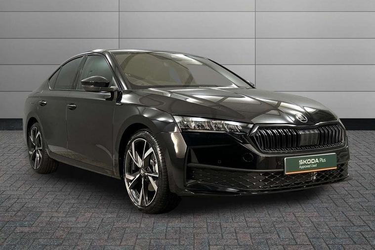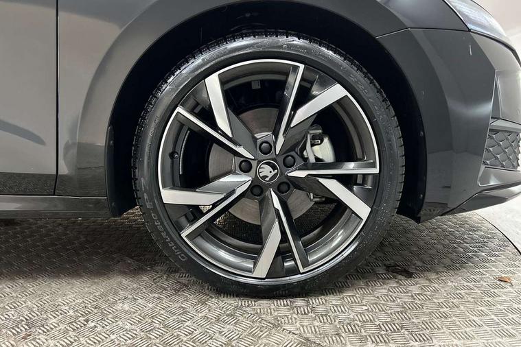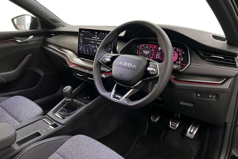 1x USB Typc C port in rear view mirror, 4x USB Type C ports - 2x in front centre console and 2x in rear (45W), Drive mode selection, Driver fatigue sensor, eCall emergency system, Front and rear parking sensors with manoeuvre assist, Front assist system, Progressive dynamic steering, Traffic sign recognition, Turn Assist, Virtual Cockpit - 10.25" digital display, Voice control system, Wireless charging (15W) with cooling function, Wireless SmartLink for Apple CarPlay and Android Auto, Sports suspension with 15mm lower, 13" touchscreen display with navigation, DAB Digital radio, Aero front windscreen wipers with intermittent function, Auto dimming rear view mirror, Body colour bumpers, Body colour door handles, Chrome strip in lower front bumper, Electric front and rear windows, Exterior gloss black sports styling including front grille, window surrounds, door mirrors and badging, Gloss black diffuser, Gloss black spoiler, Heated rear windscreen, High beam control, High level third brake light, Ice scraper in fuel cap, LED daytime running lights, Logo projection in front doors, Rain and light sensors, Rear fog light on one side and reversing lights on both sides, Rear privacy glass, Rear side wing doors, Rear wiper, 12 volt socket in boot, 3 rear headrests, 3 seat bench in 2nd row, 4 foldable roof handles, Aluminium pedals, Boot net programme, Front head restraints, Front sport seats, Heated front seats, Illuminated glovebox, Interior door handles in dark chrome, Jumbo Box storage, Luggage compartment lighting x2 lights, Mechanical rear seat release from boot, Parcel shelf - folding, Single front passenger seat, Steering wheel in black leather with black stitching, Storage compartment under passenger seat, Storage compartments in left and right of boot, Sun visors with mirrors, Sunglasses storage, Three spoke leather sports multifunction steering wheel, Ticket holder, Umbrella in door panel, Unsplit rear bench seat, split folding backrest with centre armrest with cupholder, SportLine Design Selection pack - Octavia, 3x3 point rear seat belts, Alarm with interior monitoring, tilt sensor and back up horn, Curtain airbags and front side airbags, Driver and front passenger airbags, Drivers knee airbag, Electronic parking brake, ESC including ABS, EBV, MSR, ASR, EDS, HBA, DSR, Front central airbag, Hill hold assist, ISOFIX on front passenger seat and outer rear seats, Passenger airbag deactivate switch, Three point seat belts in front and rear, Two tone horn, Tyre pressure monitor, Visual and acoustic seat belt reminder, Warning reflectors in front door, Anti-theft wheel bolts, Keyless entry and start/stop, Remote central locking, Gloss black air vent surrounds,