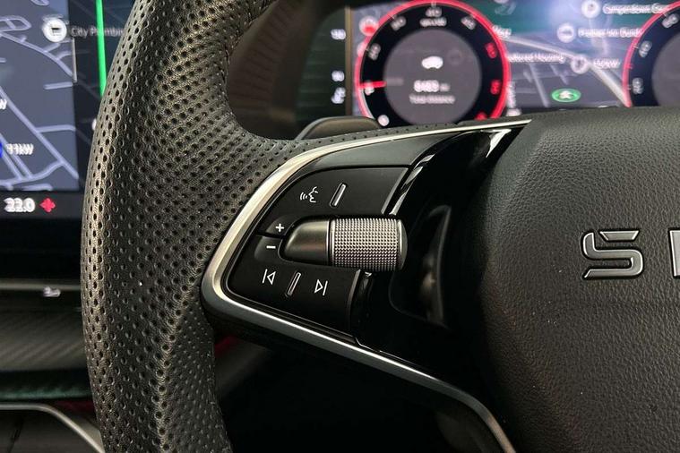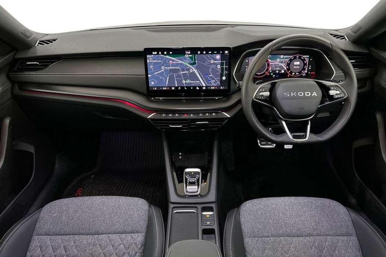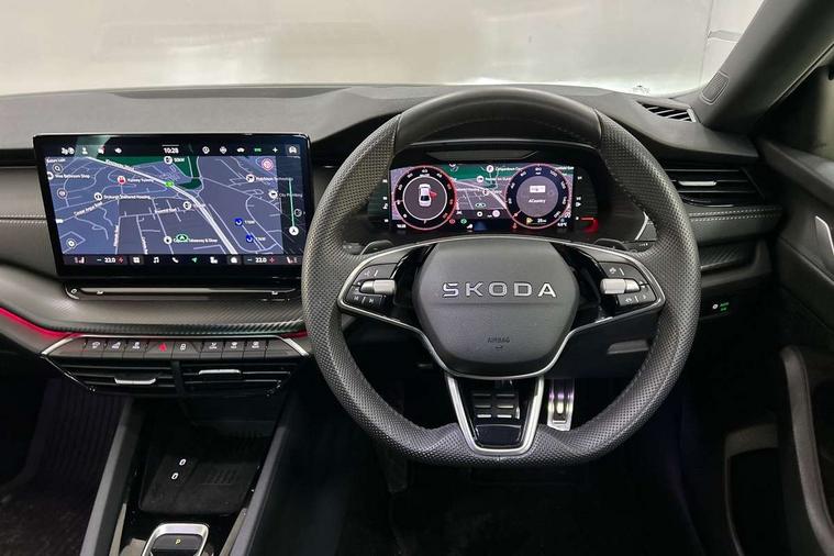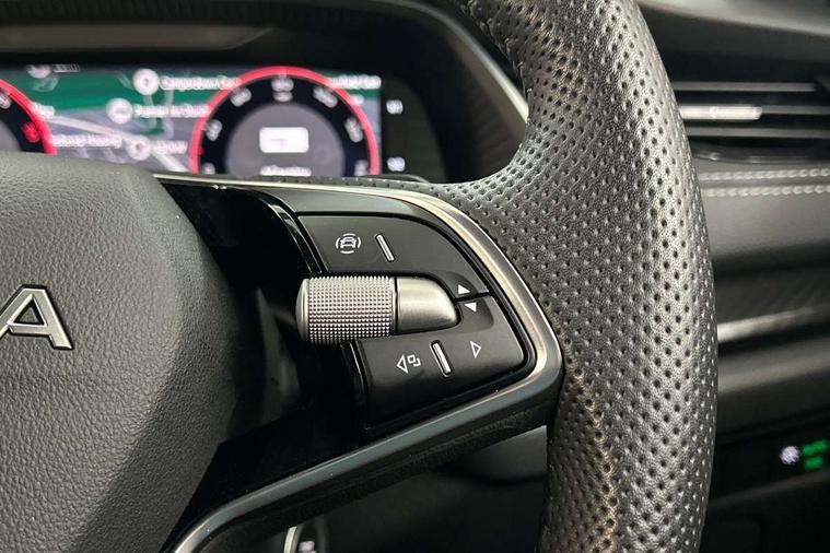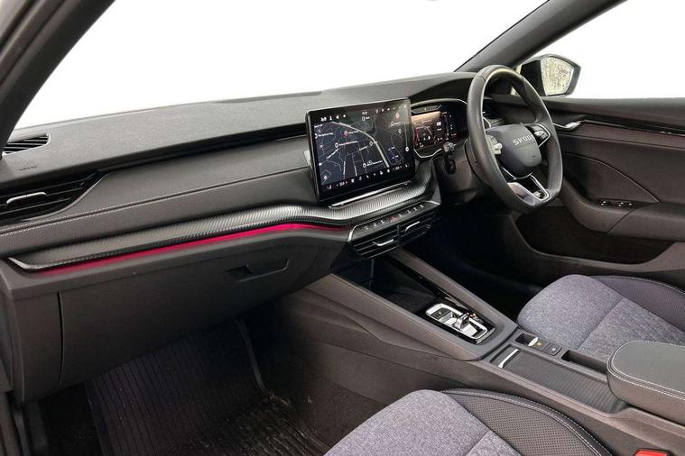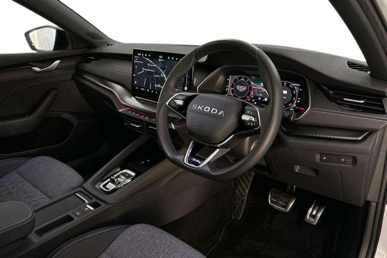 1x USB Typc C port in rear view mirror, 4x USB Type C ports - 2x in front centre console and 2x in rear (45W), Drive mode selection, Driver fatigue sensor, eCall emergency system, Front assist system, Progressive dynamic steering, Traffic sign recognition, Turn Assist, Virtual Cockpit - 10.25" digital display, Voice control system, Wireless charging (15W) with cooling function, Wireless SmartLink for Apple CarPlay and Android Auto, Sports suspension with 15mm lower, 13" touchscreen display with navigation, DAB Digital radio, Aero front windscreen wipers with intermittent function, Auto dimming rear view mirror, Body colour bumpers, Body colour door handles, Chrome strip in lower front bumper, Electric front and rear windows, Exterior gloss black sports styling including front grille, window surrounds, door mirrors and badging, Gloss black diffuser, Gloss black spoiler, Heated rear windscreen, High beam control, High level third brake light, Ice scraper in fuel cap, LED daytime running lights, Logo projection in front doors, Rain and light sensors, Rear fog light on one side and reversing lights on both sides, Rear privacy glass, Rear side wing doors, Rear wiper, 12 volt socket in boot, 3 rear headrests, 3 seat bench in 2nd row, 4 foldable roof handles, Aluminium pedals, Boot net programme, Electric auxiliary air heater, Front head restraints, Front sport seats, Heated front seats, Illuminated glovebox, Interior door handles in dark chrome, Jumbo Box storage, Luggage compartment lighting x2 lights, Mechanical rear seat release from boot, Parcel shelf - folding, Single front passenger seat, Steering wheel in black leather with black stitching, Storage compartment under passenger seat, Storage compartments in left and right of boot, Sun visors with mirrors, Sunglasses storage, Three spoke leather sports multifunction steering wheel with paddles, Ticket holder, Umbrella in door panel, Unsplit rear bench seat, split folding backrest with centre armrest with cupholder, SportLine Design Selection pack - Octavia, 3x3 point rear seat belts, Alarm with interior monitoring, tilt sensor and back up horn, Curtain airbags and front side airbags, Driver and front passenger airbags, Drivers knee airbag, Electronic parking brake, ESC including ABS, EBV, MSR, ASR, EDS, HBA, DSR, Front central airbag, Hill hold assist, ISOFIX on front passenger seat and outer rear seats, Passenger airbag deactivate switch, Three point seat belts in front and rear, Two tone horn, Tyre pressure monitor, Visual and acoustic seat belt reminder, Warning reflectors in front door, Anti-theft wheel bolts, Keyless entry and start/stop, Remote central locking, Gloss black air vent surrounds,