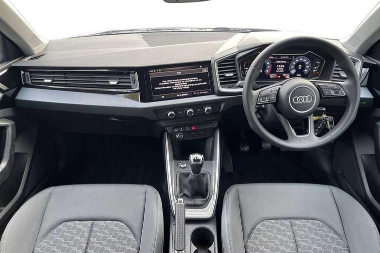 10.25" Digital instrument cluster display classis style instrument dials + speed, odometer, time, outside temperature, telephone menu + fuel level warning, Audi drive select - power steering assistance + engine, Audi smartphone interface with connect compatible smartphone via USB directly MMI display + Nav, music, third party apps controlled via MMI controller, Automatic start/stop system, Bluetooth interface, Cruise control, Driver's information system, Electromechanical power steering, Emergency e-call, Lane departure warning system, Rear parking sensor, Service interval indicator, Speed limiter, Voice control system, Washer fluid level indicator, Dynamic suspension, 2 x USB type C connection points, 6 passive loudspeakers, DAB Digital radio, MMI radio plus with 10.1" colour MMI display screen and MMI touch, Auto dimming rear view mirror, Body coloured bumpers, Body coloured door mirrors, Electric front and rear windows, Electrically adjustable, heated, folding door mirrors with integrated LED side indicator, Front side air inlets in grained matt black and C frame in anthracite black, Heat insulating glass windscreen and side windows, Heated rear windscreen, High level LED brake light, LED headlights with LED rear lights + dynamic rear indicators + headlight adjustment and high beam, turning light + LED daytime running lights, Radiator grille and rear diffuser in matt anthracite black, Radiator protective grille frame in matt aluminium silver, Rain and light sensors, Rear fog lights, Rear side wing doors, Rear wiper, Side front spoiler lips in grained matt black, 12V socket in centre console with two cup holders, 3 rear seats with headrests, 3 seat bench in 2nd row, 3 spoke leather multifunction plus steering wheel, 40:60 Split folding rear seat or folded fully, Black front and rear floor mats, Door sill trims with aluminium inlay, Driver and passenger seat with manual height adjust with forward and backwards adjustment, Front head restraints, Front passenger seat, Grey cloth headlining, Height and reach adjustable steering wheel, ISOFIX child seat mounting for front passenger and outer rear seats including top tether attachment point of outer rear seats, Leather gear knob with aluminium trim, Leatherette handbrake grip, Luggage compartment light with front and rear reading lights, Manual air conditioning, Manually adjustable lumbar support in front seats, Novum cloth upholstery with front sport seats, Luggage compartment pack - A1, 3x3 point rear seatbelts, Audi pre-sense front with pedestrain and cyclist recognition, Brake assist function, Driver and front passenger airbag with front side and head airbags, Electronic Stability Control including ABS, EBD, ASR and EDL, Front passenger airbag deactivation switch, Hill hold assist, Manual rear child locks, Seatbelt height adjustment for front seats, Seatbelt monitoring, Tyre pressure warning light, Warning triangle and first aid kit, Anti theft alarm, Anti theft wheel bolts and loose wheel warning, Immobiliser, Remote central locking with 2 foldaway keys, Aluminium trim for control switches, air vents and digital instrument cluster, Black dashboard, Silver grey accent areas including air vents, door handle recesses and centre console in diamond paint finish, Slate grey inlays polygon structure in fine paint finish,