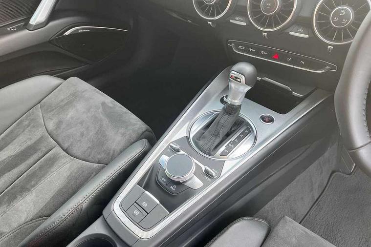 Audi drive select with 4 Pre configured modes, Audi smartphone interface, Audi virtual cockpit - 12.3" high-resolution LCD display with fully customisable instrument cluster, Cruise control + speed limiter, Emergency call service, MMI touch panel, Mobile phone preparation with bluetooth interface, Progressive power assisted steering, Service interval indicator, Start/Stop system with energy recuperation, TP memo, Sports suspension, AM/FM radio, Bluetooth audio streaming, DAB Digital radio, MMI Radio with CD player and SD/XC card slot, Auto dimming rear view mirror, Body colour bumpers, Body colour door mirrors, Electric folding door mirrors, Electric front windows, Electrically adjustable and heated door mirrors with integrated LED side indicators, Front fog lights, Green tinted heat insulating glass, LED 3rd brake light, Light and rain sensors, Rear boot, Retractable rear boot spoiler, Sunband for windscreen, Xenon headlights with LED daytime running lights with automatic headline range control + LED rear lights, brake lights and rear indicators, 12V socket, 2 rear seats, 3 spoke flat bottomed high multi-function leather sport steering wheel with gearshift paddles, Alcantara/Leather upholstery includes seat centre panels, door trim inserts in black Alcantara with side bolsters, head restraints in black leather, Aluminium door sill trims, Front centre armrest, Front passenger seat, Front sports seats, Heated front seats, Height/reach adjust steering wheel, Integrated head restraints, ISOFIX child seat mounting for front passenger seat with airbag deactivation, Manual adjustment of seat height, fore/aft position, seat angle, seat depth and backrest angle, Rear head restraints, Rear top tether child seat ISOFIX attachment, Split folding rear seat, Non smoking pack - TT/TT RS, 3 point front seat belts, ABS, ASR traction control, Curtain airbags, Driver and front passenger airbag with front passenger airbag deactivation, EDL traction control, Electromechanical parking brake, ESP, First aid kit, Front side airbags, Head airbags, Hill hold assist, Seatbelt warning, Tyre pressure loss indicator, Warning triangle, Anti theft alarm, Anti theft wheel bolts, Immobiliser, Keyless Go, Remote central locking, Aluminium design inlays, Tool kit, Tyre repair kit,