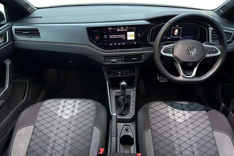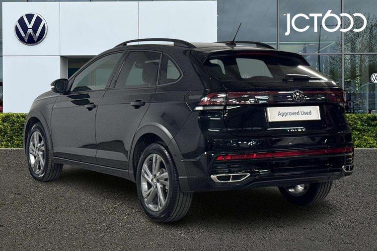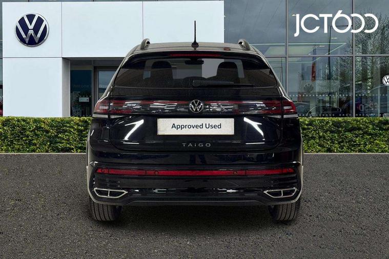 Adaptive cruise control, Advanced driver attention and drowsiness monitor, App-Connect including App-Connect Wireless, Digital cockpit pro - 10.25" high resolution TFT dash display screen with customizable menus and information, Driving profile selection, Dynamic road sign display, e-Call (emergency call), Power Steering, Travel assist including emergency assist, Washer fluid level indicator, Wireless Charging including Bluetooth, Start-stop system with battery regeneration (recuperation - energy recovery during braking), XDS electronic differential lock for improved traction and handling, Digital radio reception (DAB+), Diversity antenna for FM reception, WeConnect plus, Ambient lighting with logo projection, Aspherical driver's exterior mirror, Auto headlights, Body coloured bumpers, Bumpers in R-Line style, Electric windows, External USB type C socket and charging sockets, Front scuff plates with R-Line logo, LED rear combination lamp, LED third brake light, Left convex exterior mirror, Power folding adjustable/heated exterior mirrors and front passenger exterior mirror lowering function, Rear fog light on one side, reversing light on both sides, Rear side wing doors, Rear wash/wipe with intermittent wipe setting, 12V socket in centre console, 2 front reading lights, 3 rear head restraints, 3 seat bench in 2nd row, Air care climatronic air conditoning system with active combination filter and 2-zone temperature control, Black carpets, Black roof lining, Child seat anchor for child seat system i-Size, 2x top tether and child seat anchor in front on front passenger side, Chrome bezel for instrument cluster, vents, door handles + gear shift, Driver and front passenger seat height adjustment, Front + rear carpet mats, Front centre armrest, Front footwell illumination, Front sports comfort seats, Height and reach adjustable steering wheel, Interior ambient lighting and surround lighting, Karoso artvelours cloth upholstery, Leather trimmed gear knob, Leather wrapped multifunction steering wheel, Luggage compartment floor, Luggage compartment light, Lumbar support for driver's and front passengers seat, Seat covers in grey + titanium black, Single front passenger seat, Split folding backrest with centre armrest and unsplit rear seat bench, Stainless steel pedals, Storage compartment under front seats, Sun visors with illuminated vanity mirrors, Chrome Package - Taigo, Drivers assistance pack - Taigo, Light and Sight pack including High beam assist - Taigo, 2 x 3-point seatbelts/outer rear seats with ECE label, 3-point seat belts in front with pretensioner and height adjustment, 3-point seatbelt for centre rear seat, Adaptive driver and front passenger airbags with passenger airbag deactivation function, Driver and front passenger safety-optimised head restraints, Electronic stability control, Extended and predictive pedestrian/ cyclist protection, Front and rear disc brakes, Front curtain and side airbags with center airbag, Hill start assist, Manual rear child locks, Single tone horn, Tyre pressure loss indicator, Anti-theft alarm system with interior monitoring, backup horn, and towing protection, Grey anodised matte decorative inserts in dash and front door panels, Low rolling resistance tyres,