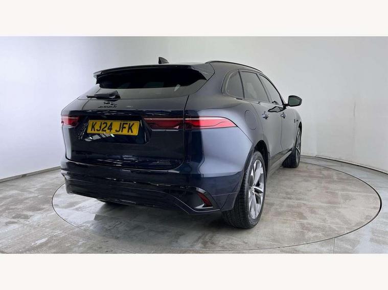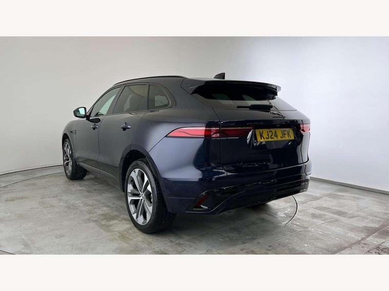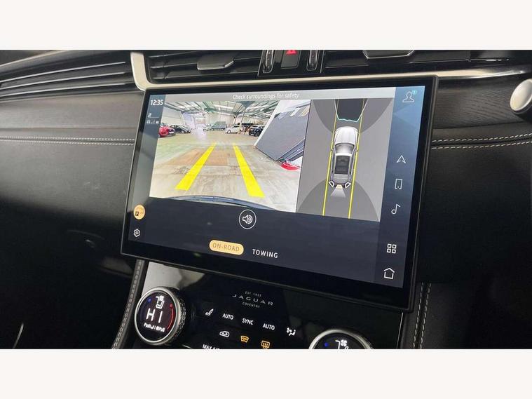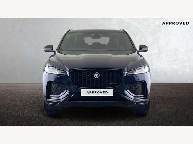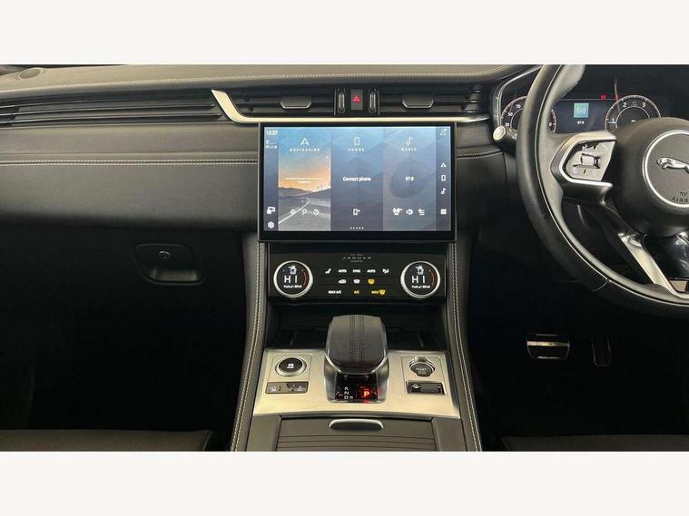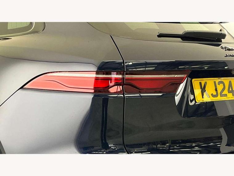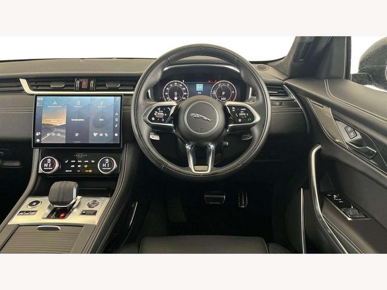 11.4" touchscreen, Adaptive cruise control with steering assist, Android Auto, Apple car play, Blind spot assist, Bluetooth connectivity, Clear exit monitor, Driver alert system, Driver condition monitor, eCall emergency call system, Eco driving style assistant, Electric power assisted steering, InControl remote, Interactive driver display digital with 12" TFT display, Jaguar Toggle shift selector, Lane departure warning system, Lane keep assist, Outside temperature gauge, Personalisation profile management, Pivi pro connected navigation system with app interface and media storage, Pro services and wifi hotspot, Push button starter, Rear collision monitor, Rear traffic monitor, Service interval indicator, Speed proportional steering, Start up sequence with movement in dials and lighting, Traffic sign recognition with adaptive speed limiter, Trip computer, Voice control system, Wireless device charging, 8 speed automatic transmission, Adaptive dynamics, All terrain progress control, All Wheel Drive (AWD), Configurable dynamics, Open differential with torque vectoring by braking, AM/FM radio, Bluetooth streaming, DAB Radio (Digital Audio Broadcasting), Dynamic volume control, InControl apps, InControl protect, iPod integration, 3 flash lane change indicators, AHBA and animated directional indicators, Approach Illumination, Auto dimming rear view mirror, Automatic headlights, Electric heated/power fold memory door mirrors with approach lights and auto dimming driver side, Electric windows with one touch open/close and anti trap, F-Pace and R Dynamic badge, Green tinted glass, Heated front windscreen + heated washer jets, Heated rear window with timer, Illuminated metal tread plates with Jaguar script, Jaguar script and leaper, LED High level third brake light, LED tail lights, Metal load space scuff plates, Non acoustic front windscreen, Privacy glass (rear side windows and rear screen), R Dynamic badge on side door, Rain sensor windscreen wipers, Rear fog lights, Rear metal tread plates, Rear side wing doors, Rear wiper, Trailer stability assist, Variable front intermittent wipers, 12V power point front, 3 rear headrests, 3 seat bench in 2nd row, Additional power sockets - Two additional USB sockets in rear centre console and one 12V socket in trunk, Air distribution speed, Bright metal foot pedals, Centre armrest console, Centre console with side storage, Configurable cabin lighting, Deletion loadspace storage rails, Door sill tread plates, Ebony suede cloth headlining, Electrically adjustable steering column, Fold flat front seats, Front centre armrest with storage compartment, Front door storage space, Glovebox finisher with jaguar script, Heated steering wheel, Hooks in loadspace, Illuminated glovebox, Interior front door handles with separate locking switches, ISOFIX on outer rear seats, Jaguar sense, Leather steering wheel, Luggage tie downs in loadspace, Mist sensing, Multifunction steering wheel, Overhead lighting console, Overhead stowage for sunglasses, Passive front head restraints, Premium carpet mats, Rear air vents, Rear armrest with twin cupholders, Rear centre headrest, Rear door storage space, Reversible boot floor, Satin chrome gearshift paddles, Shopping bag hook, Single front passenger seat, Sunvisors with illuminated vanity mirrors, Twin front cupholders with cover, Online Pack with data plan - F-Pace, 355mm front brakes and 325mm rear brakes, 3x3 point rear seatbelts, ABS, All surface progress control (ASPC), Brake pad warning light, DSC - Dynamic Stability Control, Electric parking brake (EPB), Emergency brake assist, Front airbags with passenger seat occupant detector, Front and rear seatbelt reminder, Front side airbags, Full length side window curtain airbag, Hill launch assist, Power operated child locks, Traction control, Tyre pressure monitoring system, Immobiliser, Keyless entry, Keyless Start, Locking wheel nuts, Perimeter alarm, Remote central locking, Valet mode,