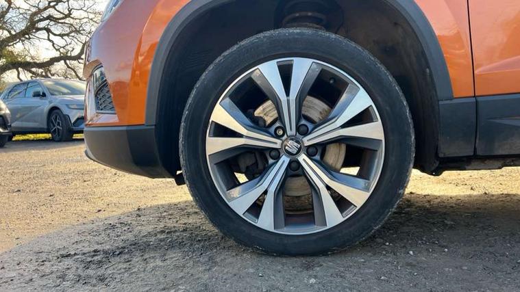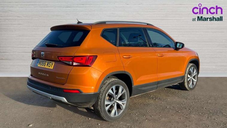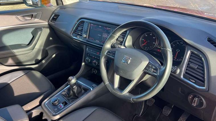 'Lights On' Reminder warning buzzer, Cruise control, Driver alert system, Electric speed sensitive power steering, Full Link App interface, Low fuel warning light, Multi function display, Outside temperature gauge, Rear parking sensor, Rear view camera, Remote fuel flap release, SEAT Drive profile, SEAT logo boot release, Trip computer, Comfort suspension, XDS electronic differential lock, Steering wheel mounted audio/phone controls, Black roof rails, Body colour bumpers, Body colour door handles, Body colour door mirrors, Chromed centre radiator grille surround, Cornering front fog lights, Dark tinted rear windows, Electric folding door mirrors, Electrically adjustable and heated door mirrors, Front and rear electric windows, LED daytime running lights, LED Headlights, LED tail lights, Rear wash/wipe, Towbar preparation, 12V power point front, 3 height adjustable rear headrests, 60/40 split folding rear seat, Adjustable front armrest with storage compartment, Ambient lighting, Cloth upholstery, Comfort front seats, Driver/passenger lumbar adjustment, Driver/passenger sunvisors with illuminated vanity mirrors, Dual zone climate control, Footwell illumination, Front cupholders x 2, Front reading lights, Front seat back storage pockets, Height adjustable driver's seat, Height adjustable front headrests, Height adjustable passenger seat, Illuminated boot, Illuminated glovebox, Isofix child seat preparation, Leather steering wheel and gear knob, Rear armrest, Rear central air outlet, Rear reading lights, Storage box under drivers seat, Storage compartment in roof console, Navigation system pack - Ateca, Seat Media System Plus pack - Ateca, ABS, Auto hold function, Automatic post collision braking, Curtain airbags, Driver/Front Passenger airbags, Drivers knee airbag, Electronic parking brake, Electronic stability control, ESP+EBA, Front and rear seatbelt reminder, Front assist including city emergency braking, Front passenger airbag deactivation, Front side airbags, Hill hold control, Predictive pedestrian protection, Tiredness recognition system, Traction control, Tyre pressure monitoring system, 2 folding remote keys with window open/close function, Keyless entry and go, electric tailgate with virtual pedal and connectivity hub with wireless charge, Locking wheel bolts, Volumetric alarm with back up horn, Chrome effect dashboard facia, 18" Bi-colour alloy wheels,