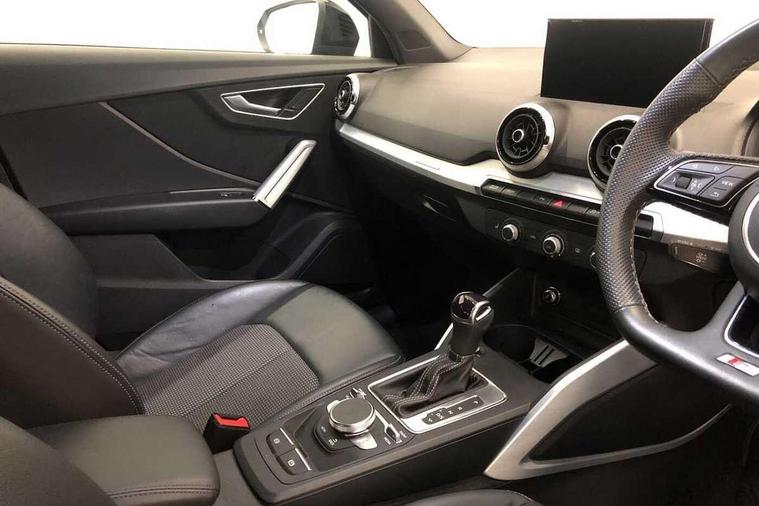Audi connect navigation and infotainment includes innovative services, Audi connect remote and control connects your vehicle to your smartphone, Audi drive select, Audi drive select - Power steering assistance + engine + gearshift, Audi drive select with efficiency, Audi smartphone interface, Audi virtual cockpit, Automatic start/stop system with recuperation, Bluetooth interface includes bluetooth audio streaming, Cruise control, E-call, MMI navigation plus with MMI touch, Power operated tailgate, Progressive steering, Rear parking sensors, 2 x SDXC card reader, 8 passive loudspeakers, DAB Digital radio, DVD Drive, Auto dimming rear view mirror, Black window trims, Bumper in full body colour paint finish, Electrically adjustable, folding, auto dimming and heated door mirrors with integrated LED side indicators, Front windscreen with grey tinted sunband, LED daytime running lights, LED headlights with LED rear lights, LED third brake light, Privacy glass - dark tinted rear and rear side windows from B-pillar backwards, Rear side wing doors, Rear wiper, Variable front intermittent wipers, Wheel arch trims in manhattan grey, 12V socket in front, 3 seat bench in 2nd row, 3 spoke flat bottomed multi-function leather sport steering wheel with gear shift paddles, 4-way electric lumbar support for front seats including seat height adjustment for both front seat, 60/40 split folding rear seat bench, Black cloth headlining, Front and rear head restraints, Front centre armrest, Front/rear floor mats, Height/reach adjust steering wheel, Illuminated door sill trims with S logo, ISOFIX child seat mounting for front passenger with airbag deactivation and outer rear seat including top tether attachment point for outer rear seats, Single front passenger seat, Stainless steel pedals, Black styling pack - Q2, 3x3 point rear seatbelts, 6 airbags - Front, curtain and front side airbags, Electromechanical parking brake, Electronic stabilisation control including ABS, ASR and EDL, Hill hold assist, Pre-sense front with pedestrian recognition, Seatbelt monitoring, Tyre pressure warning light, Warning triangle and first aid kit, Anti theft alarm, Anti theft wheel bolts, Electronically operated child locks, Remote central door locking, Aluminium interior element, Matt brushed aluminium trim inlays, Tool kit,