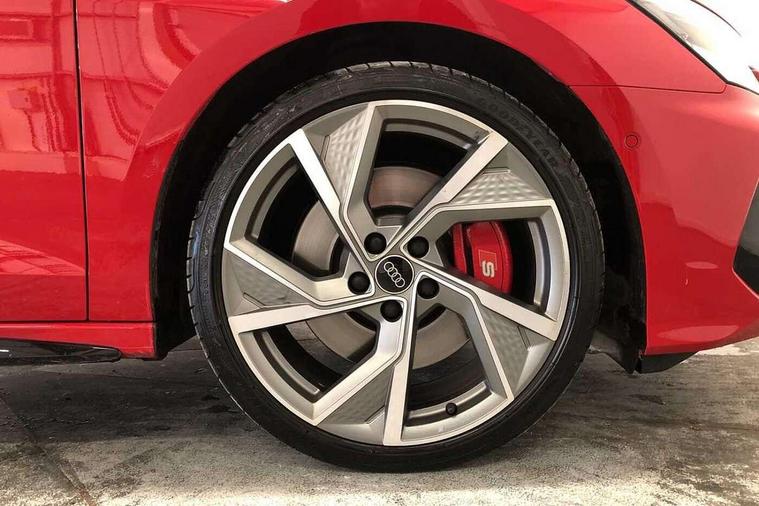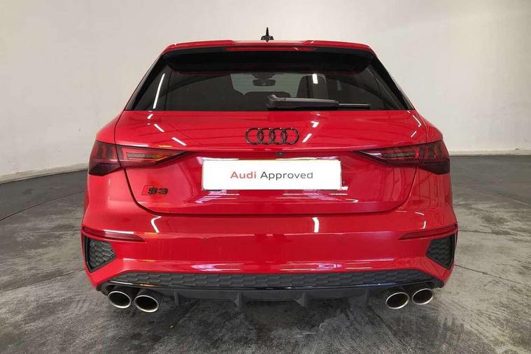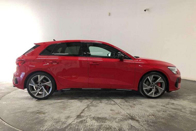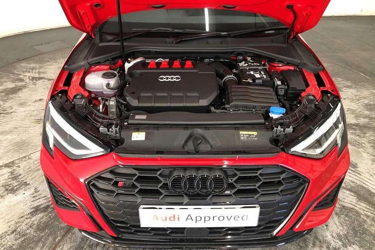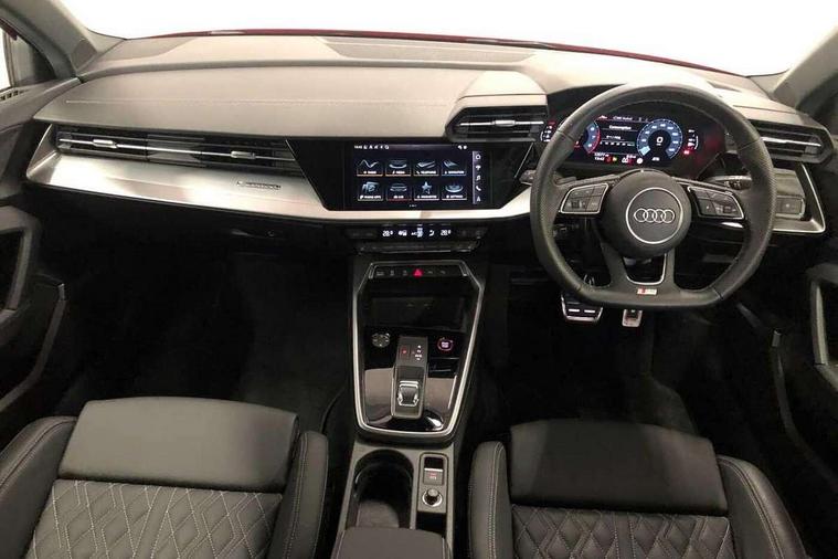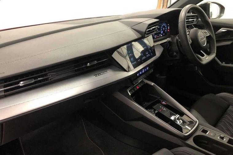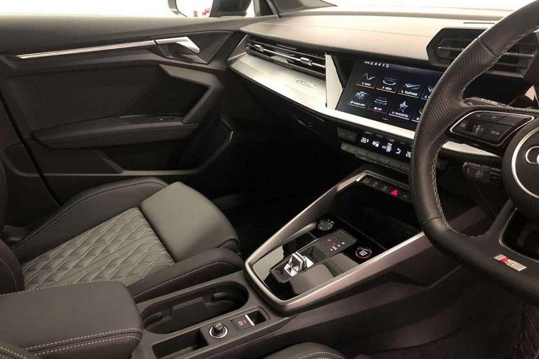 Audi drive select (Auto, Comfort, Dynamic, Efficiency and Individual), Audi smartphone interface, Audi Virtual Cockpit - 10.25" digital and colour instrument cluster, Automatic start/stop system with recuperation, Bluetooth interface, Camera based traffic sign recognition, Collision avoidance assistant, e-Call (emergency call), Lane departure warning system, MMI Navigation Plus with high resolution 10.1" colour touch screen display, Progressive steering, Service indicator, Trip computer, Voice control system with natural language interaction, Quattro permanent all wheel drive, S sport suspension with spring damper adjustment and lowering by 15mm, 2xUSB-C connection with data and charging functions, DAB Digital radio, 3rd brake light, Acoustic glass windscreen, Audi Beam uses LEDs to project the Audi logo onto the ground as you exit your S3, Auto dimming frameless rear view mirror, Dual branch oval twin tailpipes in chrome plated finish, Electrically adjustable/heated/folding/auto dimming door mirrors with integrated LED indications + kerb view function for passenger side, Front electric windows, Headlight washers, Illuminated door sills with aluminium inserts at the front with S logo, LED daytime running lights, LED headlights with LED rear lights and dynamic rear indicators, Light and rain sensors, Privacy glass - dark tinted rear window, rear door and side windows, Rear electric windows, Rear side air outlets in grained matt black, Rear side wing doors, Rear wiper, 12V socket and storage compartment in front centre console, 3 seat bench in 2nd row, 4 way electrically adjustable lumbar support for driver and front passenger, 60/40 split folding rear seat bench, Black cloth headlining, Dual zone electronic climate control, Fine Nappa leather upholstery with front sports seats S embossed logo, Front and rear centre armrest in artificial leather, Front and rear headrests, Front/rear floor mats, Height and reach adjustable steering wheel, Interior lighting - glove compartment light and right hand side, Luggage compartment floor covering, Manual boot compartment lid, Manually adjustable front seats, Seat side bolsters, Single front passenger seat, Stainless steel pedals and front footrest in black, Aluminium interior elements pack - A3 Sportback, Black styling pack - A3 Sportback/S3, Body styling design pack - S3, Extended ambient lighting pack - A3 Sportback, Storage pack - A3 Sportback, Technology pack - A3 Sportback, 3x3 point rear seat belts, Driver and front passenger airbag with passenger airbag deactivation, Electronic Stabilisation Control (ESC) including ABS, ASR and EDL, First aid kit with warning triangle and 2 safety vests, Front side airbags with head airbags and interaction airbag, Pre-sense front with pedestrian and cyclist detection, Seatbelt monitoring, Tyre pressure loss indicator, Anti theft alarm, Anti-theft wheel bolts, Electronically operated child locks, Immobiliser, Remote control central locking, Dark spectrum aluminium inlays, accent surfaces in the dashboard and centre console in platinum grey silk effect paint finish,