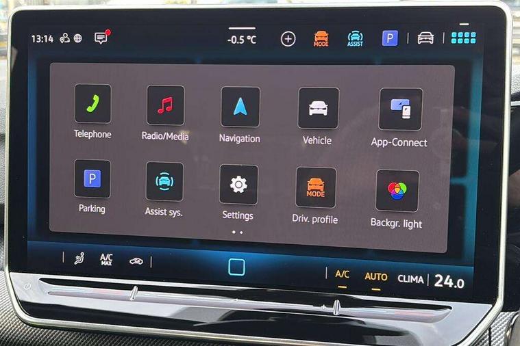 Activated carbon canister, Adaptive cruise control (ACC), Advanced driver attention and drowsiness monitor, Dynamic road sign display, Dynamic steering, E-Sim card for online connectivity, eCall emergency call system, Multi-color Digital cockpit pro, selection of different info profile possible, Multifunction front facing camera for distance control, Navigation system, Oncoming vehicle braking when turning including swerve support, Preparation for light assist system, Speed limiter, Speedo, rev counter, electronic odometer, trip, service interval display, exterior temperature and fuel gauge, Traffic jam assist, Voice enhancer and voice control, Warning signal and warning light for front and rear seatbelts not fastened, We connect plus preparation, We connect preparation, Wireless app connect, Diesel particulate filter, Hybrid propulsion system, Start-stop system with battery regeneration (recuperation - energy recovery during braking), XDS electronic differential lock for improved traction and handling, 2 USB C ports in front, 2 USB charging sockets on the centre console in the rear charging capacity upto 45W, Comfort telephony + wireless charging, without wireless aerial connection, Digital radio reception (DAB), Diversity antenna for FM reception, Gaming platform via car app, Infotainment system with 12.9" display, Mobile phone interface with inductive charging feature, 3rd brake light, Auto headlights, Automatic headlamp activation with Coming home and Leaving home feature, Body colored bumpers in R-Line style, Body colour door handles, Exterior ambient lighting with illuminated door handles, Exterior mirrors convex on the left and aspherical on the right, Front and rear electric windows, Heat insulating windshield made of laminated glass, LED daytime running lights, Rear exhaust tailpipe, Rear fog light on one side and reversing lights on both sides, Rear side wing doors, Rear windscreen washer and wiper with interval delay, Remote electrically foldable door mirrors, puddle lights and reverse activated passenger's door mirror, Welcome light with surround lighting, 12V socket in front centre console, 12V socket in luggage compartment, 3 rear head restraints, 3 seat bench in 2nd row, Ambient lighting with 30 colour including LED light unit in front footwell with selectable light colour, Brushed stainless steel pedals, Carpet mats, front and rear, Chrome plated radiator grille inserts, air vent surrounds and light switch surrounds, Front centre armrest, Integrated front head restraints, ISOFIX anchors for child seats on outer rear bench seats and on front passanger seat compatible for i-Size, Luggage compartment lighting, Plastic gear knob, Premium sports seats in front, Rear cupholder and loadthough, Single front passenger seat, Soul black instrument panel, Split folding backrest with centre armrest and unsplit rear seat bench, Storm grey roof lining, Sun visors with illuminated vanity mirrors, 3 point height adj front seatbelts + pretensioners, 3 rear three point seatbelts, ABS, Autonomous emergency braking front assist with pedestrian and cyclist monitoring, Child locks on rear doors, Driver and front passenger airbag with front passenger airbag deactivation, Electronic parking brake with auto hold, ESC (Electronic Stability Control), Extended pedestrian protection measures, Hill start assist, Rear disc brakes, Two tone horn, Tyre pressure loss indicator, Volkswagen roadside assistance, Anti theft wheel bolts, Preparation for alcohol interlock, Decorative inserts carbon grey for dashboard and front door trim panels,