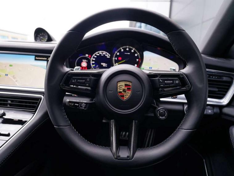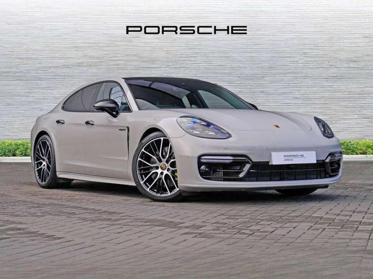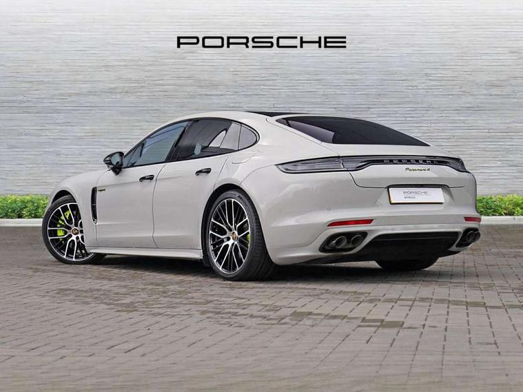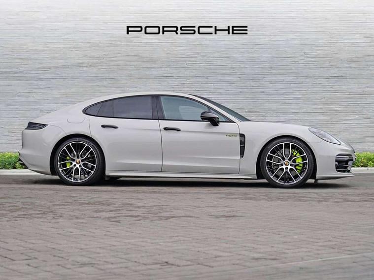 Auto start/stop function and coasting, Automatic tailgate operation, Central analogue rev counter with black dial face, power meter and needles in acid green, Emergency call service, Instrument cluster with two high-resolution displays, Lane change assistant, Lane keeping assist including traffic sign recognition, Service interval indicator, Smartphone integration with Apple CarPlay and Android auto, Trip computer, 4D Integrated chassis control, 7.2 kw On board Charger, 8 Speed Porsche Doppelkupplung (PDK), 80 litre fuel tank, Adaptive air suspension including Porsche Active Suspension Management (PASM), Aluminium double wishbone front axle, Aluminium multi link rear axle, Charge port, Direct fuel injection with central injector position, Gasoline particulate filter, Mobile charger including pouch and basic wall mount 4.5m cable connection between control unit and vehicle, Power electronics, lithium-ion battery with 17.9kWh capacity and electrified ancillary components (Air compressor and electric brake booster), Supply cable for domestic electrical socket, VarioCam Plus, Water cooled with thermal management, Connect Plus inc online nav, wireless internet access, carfind, remote vehicle status, remote services, porsche vehicle tracking system, DAB Digital radio, Integrated 4G/LTE compatible SIM including data for the Porsche Connect Services, Two USB charge ports in rear compartment, 2 speed front wipers + intermittent wipe, Aluminium bonnet with tailgate, door and front wings, Auto dimming exterior mirrors, Auto dimming rear view mirror, Automatic headlight activation including welcome home lighting, Daytime running lights with 4 point LED spotlights in each main headlight, E-hybrid logo on both front doors in satin platinum with acid green surround, Electric front and rear windows + anti trap + one touch, Electrically adjustable, folding and heatable exterior mirrors with aspherical on driver's side, Exclusive design tail lights, Front light modules with LED position lights and direction indicators, Fully galvanised steel/aluminium hybrid lightweight bodyshell, Heated rear window with auto timer, LED 3rd brake light, Panoramic sunroof, Privacy glass, Rear side wing doors, Remote window closing, Two way adaptive rear spoiler in exterior colour, Windscreen washer system including rain sensor, 12v plug sockets in the front centre console storage compartment, 2 individual seats in 2nd row, Active cooling flap control, Centre console armrest in front with integrated storage compartment, Charge air cooling, Courtesy lights on mirrors, Electric fore/aft and height adjustment steering wheel, Four individual seats with continuous centre console and rear armrest, Front cupholder cover, Front footwell lights, illuminated vanity mirrors for driver and passenger, luggage compartment lighting, glove compartment light, Glove compartment, front and rear door storage compartments, storage bin in centre console, small storage compartment in centre console, Heated front and rear seats, Integrated front and rear headrests, Isofix child seat mounting points on outer rear seats, Parking pre-climatisation, Pollen/active carbon filters, Porsche crest embossed in front and outer rear seats headrests, Single front passenger seat with armrest, Soft close doors, Storage compartment in centre console with wireless charging based on Qi, Storage compartment in rear centre console and storage compartment in rear central armrest, Two integrated cup holders in rear compartment, Two integrated cup holders in the front centre console, 2 x 3-point rear seatbelts, 2x3 point front seatbelts with pre-tensioners, Active bonnet, Anti-lock braking system (ABS), Brake discs with diameter 390 mm at front, 365 mm at rear, Continuously adjustable door brake, Curtain airbags along entire roof frame and side windows from the A pillar to the C pillar left and right, Driver and front passenger knee airbag, Electronic parking brake, Front side airbags, Full size driver and front passenger airbags, Manual child lock in rear doors, Porsche side impact protection system (POSIP) includes side impact protection in doors, thorax airbags integrated into the side bolster of front seat, Porsche traction management (PTM) with AWD, map controlled multi-plate clutch, automatic brake differential (ABD) and anti-slip regulation (ASR), Tyre pressure monitoring system, Vehicle stability system and porsche stability management (PSM), Engine immobiliser with remote central locking and alarm system with radar based interior surveillance, Keyless drive, Porsche entry and drive system, Wheel centre set with full-colour Porsche Crest,