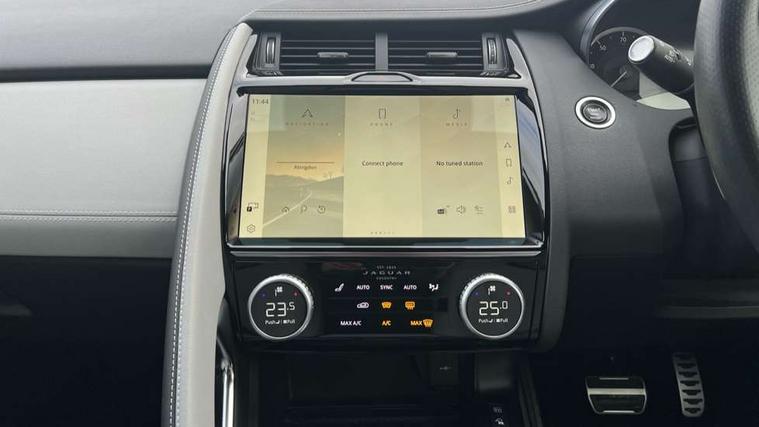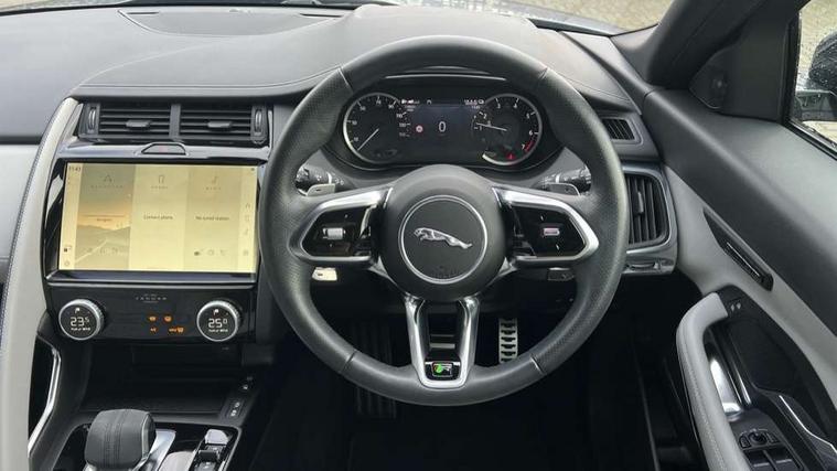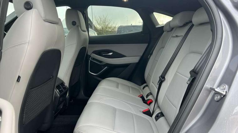 11.4" touchscreen with central ICP, 12.3" full digital instrument panel, Adaptive cruise control, Android Auto, Apple car play, Blind spot assist, Driver condition monitor, Eco driving style assistant, Electric power assisted steering, Emergency services call system, Front and rear parking aid, InControl remote, Jaguar drive control with adaptive surface response, Jaguar Toggle sport shift selector, Lane keep assist, Outside temperature gauge, Pivi pro connected infotainment system with smart settings and navigation pro, Push button start, Rear collision monitor, Rear traffic monitor, Speed proportional steering, Traffic sign recognition with adaptive speed limiter, Trip computer, Voice control system, 7 kW onboard charger, Configurable dynamics, Electric rear axle drive, Home charging cable Mode 2, Large fuel tank, Passive suspension, Public charging cable Mode 3, AM/FM DVD MP3 radio, Bluetooth connectivity including audio streaming, DAB digital audio broadcast, Dynamic volume control, 3 flash lane change indicators, Approach Illumination, Auto high beam assist, Automatic headlights, Body colour door handles, Body colour door mirrors, Body colour front and rear lower bumper main moulding and lower side cladding, Body colour upper spoiler, Body coloured side sills, Centre high-mounted stop light, Dark satin grille tips, Electric front/rear windows with one touch/auto up/down, Electric heated/power fold memory door mirrors with approach lights and auto dimming driver side, Embossed leaper for grained and windsor leather, Heated washer jets, Heated windscreen, Jaguar script and leaper, LED tail lights, LED third brake light, Narvik black antenna pod and side pillar finisher, R Dynamic badge, R Dynamic body colour bumpers, Rain sensor windscreen wipers, Rear fog lights, Rear side wing doors, Rear wash wiper, Satin black grained front outer grille, low grill mesh and low bumper valence, side fender vent mesh and finisher, rear tow eye cover and grille mesh, Twin exhaust tailpipe, Variable front intermittent wipers, 3 rear head restraints, 3 seat bench in 2nd row, 40:20:40 rear seat fold, Bright metal pedals, Carpet mats, Centre console with armrest, Enhanced ambient lighting, Hooks loadspace, ISOFIX on outer rear seats, Loadspace cover, Loadspace light, Loadspace storage net, Luggage tie-downs in loadspace, Manual height/reach adjust steering wheel, Multifunction steering wheel, Overhead lighting console, Passive front head restraints, Power sockets, R-Dynamic branded leather steering wheel, Rear air vents, Rear bench seats, Satin chrome gearshift paddles, Single front passenger seat, Sunvisors with illuminated vanity mirrors, Twin front cupholders, Two zone climate control, 3x3 point rear seatbelts, ABS, All surface progress control (ASPC), Child locks on rear doors, Customer configurable autolock, DSC - Dynamic Stability Control, Electronic brake force distribution, Electronic parking brake, Emergency brake assist, Emergency braking, Front airbags with passenger seat occupant detector, Front and rear curtain airbags, Front and rear seatbelt reminder, Front passenger airbag deactivation, Front seatbelt pretensioners, Front side airbags, Height adjustable front seatbelts, Hill start assist, Low friction launch, Power child locks, Torque vectoring brake, Tyre pressure monitoring system, Intrusion sensor and alarm, Locking wheel nuts, Remote central locking,
