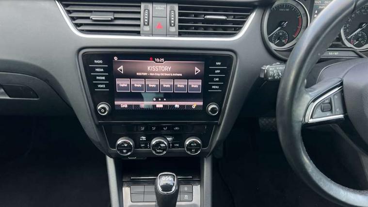 Bluetooth system, Driver alert system, Driver fatigue sensor, Driver profile selection, Electro-mechanical power steering, Front assist with pedestrian protection, Outside temperature gauge, Proximity sensors, Service interval indicator, SmartLink with Apple Carplay/Android auto and MirrorLink, Stop/start system, Voice control system, XDS electronic differential lock, Auxiliary input socket, Bolero Radio, DAB Digital radio, Multi device interface, Aero wiper + intermittent function, Body colour door mirrors and handles, Body coloured bumpers and protective side mouldings, Chrome trim to front bumper, Coming/leaving home lighting function, Electric front and rear windows with child safety lock, Full LED Headlights with adaptive front light system and LED daytime running lights, High gloss black front grille, High level third brake light, Intelligent light assist with high beam control, Internally adjustable headlight beam level, Light assistant (coming home/tunnel light) with auto-dimming rear view mirror, Privacy glass, Rain sensor, Rear mudflaps, Rear wiper, Telescopic front headlight washers, Tinted glass, Air re-circulation and pollen filter, Chrome inner door handles, Driver + passenger vanity mirrors, Dual zone automatic air conditioning with humidity sensor and control, Front armrest with storage box, Front seat and rear pockets, Gear shift indicator, Height adjustable front and rear head restraints, Height/reach adjust steering wheel, Illuminated air conditioned glovebox, Illuminated luggage compartment, Interior courtesy light operated by door switches, Lashing eyelets in boot, Rear armrest with storage, Rear seat backrest release, Split folding rear seats with centre armrest and storage, Sunglasses storage, Textile floor mats, Two isofix child seat fitting in rear, Umbrella under front passenger seat, 3 rear 3 point seatbelts + pretensioners, Automatic post collision braking, Driver and passenger front and side airbags, Drivers knee airbag, Energy recovery system, ESC including ABS, EBV, MSR, ASR, EDS, HBA, DSR, Fuel supply cut off, Head and curtain airbags, Height adjustable front seatbelts + pretensioners, Hill hold control, Passenger airbag deactivate switch, Seatbelt warning lamp, Tyre pressure monitor, Alarm, Electronic engine immobiliser, Remote central locking,