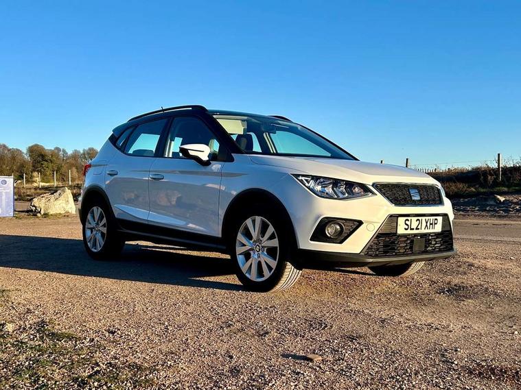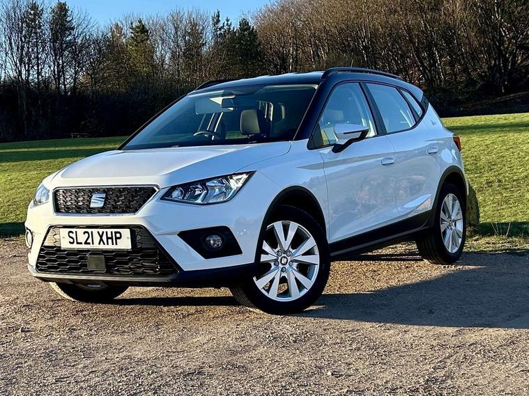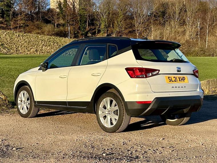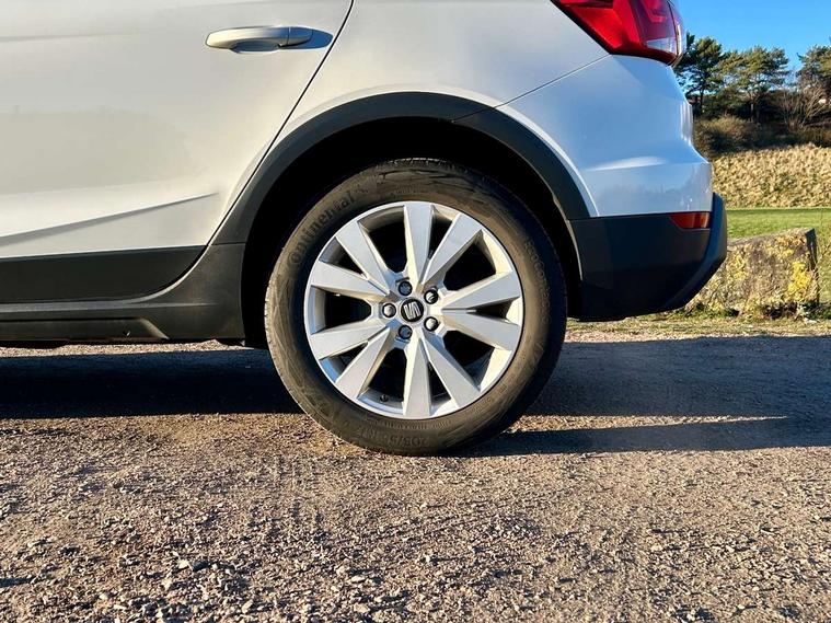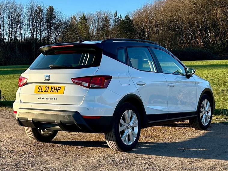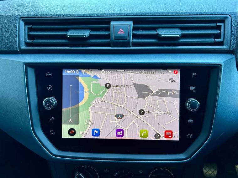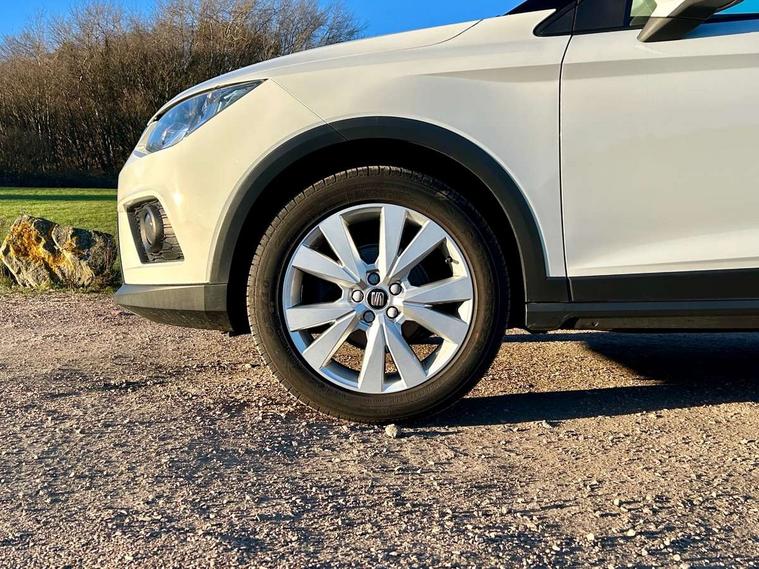 'Lights On' Reminder warning buzzer, Cruise control and speed limiter, Digital clock, Electric speed sensitive power steering, Full Link Smartphone Integration with Mirror Link, Apple Car Play, Google Android Auto with USB Type C cable for Apple and Android compatibility, Low fuel warning light, Outside temperature display, Rear parking sensor, RPM counter, Seat connect with safety, service, remote and online, Trip computer, Comfort suspension, 6 speakers, Bluetooth interface for hands free and audio streaming, DAB digital radio and AM/FM radio, Steering wheel mounted audio controls, Anti theft roof antenna, Automatic activation of hazard warning lights, Automatic headlights, Black roof rails, Black window trims, Body coloured bumpers, Body coloured door handle inserts, Body coloured door mirrors, Dimming rear view mirror, Electric adjustable door mirrors, Electric front/rear windows with one touch/auto up/down, Electric headlight adjustment, Front fog lights with cornering function and rear fog light, Halogen tailights, Hidden exhaust pipe, LED daytime running lights, LED licence plate lighting, Protective side mouldings, Rear window wash/wipe, Twin halogen headlights, Visible VIN plate, Windshield wiper with intermittent control and potentiometer, 2 cupholders, 60/40 split folding rear seat, Air conditioning, Cloth upholstery, Double boot floor, Driver sunvisor with covered mirror + card holder, Dust/pollen filter, Front courtesy light with front reading lights, Gear shift indicator, Grey interior roof, Height adjustable front seats, Height/reach adjustable steering column, Illuminated boot, Instrument lighting with brightness control, ISOFIX points in outer rear seats with top tether anchorage points, Leather steering wheel/gear knob/handbrake, Passenger sunvisor with vanity mirror, Two front and three rear height adjustable headrests, Connectivity pack plus - Arona, Interior chrome pack - Arona, 3 point seatbelts on all rear seats, ABS, Active front headrests, Child locks on rear doors, Driver and front passenger airbags with front passenger airbag de activation, front side and curtain airbags, Electronic stability control, Emergency Brake Assist (EBA) and front assist, Front and rear seatbelt reminder, Hill hold control, Multi-Collision braking, Tiredness recognition system, Traction control, Tyre pressure monitoring system, 2 folding remote keys with window open/close function, Electronic engine immobiliser, Locking wheel bolts, Remote central locking + deadlocks, Interior chrome line trim, Plastic grey dashboard, 17" Dynamic alloy wheels,