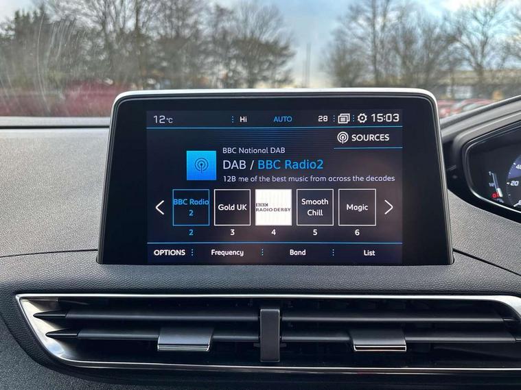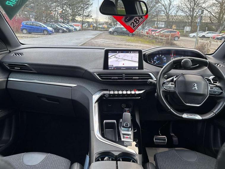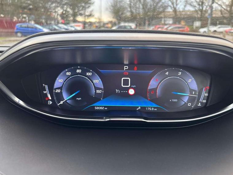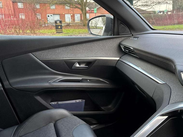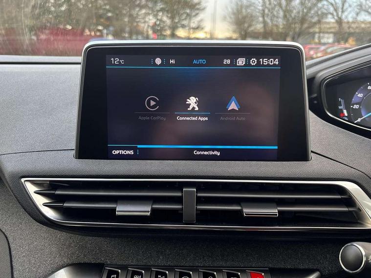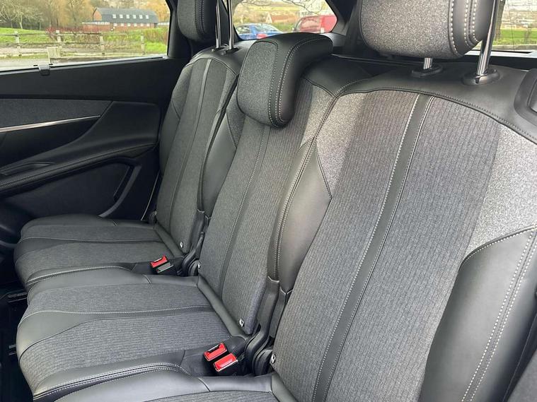 3D connected navigation + voice control, Auto start and stop system, Bluetooth telephone connection, Exterior temperature gauge with frost alarm, Headlight on warning buzzer, Lane departure warning system, Mirror screen with Apple CarPlay and Android auto, Multi function trip computer, Peugeot i-cockpit with 12.3" headup digital instrumental panel, 8.0" capacitive touch screen and compact sports steering wheel, PEUGEOT SOS and assistance, Smartphone wireless charging plate, Speed limit recognition, Sports button, Dynamic stability control, DAB Digital radio, MP3 connection, Steering wheel audio controls, USB socket, 2 X Rear number plate lights, Aluminium roof rails, Auto self levelling headlights, Automatic activation of hazard warning lights, Black front wing trim with chrome detail, Body colour door handles, Body coloured bumpers, Body coloured rear spoiler, Body protectors in black, Chrome front fog light surround, Chrome rear bumper scuff plate, Chrome trim to lower side windows, Dark tinted rear side and tailgate windows, Door mirror mounted LED Peugeot lion approach lights, Electric front/rear windows with one touch/auto up/down, Electrically heated door mirrors, Front windscreen wiper with magic wash cleaning system, Full LED headlights with LED fog lights with static cornering function, sports front bumper and grille, Gloss black B and C pillar and aerodynamic deflector trim, Gloss black rear cluster connecting strip, Gloss black windscreen surround, GT Line emblem in satin copper, Heated rear windscreen with integrated antenna, LED daytime running lights, LED sequential scrolling front indicators, LED side indicator lights integrated into door mirrors, Lion grey front bumper scuff plate, Nera black door mirrors, Panoramic opening glass roof with electric blind, Power folding door mirrors with indicator and auto dipping function in reverse gear, Radiator grille in chrome edge trim with chequered design and black 'PEUGEOT' lettering, Rear LED Peugeot signature 'Claw Effect' lights, Rear side window blinds, Rear windscreen wiper with auto activation when reversing, Stainless steel roof arches, Twin exhaust effect trim, Wheel arch protectors, 2 cupholders in front centre console, 2 individual folding 3rd row seats, 230V socket on rear centre console, 3 x 12V power sockets, 4 Grab handles retractable and damped, Aikinite stitching in armrest, gear lever and dashboard facia, Automatic dual-zone climate control, Blue ambient lighting for connecting zone, Blue ambient lighting to front door panels, central storage and cupholders, Blue ambient lighting to head up instrument panel, Electric power steering with reach and rake adjustable steering column, Flat folding rear seats, Flocked front door pocket interior with blue ambient lighting, Flocked glovebox interior, Fold flat front passenger seat with picnic table, Front central armrest with butterfly-wing opening and storage compartment, Front interior light with 2 reading spotlights and rear interior light with timer, Front passenger seat height adjust, Front passenger seat manual adjustment in longitudinal and back rest angle, Gear shift indicator, Headrests on 2nd/3rd row seats, Heating/air conditioning outlet in rear, Illuminated glovebox, Illuminated vanity mirror, Imila cloth/Leather upholstery, Interior lighting, Isofix child seat fittings x 3 in the second row, Map pocket on front seat backs, Mistral floor mats with Aikinite contrast stitching, Mistral full grain perforated leather steering wheel with aikinite stitch detail and satin chrome 'GT Line' emblem, Rear centre console with air vents, Rear reading lights x 2, Rear seat underfloor storage, Retractable parcel shelf, Roof lining - Mistral black, Satin chrome digital instrument panel and touchscreen trim, Satin chrome front door panel recess trim, Satin chrome gear lever, Satin chrome interior door handles, Satin chrome scorpion's tail and toggle switch trim, Seatbelt unfastened on the move audible and visual alert for front and rear seats, Twin rear coat hooks, Children's pack - 5008, Driver sport pack - 5008, Safety pack - 5008, Safety plus pack - 5008, Visibility pack - 5008, 3 Isofix location points, ABS + EBD + EBA, Adaptive driver and front passenger airbags including passenger airbag deactivation function, Electronic parking brake, ESP and ASR traction control with deactivation switch, Five 3 point rear safety belts, Front and rear curtain airbags, Front optimised safety headrests and rear retractable headrests (x3), height adjustable, Front seatbelt unfastened audible+visual warnings, Front side airbags, Front three point retractable seatbelts height adjustable with pre tensioners and force limiters, Front ventilated disc brakes, Hill start assist, Rear disc brakes, Rear three-point retractable seatbelts (x3) with pre-tensioners and force limiters in the outer rear seats, Tyre pressure monitor, Automatic door lock/re-lock after 30 seconds, Child lock control of rear doors and windows, Electric tailgate with Peugeot open & go system, Remote control central locking with two plip keys, Rolling code transponder immobiliser, Thatcham cat 1 ultrasonic alarm, Brumeo fabric interior trim, Satin chrome dash trim, 19" Washington two tone diamond cut alloy wheels with space saver spare wheel,