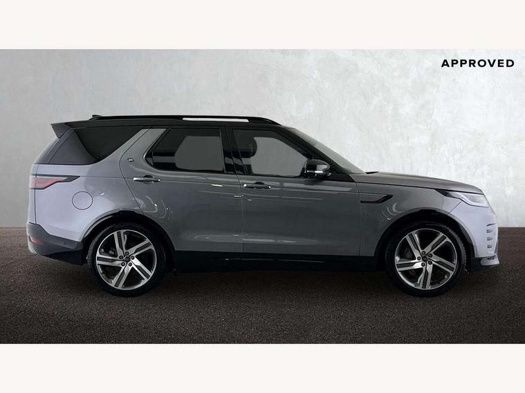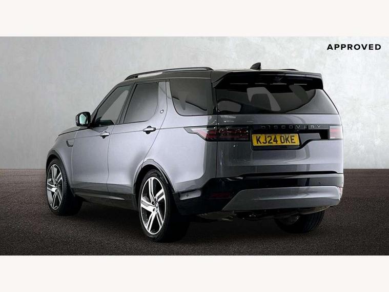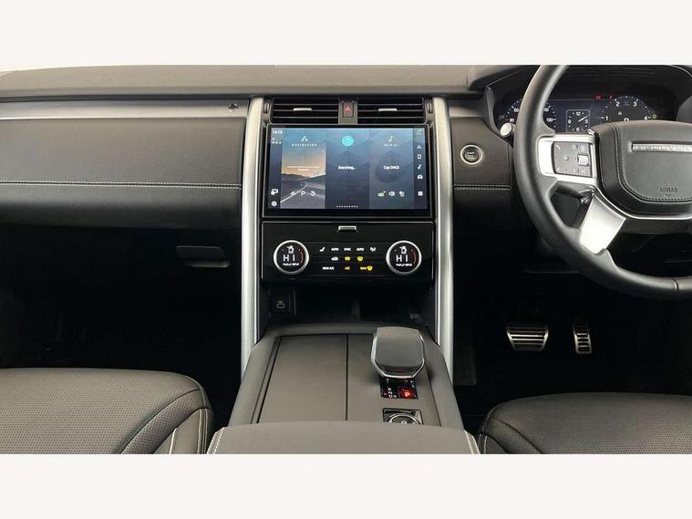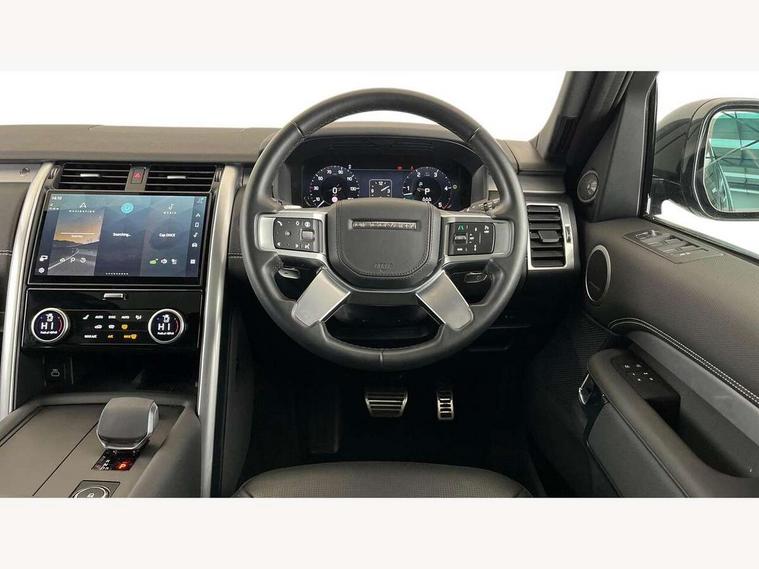 11.4" touchscreen, 3D surround camera, Adaptive cruise control, Android Auto, Apple car play, Blind spot assist, Driver condition monitor, Electric power assisted steering (EPAS), Emergency services call system, Front and rear parking aid, Interactive driver display, Lane keep assist, Power inner tailgate, Power tailgate/boot lid, Push button start, Rear collision monitor, Rear traffic monitor, Remote, Remote boot release, Service interval indicator, Speed proportional steering, Sportshift selector, Stop/start system, Traffic sign recognition with adaptive speed limiter, Trip computer, Wade Sensing, Adaptive dynamics, Dynamic stability control, Electronic air suspension, Front axle open differential, Digital Audio Broadcast radio-DAB, Dynamic volume control, Pivi pro connected, USB/aux input socket, Acoustic laminated windscreen, Animated directional indicators, Auto dimming interior rear view mirror, Automatic headlight levelling, Automatic headlights, Body colour bumpers, Body colour door handles, Centre high mounted stop light, D300 badge, Electric heated/power fold memory door mirrors with approach lights and auto dimming driver side, Electric windows with one touch open/close and anti-trap, Heated rear window, Heated windscreen, LED darkend tail lights, Matrix LED headlights with signature DRL, Narvik black Discovery script, Privacy glass, Puddle lights, Rain sensing windscreen wipers, Rear fog lights, Rear side wing doors, Rear wash/wipe, Trailer stability assist, Variable intermittent wiper, 12V power sockets, 12V USB charging socket in loadspace, 2 seat bench in 3rd row, 3 seat bench in 2nd row, 60/40 electric heated folding rear seats with manual slide and powered recline, centre headrest and armrest, Central hinged twin lidded storage, Configurable cabin lighting, Ebony morzine headlining, Electric adjustable steering column, First and second row door bins, Footwell lights, Front and rear 12V with front USB, Front passenger seat isofix location point, In-facia storage, Isofix child seat preparation for front passenger seat, Leather steering wheel, Loadspace cover, Loadspace Hook, Loadspace light, Lockable glovebox, Lower centre console storage, Luggage tie downs in loadspace, Multi function steering wheel, Overhead lighting console, Premium carpet mats, Rear ISOFIX, Shopping bag hook, Single front passenger seat, Storage glovebox, Sunvisors with illuminated vanity mirrors, Third row storage, Treadplates with metal inserts, Twin front cupholders with cover, USB with 12V socket in centre console, Black exterior pack - Discovery Dynamic SE/HSE, Online pack with data plan - Discovery, 3x3 point rear seatbelts, Anti-lock braking system (ABS), Brake pre-fill technology, Cornering brake control, Curtain airbags, Customer configurable autolock, Driver and passenger airbags, EBD - Electronic brakeforce distribution, Electronic traction control, Emergency brake assist, Emergency braking, ESP, Front side airbags, Gradient acceleration control, Hill descent control, Hill launch assist, Power operated child locks, Rear airbags, Roll stability control, Seat belt reminder, Torque vectoring brake, Tyre pressure monitoring system, Immobiliser, Intrusion sensor, Keyless entry, Locking wheel nuts, Remote central locking, All terrain tyres,