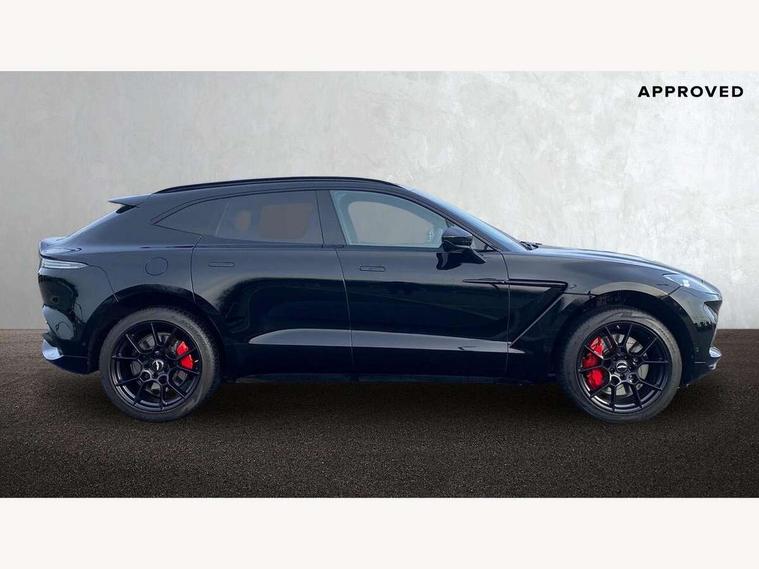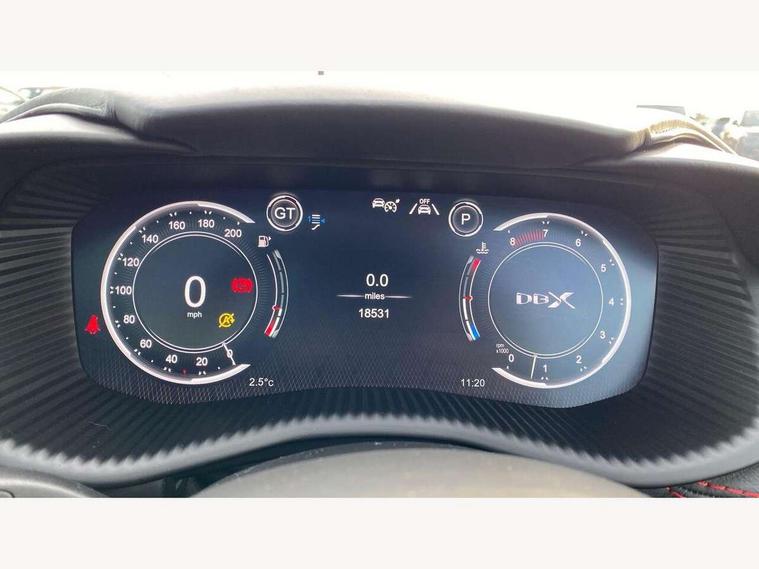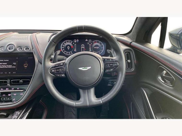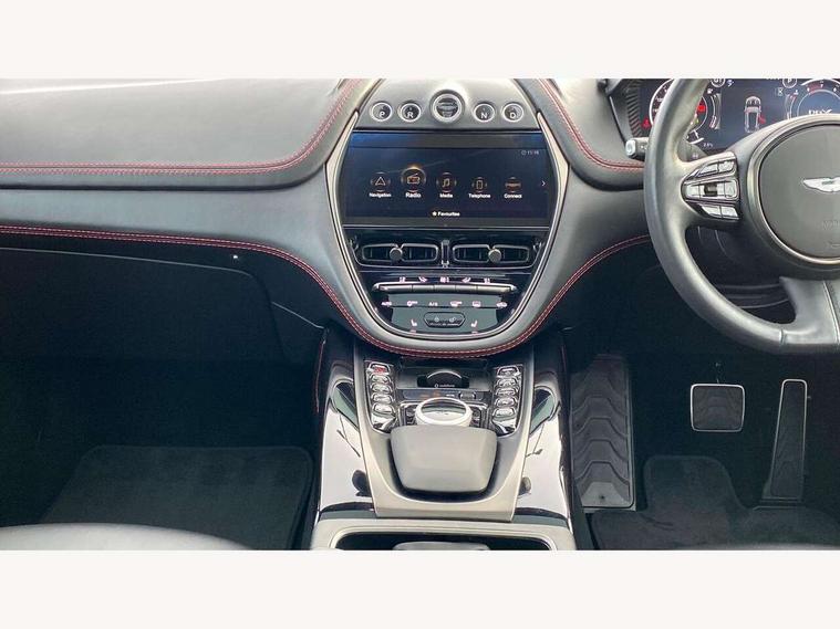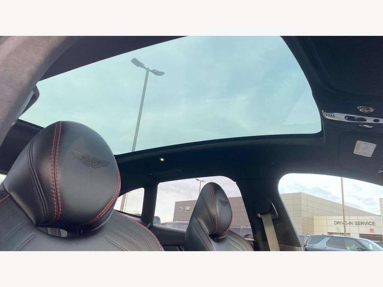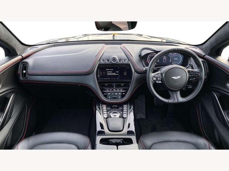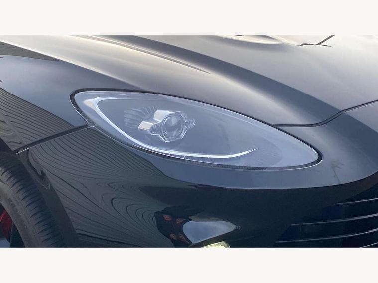 10.25" TFT centre display, 12.3" TFT instrument display, Adaptive cruise control, Adaptive drive modes, Apple car play/Android Auto, Blind spot monitoring, Bluetooth telephone connectivity, Brake pad wear indicator, Electric power assisted steering (EPAS), Forward collision warning, Front parking aid with visual indicator, Lane change warning, Lane departure warning system (LDW), Lane keep assist, Outside temperature display, Rear crossing traffic warning, Rear parking aid with visual indicator, Rotary dials, Rotary infotainment system interface, Satellite navigation system, SOS emergency call button, Speed limiter, Stop/start system, Surround camera system with deploying rear camera, Traffic sign recognition, Voice control system, 9 speed automatic transmission, Active centre transfer case, Adaptive triple chamber air suspension, All Wheel Drive (AWD), Battery conditioning connector, Electric active roll control, Electric limited slip rear differential, Electronic adaptive damping system, AM/FM radio, Aston martin premium audio, Bluetooth audio streaming, DAB Digital radio, SD card slot, USB port, Acoustic laminated front windows, Active rear brake lights, Approach Illumination, Auto dimming interior rear view mirror, Automatic headlights, Automatic high beam - AHB, Bi LED headlights, Body colour mirror caps, Electric windows, Fixed panoramic glass sunroof, Heat insulating glass, Heated rear window, LED centre high mounted stop light, LED daytime running lights, LED rear fog light, Matte black mesh bonnet vents, Power foldback door mirrors, Rain sensing windscreen wipers, Twin exhaust tailpipe, 12V power sockets, 40:20:40 split folding rear seats, Ambient lighting, Automatic climate control, Courtesy Light, Front and rear door pockets, Front centre console storage cover, Front head restraints, Glovebox with electric locking, Isofix/I size rear outer, Load rails in load space, Load tie downs in load space, Lower front console storage, Map pocket on front seat storage, Rear head restraints, Stainless steel sill protector in load space, Twin cupholders in front and rear, Twin front centre armrest, Twin sunvisors with illuminated vanity mirrors, 3x3 point rear seatbelts, Airbags - Driver and front passenger and knee, Anti theft locking wheel bolts, Anti-lock braking system (ABS), Autonomous emergency braking, Door exit warning, Electric parking brake (EPB), Emergency brake assist, ESC (Electronic Stability Control), Front thorax airbags/Side curtain airbags, HDC - Hill descent control, High performance braking system, Hill start assist, Intelligent wet brake control, Rear thorax airbags, RSC - Roll stability control, Seatbelt pre-tensioners, Seatbelt status indicator, Torque vectoring brake, Traction control, Tyre pressure monitoring system, Warning triangle, Alarm/immobiliser, Keyless entry with start/stop button, Remote central locking,