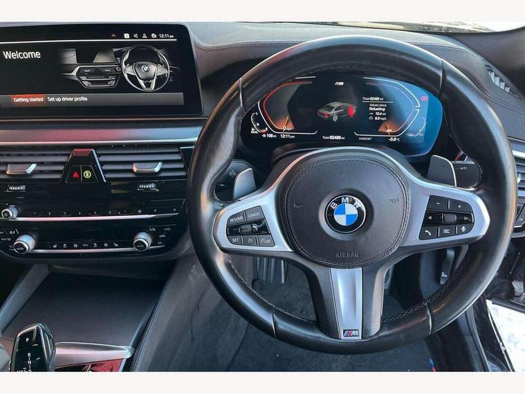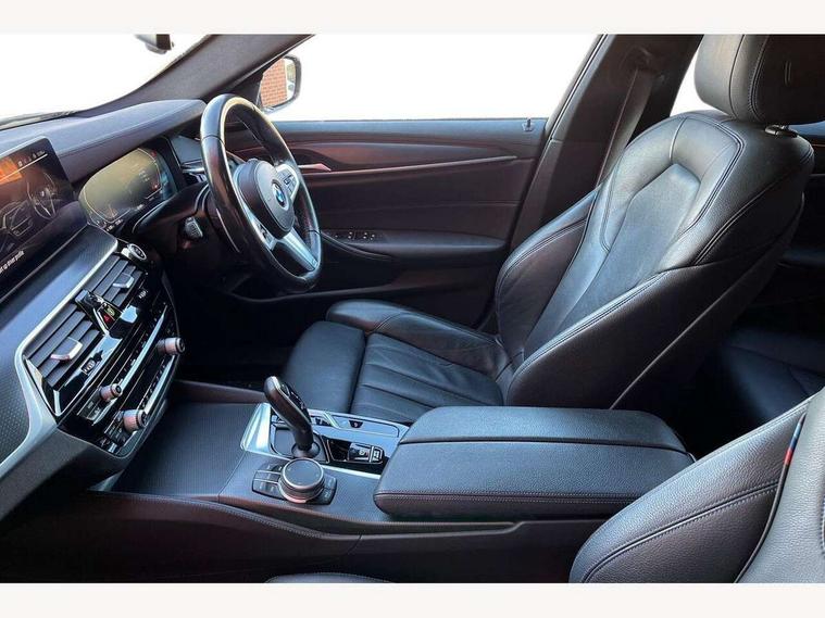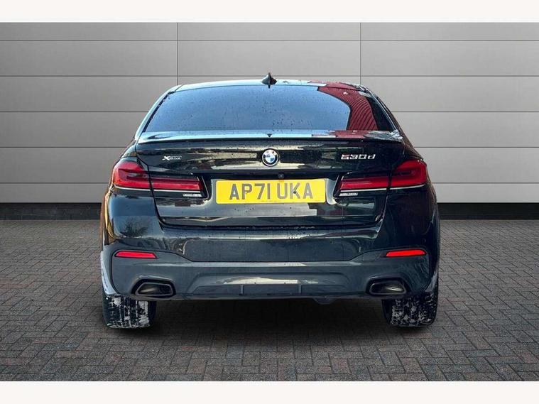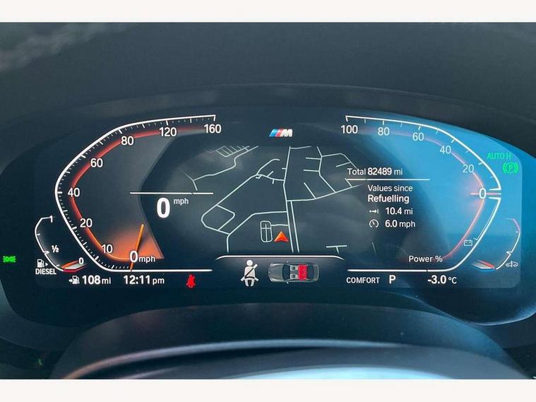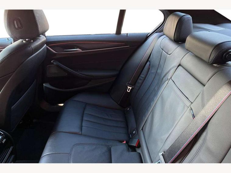 32GB hard disc drive (HDD) memory, Active Guard, BMW Live Cockpit Professional sat nav system with 12.3" instrument display and high resolution control display, BMW Teleservices, Brake pad wear indicator, Cruise control with brake assist, Driving experience switch, Electric Power Steering (EPS) with Servotronic, iDrive touch controller with shortcut buttons, Intelligent emergency call, Multifunctional instrument panel, Oil sensor for level and grade, On board computer inc. average speed, fuel consumption, liquid crystal Info display, journey computer, outside temperature display, personal profile, On-board diagnosis - OBD, Powered by Operating System 7.0, Service interval indicator, Speed limiting function, Stop/start button, 48V Mild hybrid technology, Diesel particulate filter, Drive performance control with ECO PRO comfort + sport mode, Engine cover with twin turbo designation, M sport suspension, Steptronic transmission with gearshift paddles on steering wheel, DAB Digital radio, Favourite buttons, Acoustic glazing, All round anti-corrosion system, Automatic windscreen wipers and automatic headlight, Automatically dimming rear view mirror, BMW Individual high gloss shadow line includes exterior mirror frame, window frame surround, B pillar finish, air breather in high gloss black, Body colour door handles, Body coloured bumpers, Door handle illumination, Dynamic brake lights with LED technology, Electric front and rear windows with fingertip open/close + anti-trap facility and comfort closing function, Electrically adjustable and heated exterior mirrors includes integrated direction indicators and automatic parking function, Folding exterior side mirror with auto- dimming, Follow me home headlight function, Heated windscreen washer jets, High gloss black active air stream kidney grille, LED daytime running lights, LED third brake light, M designation on front side panels, left and right in chrome, Trapezoidal visible exhaust tailpipes, xDrive designation on tailgate, 12V power socket in front and rear, 2 cup holders in front, Armrest - front and rear integrated door trim, centre console includes storage compartment, rear centre includes 2 cupholders, Child seat ISOFIX attachment with rear outer seats includes top tether, Front and rear footwell lights, Front reading lights, Height and length adjustable steering column and activation via lateral lever on the steering column, Lockable glove compartment with light, M door sill finishers, M specific pedals, M specific velour floor mats, Multifunction controls for leather steering wheel, Rear headrests, Three spoke sport M leather steering wheel, Ambient lighting pack - 5 Series, Connected package professional - 5 Series, M Aerodynamic pack - 5 Series, Parking assistant pack - 5 Series, Airbags - driver/front passenger, rear and side, first and second row seats head airbags, front passenger seat airbag deactivation, Anti-lock braking system (ABS), Automatic Stability Control (ASC), Brake assist function, Brake energy regeneration, Cornering brake control (CBC), Crash sensor activating central locking release, hazard warning lights, fuel cut off and interior lighting, Deformation zones - front and rear with door reinforcements and bumpers up to 2.5 mph, DSC - Dynamic Stability Control, Dynamic brake control, Dynamic Traction Control - DTC, Electromechanical parking brake with automatic drive away release and auto hold function, Electronic brake force distribution, Engine drag torque control, Front and rear brake discs with interior ventilation, Front head restraints with anti-whiplash, Hill start assist, M Sport brakes in high gloss blue painted brake callipers with M designation, Mechanical child proof lock on rear doors, Passive protection for pedestrians, Side impact protection, Three point seat belts for all four seats, Two tone horn, Tyre pressure indicator, Warning triangle and first aid kit, Alarm system (Thatcham 1) with remote control and electronic engine immobiliser, Locking wheel bolts,