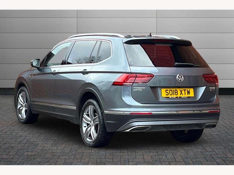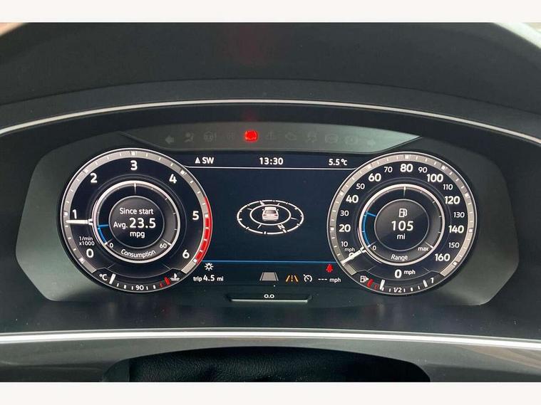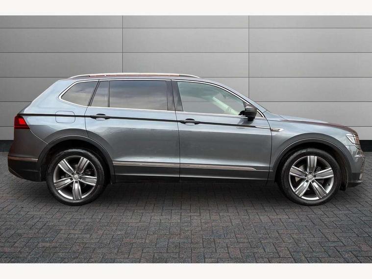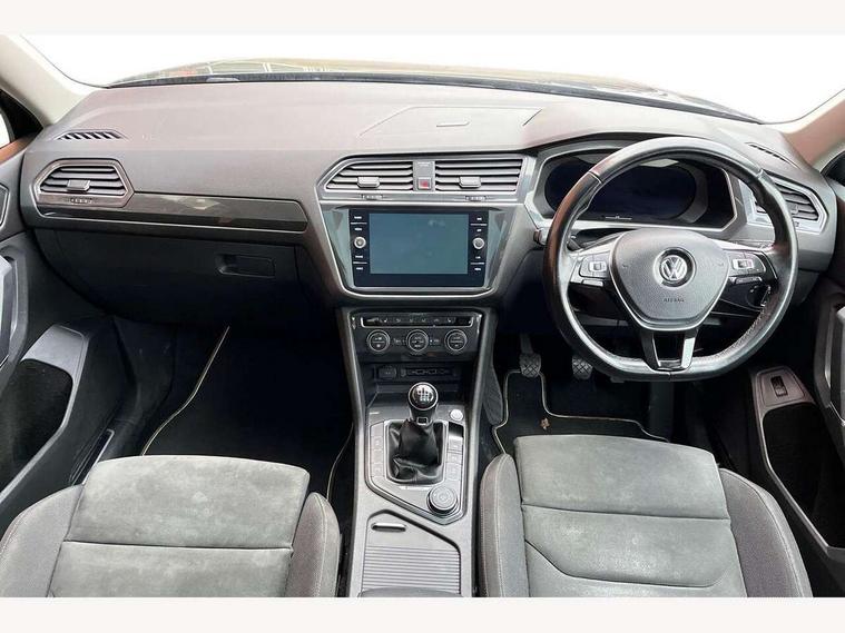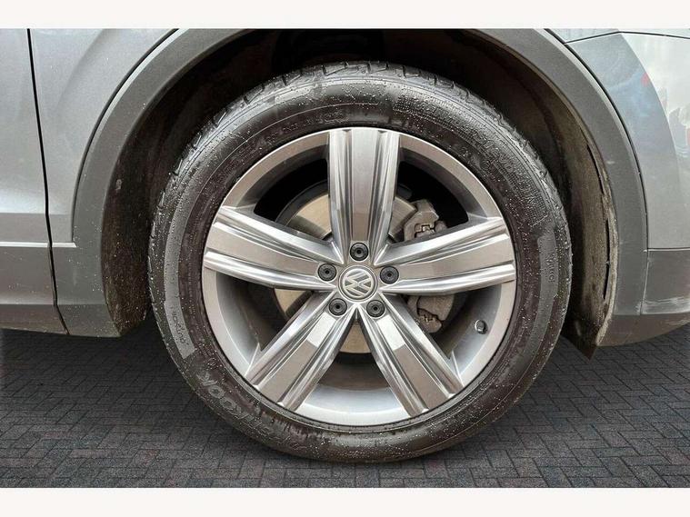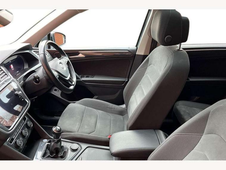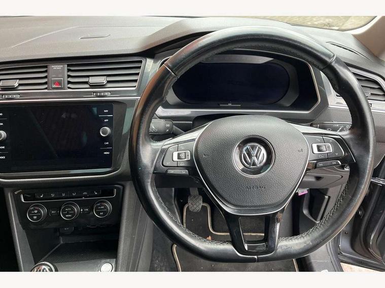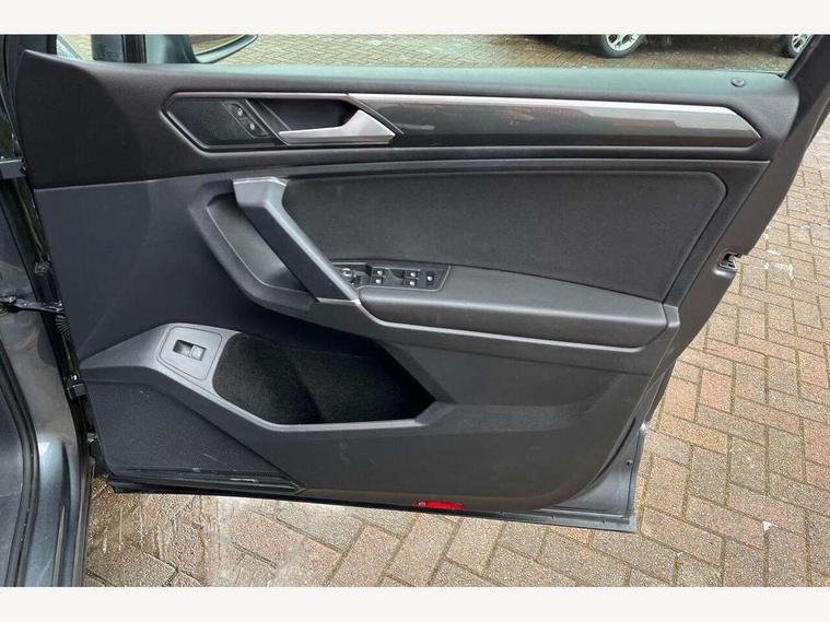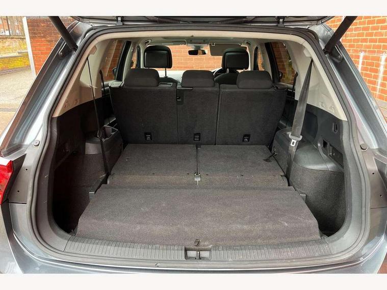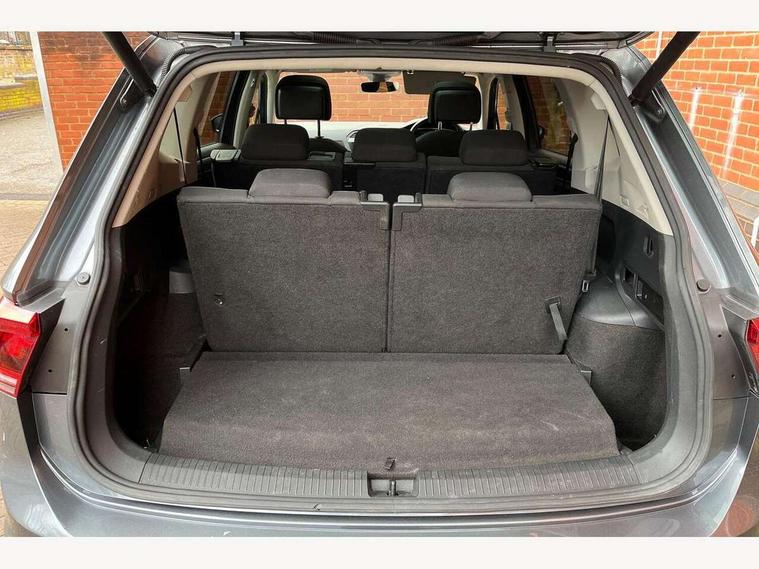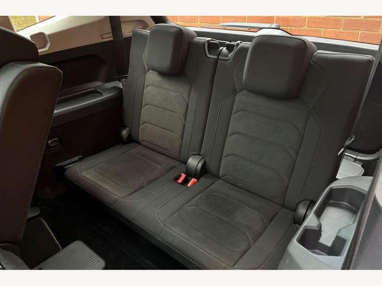 Active information display, Adaptive cruise control, App-Connect, Bluetooth phone integration system, Drive mode selector, Driver profile selection, Fatigue detection system, Front and rear parking sensors, Fully electric tailgate + keyless entry and start, Instrument cluster, Lane assist, Low washer fluid warning light, Outside temperature display, Service interval indicator, Speed limiter, Warning lights, Diesel particulate filter, XDS electronic differential lock, 2x USB sockets in front, Aux-in socket, DAB Digital radio, SD card slot, 3D effect LED rear lights, Auto dimming interior mirror, Automatic activation of hazard warning lights, Black door protector with chrome inserts, Body colour door handles, Body colour door mirrors, Body coloured bumpers, Chrome side body trim, Chrome side window surrounds, Chrome trimmed radiator grille, Coming/leaving home lighting function, Dusk sensor + auto driving lights, Electric folding door mirrors, Electric heated + adjustable door mirrors, Electric panoramic sunroof with sunblind, Front and rear electric windows, Heated rear window, LED headlights with dynamic light assist daytime running lights and cornering front fog lights, Rain sensor windscreen wipers, Rear tinted windows from B pillar back, Rear windscreen washer and wiper with interval delay, Silver rear diffuser trim, Silver roof rails, Silver under body guard, Trailer Stability Programme, Windscreen wipers/ intermittent wipe + 4 position delay, 12V Accessory socket in centre console, 12V socket in luggage compartment, 2 head restraints in 3rd row, 2 individual 3rd row seats, 3 head restraints in 2nd row, 3 zone climate control, 4 load lashing points, 40:20:40 split folding rear seats, Bag hook in luggage compartment, Driver + front passenger lumbar support, Foldable passenger seatback, Front + rear carpet mats, Front centre armrest with 12v socket, Front centre armrest with storage + rear 2 air vents + cupholders, Front seatback folding tables, Front sports seats, Height/reach adjust steering wheel, Illuminated driver/passenger vanity mirrors, Illuminated scuff plates, Interior light with delay, Isofix Preparation 2 Rear child seats, Leather gear knob, Load through provision with 2 cupholders when folded, Lockable cooled glovebox, Luggage compartment lighting, Luggage compartment side storage, Map pockets on front seats, Passenger seat height adjuster, Passenger underseat drawer, Rear cupholders, Removable luggage cover, Sliding/reclining rear seats, Storage compartment in driver's door, Storage compartment in passenger's door, Storage tray on dashboard, Sunglasses storage, Variable boot floor, Ambient lighting pack - Tiguan, 3 point seatbelts on all seats, ABS+EBD+Brake assist, Active bonnet, Active pedestrian safety system, Curtain airbags, Driver/Front Passenger airbags, Driver/Passenger whiplash optimised head restraints, Drivers knee airbag, DTC - Drag torque control, Electronic parking brake with auto hold, ESP with EDL + ASR, First aid kit, Front assist including city emergency braking, Front side airbags, Head airbag system, Height adjustable front 3 point seatbelts + pretensioners, Hill hold control, Passenger airbag deactivate switch, Passenger knee airbag, Pre crash system, Rear side airbags, Seatbelt warning lamp and buzzer, Two tone horn, Warning triangle, Alarm with interior protection, Electronic engine immobiliser, Remote central locking with 2 remote folding keys, Chrome door trim inserts, Piano black interior trim, Steel space saver spare wheel,