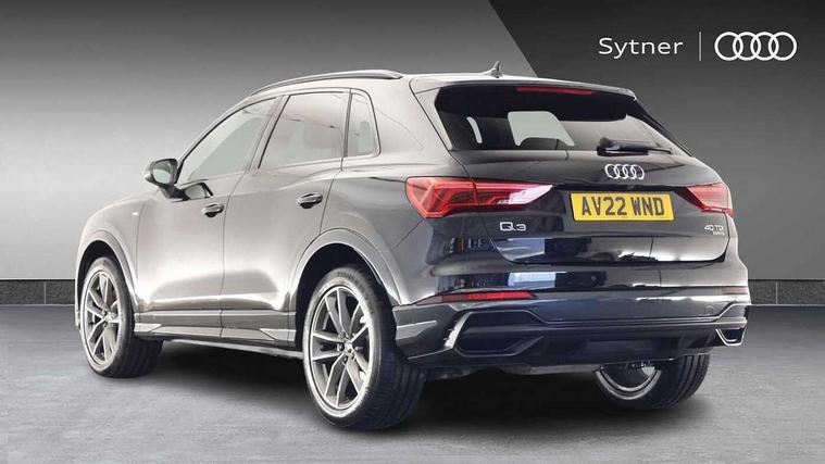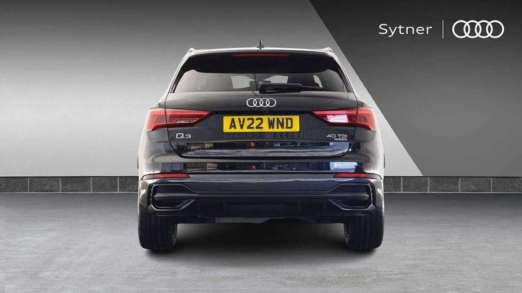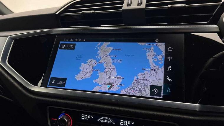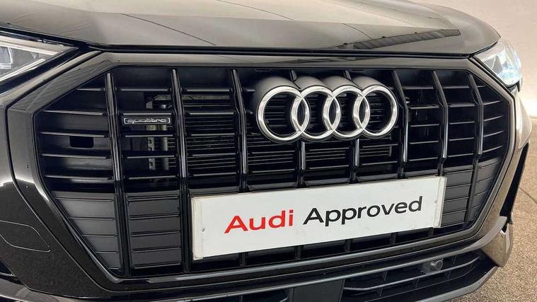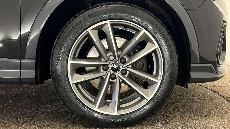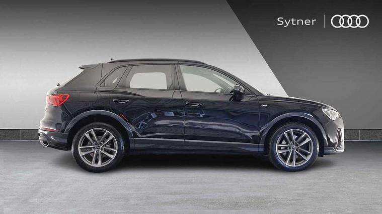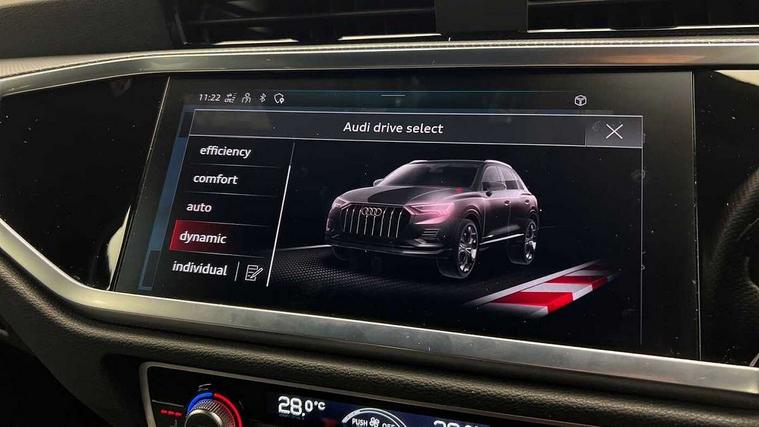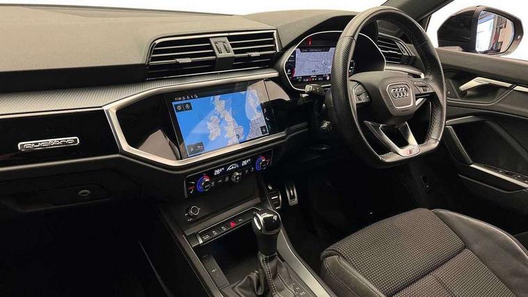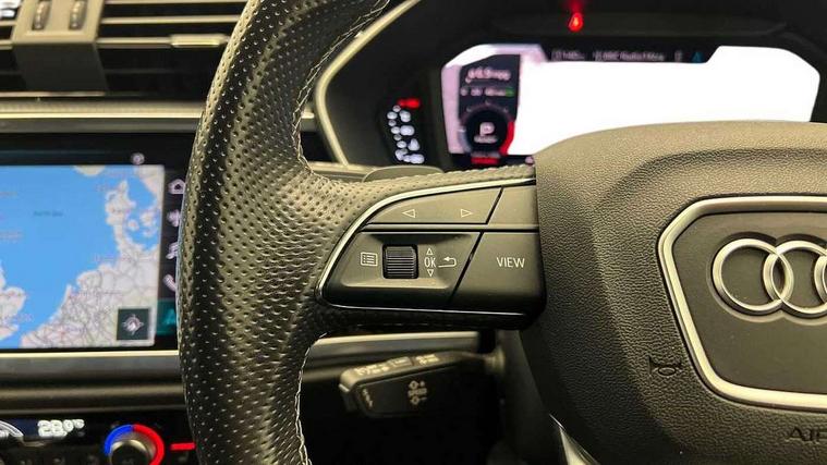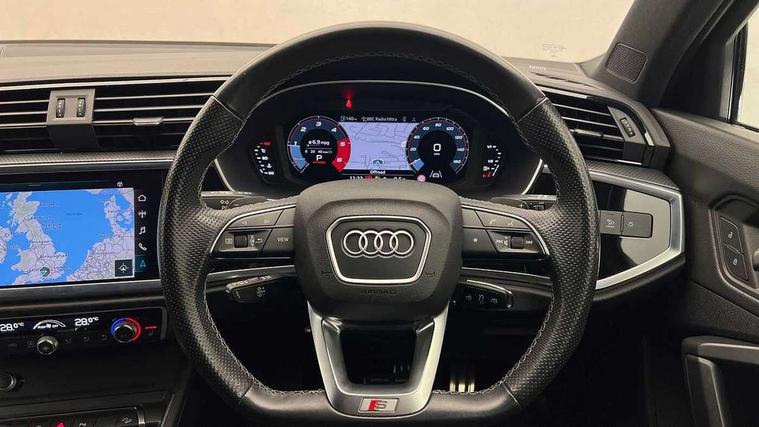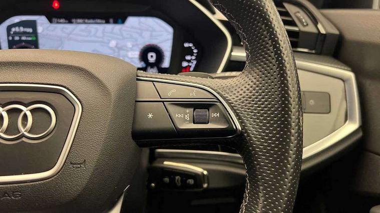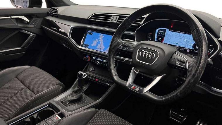 Amazon alexa Integration, Audi drive select, Audi lane departure warning, Audi smartphone interface includes wireless Apple carplay/Android Auto, Audi Virtual Cockpit - 10.25" display, Bluetooth interface, Camera based traffic sign recognition, Legal emergency call, MMI Navigation Plus with high resolution 10.1 inch touchscreen colour display, Power operated tailgate, Progressive steering, Service interval indicator, Start stop system with recuperation, Voice control system with natural language interaction, Diesel particulate filter, Sports suspension, 2 USB-C ports with charge and data functions, 6 passive loudspeakers, DAB digital radio module, Acoustic windscreen, Auto dimming frameless rear view mirror, Black roof rails, Electrically folding, adjustable and heated door mirrors with integrated LED side indicators and kerb view function for passenger side, Front and rear electric windows, Front fog lights, Grille vertical bars in aluminium silver/Matt, High gloss black finish B and C pillars, LED headlights with LED daytime running lights, LED rear lights, LED third brake light, Privacy glass dark tinted rear and rear-side windows (from B-pillar backwards), Rain and light sensors, Rear diffuser grille in grained matt black, Rear diffuser strip in matt titanium black, Rear side wing doors, Rear wiper, S line bumpers in contrasting Manhattan grey, Variable front intermittent wipers, 12V socket in rear centre console, 3 seat bench in 2nd row, 40:20:40 folding with manual adjustment for 60:40 forwards/backwards position and backrest angle, Adjustable rear seat bench/backrest with centre armrest and cupholder, Black cloth headlining, Dual zone electronic climate control, Front and rear black floor mats with contrast stitching in rock grey, Front and rear headrests, Front and rear roof module including reading lights, Front centre armrest, Glove compartment lighting, Height and reach adjustable steering wheel, Illuminated door sill trims with S logo, ISOFIX child seat mounting for front passenger with airbag deactivation and outer rear seat including top tether attachment point for outer rear seats, Luggage compartment light, Manual front seats with height adjustment, Perforated leather gearknob, Single front passenger seat, Stainless steel luggage compartment sill finisher, Stainless steel pedals, Black styling pack - Q3, Non smoking pack - Q3, 3x3 point rear seatbelts, 6 airbags - Driver, front passenger, curtain and side windows, Audi pre-sense front with pedestrain and cyclist recognition, Electromechanical parking brake, Electronic stabilisation control including ABS, ASR and EDL, Front seatbelt reminder, Hill descent control, Hill hold assist, Manual child lock in rear doors, Pre sense basic, Seatbelt monitoring, Tyre pressure warning, Warning triangle and first aid kit, Anti theft alarm, Anti theft wheel bolts, Immobiliser, Remote central locking, Detail dashboard around MMI touch colour display in glass look, black with surround in aluminium look, Leatherette door armrest, Piano black inlay,
