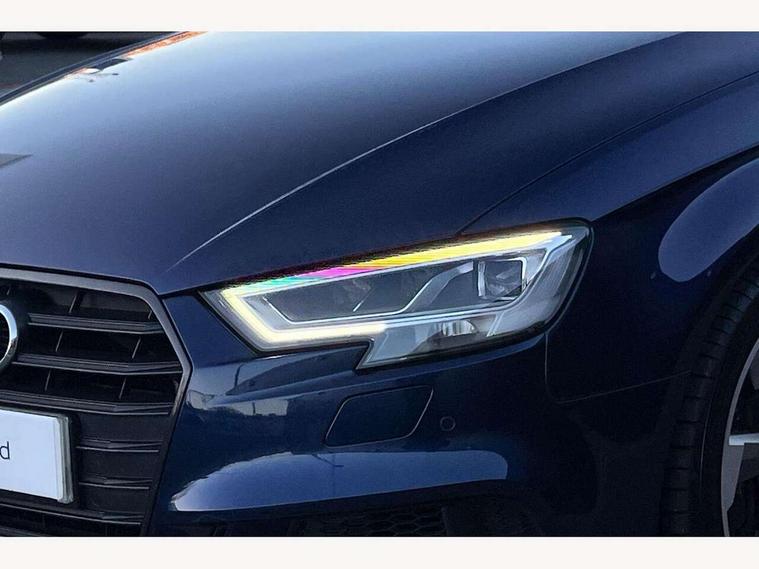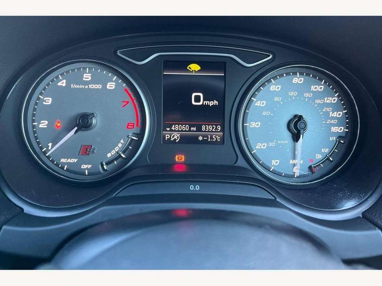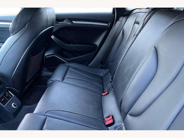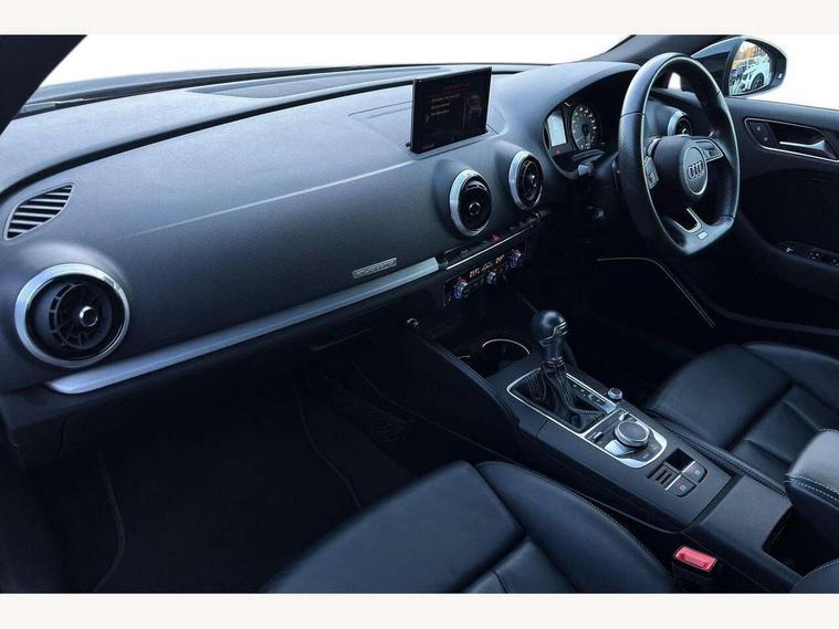 Audi connect, Audi drive select, Audi smartphone interface, Colour driver's information system display, HDD satellite navigation system radio single CD/DVD player MMI control system, Mobile telephone preparation - bluetooth interface, Progressive power assisted steering, Service interval indicator, Speed limit display, Voice control system, S sports suspension, 2 USB ports, Audi music interface, Auxiliary input socket, Bang + Olufsen advanced sound system, CD player, DAB Digital radio, MMI radio plus with 7" colour MMI screen and MMI controller, Auto dimming rear view mirror with light and rain sensors, Black door mirrors, Black window surrounds, Body colour bumpers with black insert, Body colour roof spoiler, Electric front windows, Electric operated/heated door mirrors, Electric rear windows, Headlight washers, Heated windscreen washer jets, LED daytime running lights, Matt black radiator grille, Platinum grey radiator grille with double chrome bars, Privacy glass, Rear wiper, S body styling, Twin oval chrome trimmed exhaust tailpipes, 3 adjustable rear headrests, 3 spoke flat bottomed multi-function leather steering wheel, 4 lashing points to secure luggage, Adjustable front armrest, Dual zone electronic climate control, Front and rear interior lights with delay, Front passenger seat isofix location point, Front/rear floor mats, Heated front seats, Height/depth adjustable steering column, Illuminated glovebox, ISOFIX child seat preparation+airbag deactivation, Jack and tool kit, Rock grey headlining, Stainless steel pedals, Steering wheel gearshift paddles, Storage compartment in centre console, Storage compartment under front seats, Storage compartments in doors, Black styling pack - A3/S3, LED interior light pack - A3/RS3, Non smoking pack - A3, Storage and luggage pack - A3/RS3, 3 point seatbelts on all seats, ABS/EBD, Active bonnet, Active front headrests, ASR, Curtain airbags, Driver and passenger side airbags, Driver/Front Passenger airbags, Drivers knee airbag, EDL, Electromechanical parking brake, ESC - Electronic Stability Control + traction control, Front passenger airbag deactivation, Hill hold assist, Manual rear child locks, Multi-Collision braking, Seatbelt warning, Tyre pressure warning, Warning triangle and first aid kit, Anti theft alarm, Anti-theft wheel bolts, Remote control central locking, Thatcham category 1 alarm + immobiliser, Aluminium air vent surrounds, Aluminium trim elements, Matt brushed aluminium inlays, Space saver spare wheel,
