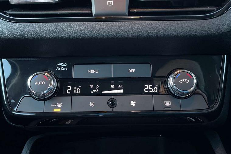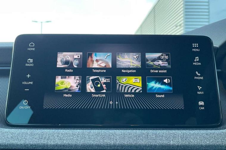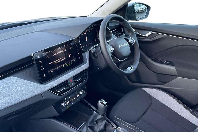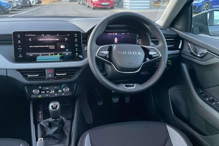 Advanced driver attention and drowsiness monitor, Bluetooth system, E-call, Front assist system, PAS, Rear parking sensors, Rear view camera, Service indicator, Speed limiter, Traffic sign recognition, Virtual cockpit with 10.25" display, Wireless smartlink, 4 USB C ports, 8 Speakers, 9.2" Skoda navigation display, DAB Digital radio, Auto dimming rear view mirror, Automatic headlight control with coming home and leaving home feature, Black roof rails, Body colour bumpers, Body colour door mirrors and handles, Chrome grille surround, Front and rear electric windows, Full LED headlights, Heated rear window, LED brake lights, LED daytime running lights, LED front turning lights, LED high beam, LED low beam, LED third brake light, Rear LED fog light, Rear side wing doors, Rear wiper, Ticket holder inside windscreen, 12V socket in luggage compartment, 3 seat bench in 2nd row, Black hotstamping, Cargo elements, Chrome inner door handles, Driver and passenger sun visors with vanity mirror, Dual zone climate control, Front and rear roof lights, Front centre armrest, Front head restraints, Glove compartment with illumination, Height adjustable driver seat, Height adjustable front passenger seat, Ice scraper, Inner circulation control with pollen filter, ISOFIX on front passenger seat, Isofix preparation for back seats, Krepp recycled decor inserts, Leather gearknob and handbrake lever, Loft cloth upholstery, Manual lumbar support for front seats, Net package and top tether hooks in boot space, Net under rear shelf, Overhead glasses storage compartment, Pocket on the back of both front seats include mobile phone pockets, Rake/reach adjustable steering wheel, Reading lights, Satin black door inserts, Single front passenger seat, Textile floor mats, Third rear headrest, Top tether for front passenger seat, Umbrella in driver's door, 3x3 point rear seatbelts, Airbags - driver and front passenger, Disc brakes, ESP, Extended and predictive pedestrian/cyclist protection, Front passenger airbag deactivation switch, Front side airbags with curtain airbags, Hill hold control, Manual leather parking brake, Manual rear child locks, One tone horn, Seatbelt reminder for driver an co-driver, Traction control, Tyre pressure monitor, Anti-theft alarm system with interior monitoring, backup horn, towing protection and remote central locking with SAFE system, Anti-theft wheel bolts, Electronic engine immobilizer,