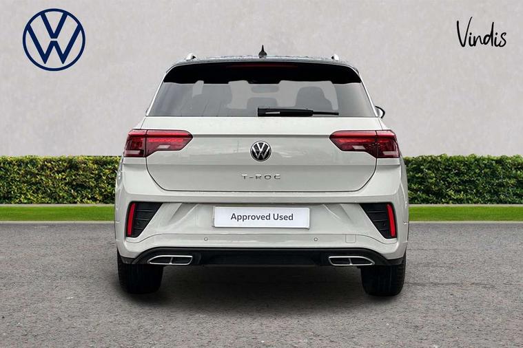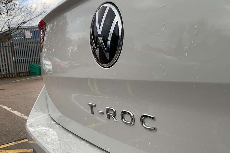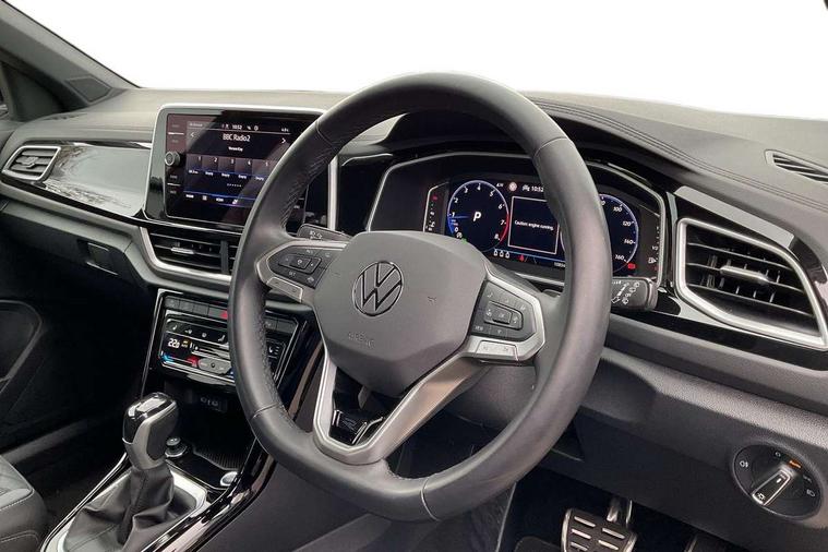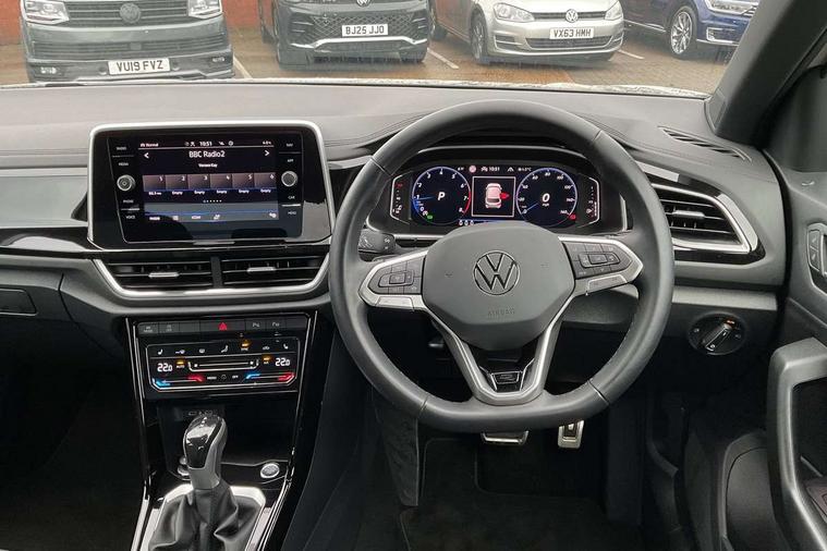 10.25" Digital cockpit pro, Advanced driver attention and drowsiness monitor, Bluetooth mobile phone interface, Emergency call service, Lane keeping system Lane Assist, Modified key software - reduce switch off time for key status change to Long no motion, Online services, Park assist including front and rear parking sensors, Service interval indicator, Tailgate/trunk lid release from outside, Think blue trainer driver tips and journey analysis, Warning sound and light for front seatbelts unfastened, Wireless app connect, Battery regeneration during braking, Start/stop function with battery regeneration, Diversity antenna for FM reception, Music playback - MP3, WMA and AAC files, Premium USB cable in choice of either Apple or Android smartphone compatibility, SD card slot, Simultaneous pairing of 2 compatible mobile devices, Title and cover art display, We Connect and We Connect Plus functionality, 3rd brake light, Auto dimming interior rear view mirror, Automatic hazard lights activation under emergency braking, Automatic headlight control with LED separate daytime running lights with coming/leaving home function, Electrically adjustable and heated door mirrors, Extended roof spoiler, Exterior mirrors aspherical on driver side, convex on front passenger side, External USB type C socket and charging sockets, Front windscreen wiper with intermittent wipe and 4 position delay, Heated rear window, LED rear combination lamps, LED rear number plate lights, Power windows with comfort operation and circuit breaker, R-Line design body coloured bumpers, Rain sensor, Rear exhaust tailpipe, Rear fog light on one side and reversing lights on both sides, Rear side wing doors, Rear wash/wipe with intermittent wipe setting, Remote electrically foldable door mirrors, puddle lights and reverse activated passenger's door mirror, 12V power socket in centre console, 3 rear head restraints, 3 seat bench in 2nd row, 4 load lashing points in luggage compartment, Air care climatronic air conditoning system with active combination filter and 2-zone temperature control, Black roof lining, Chrome plated radiator grille inserts, air vent surrounds and light switch surrounds, Door and side trim panel with leatherette insert, Front + rear carpet mats, Front centre armrest, Front cupholders x 2, Front footwell illumination, Front reading light, Front scuff plates with R Line logo, Front seat back storage pockets, Glove compartment door with light, Instrument lighting, white adjustable panel illumination, Interior ambient lighting and surround lighting, Interior light delay, Isofix child seat preparation, Leather gearshift handle, Load-through provision with cup holder when folded down ('Unsplit rear seat bench, split folding backrest, with centre armrest), Luggage compartment lighting, Single front passenger seat, Stainless steel pedals, Storage compartment in left and right luggage area, Storage compartment in rear doors, Storage compartments in driver and front passenger doors, Sunvisors with illuminated vanity mirrors, Variable boot floor, height adjustable and removable, Driver assistance pack without proactive passenger protection - T-Roc, 3 point height adj front seatbelts + pretensioners, 3 point seatbelts in outer rear with ECE label, ABS, Child locks on rear doors, City emergency braking and pedestrian monitoring, Driver and front passenger airbag with front passenger airbag deactivation, Driver and front passenger safety-optimised head restraints, Drivers seatbelt reminder, Electronic parking brake, Electronic Stability Control (ESC) inc EDL (Electronic Differential Lock) and ASR (Traction Control), Front and rear passengers curtain airbag system including front side airbags, Hill start assist, Predictive pedestrian protection, Rear disc brakes, Two tone horn, Tyre pressure loss indicator, Volkswagen roadside assistance, Anti-theft alarm system with interior monitoring, backup horn, and towing protection, Remote central locking with SAFELOCK, radio remote control with 2 remote control folding keys, Trims for alloy wheels,